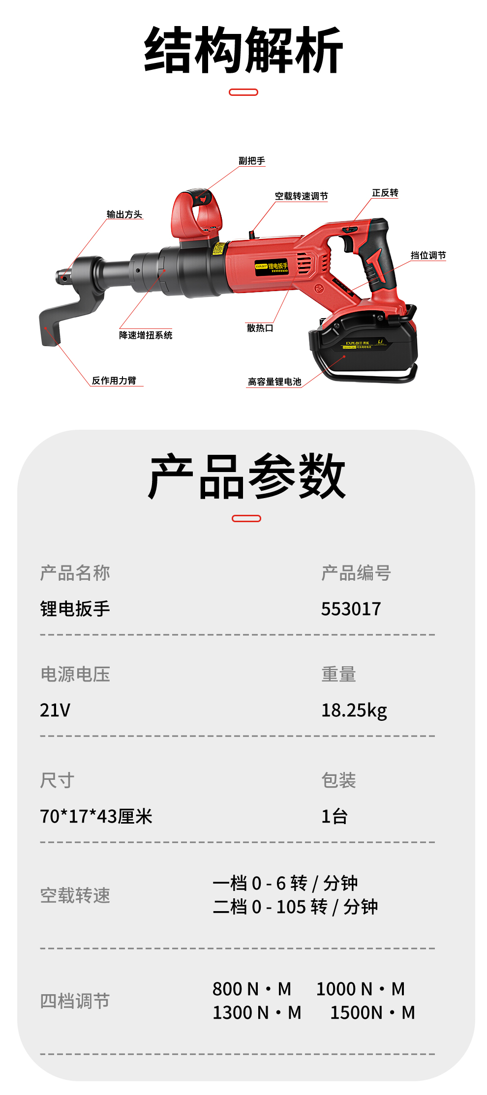 开拓锂电大扭力冲击扳手21V大功率锂电池可调式重型扳手电动工具