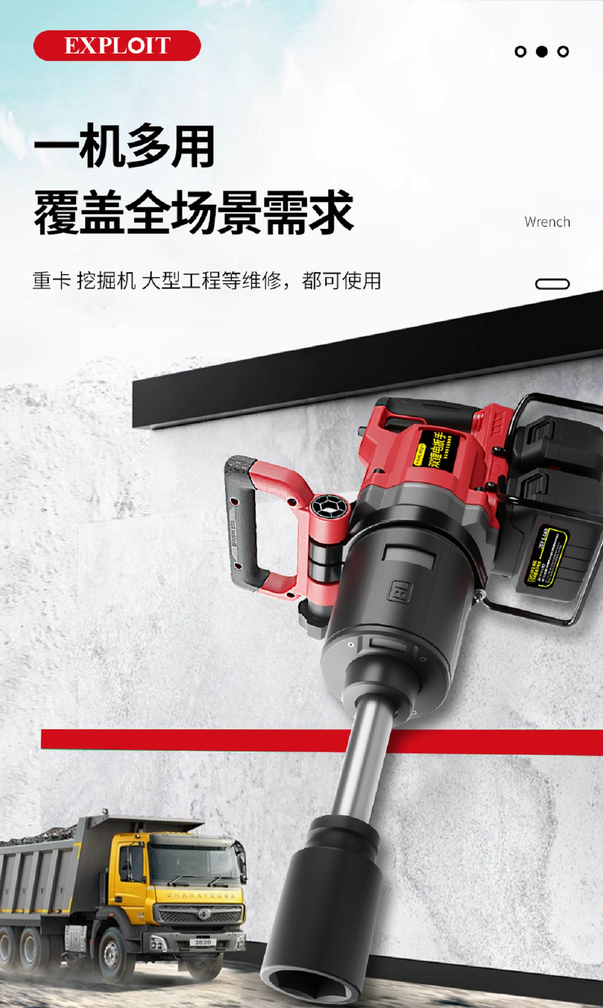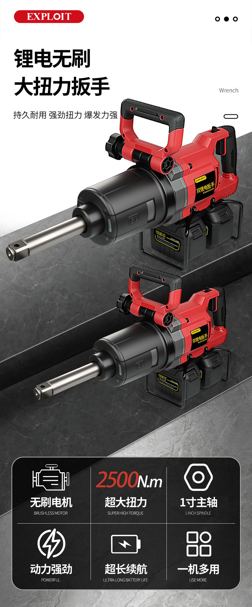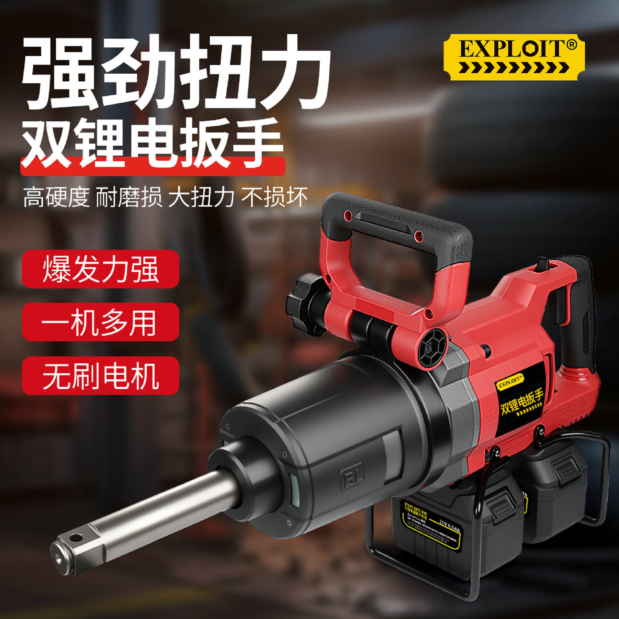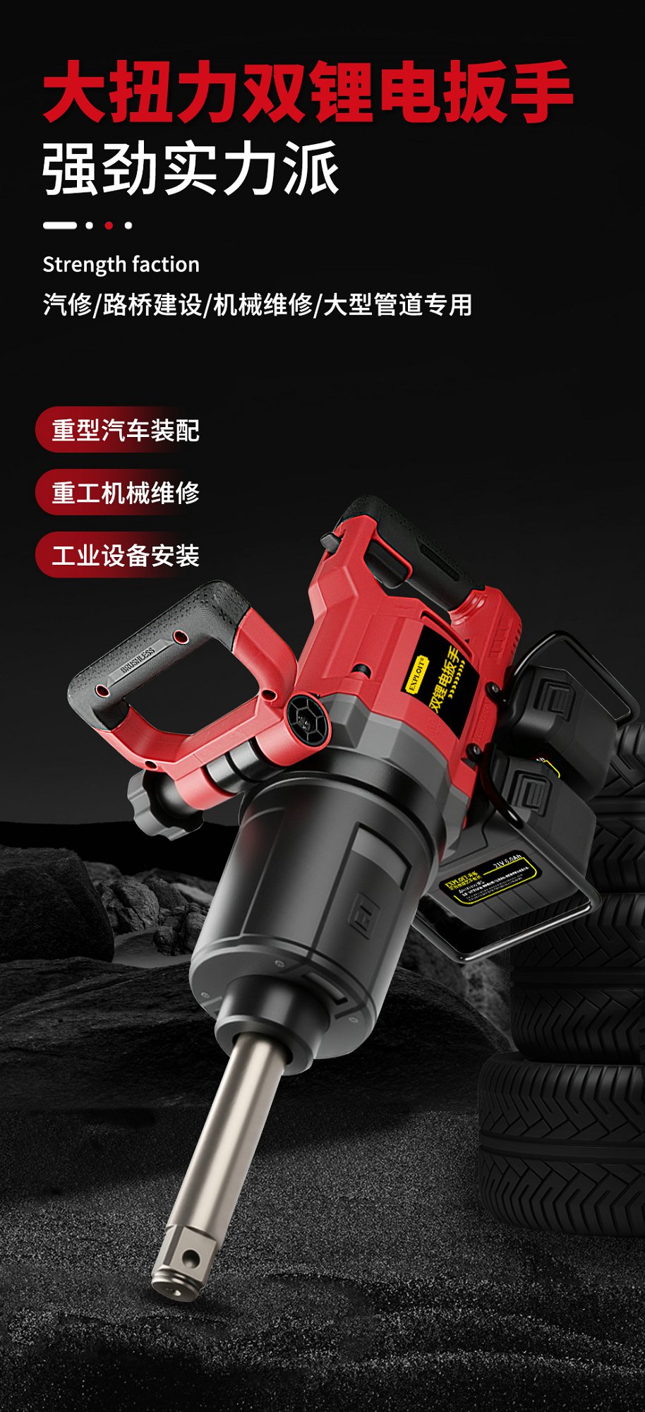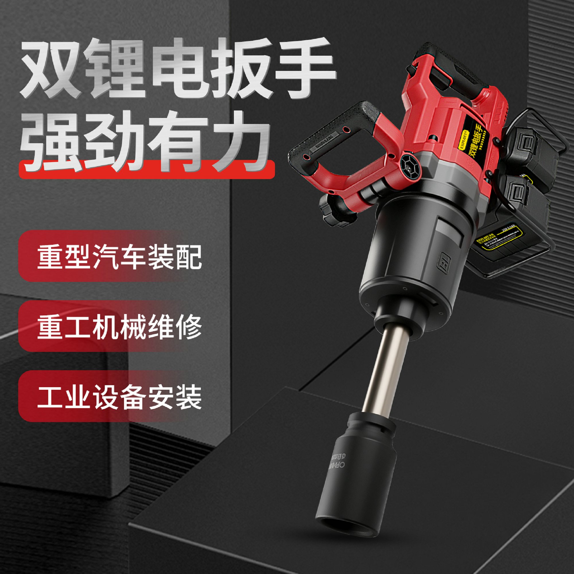 开拓双锂电大扭力冲击重型扳手21V大功率大容量锂电池维修工具