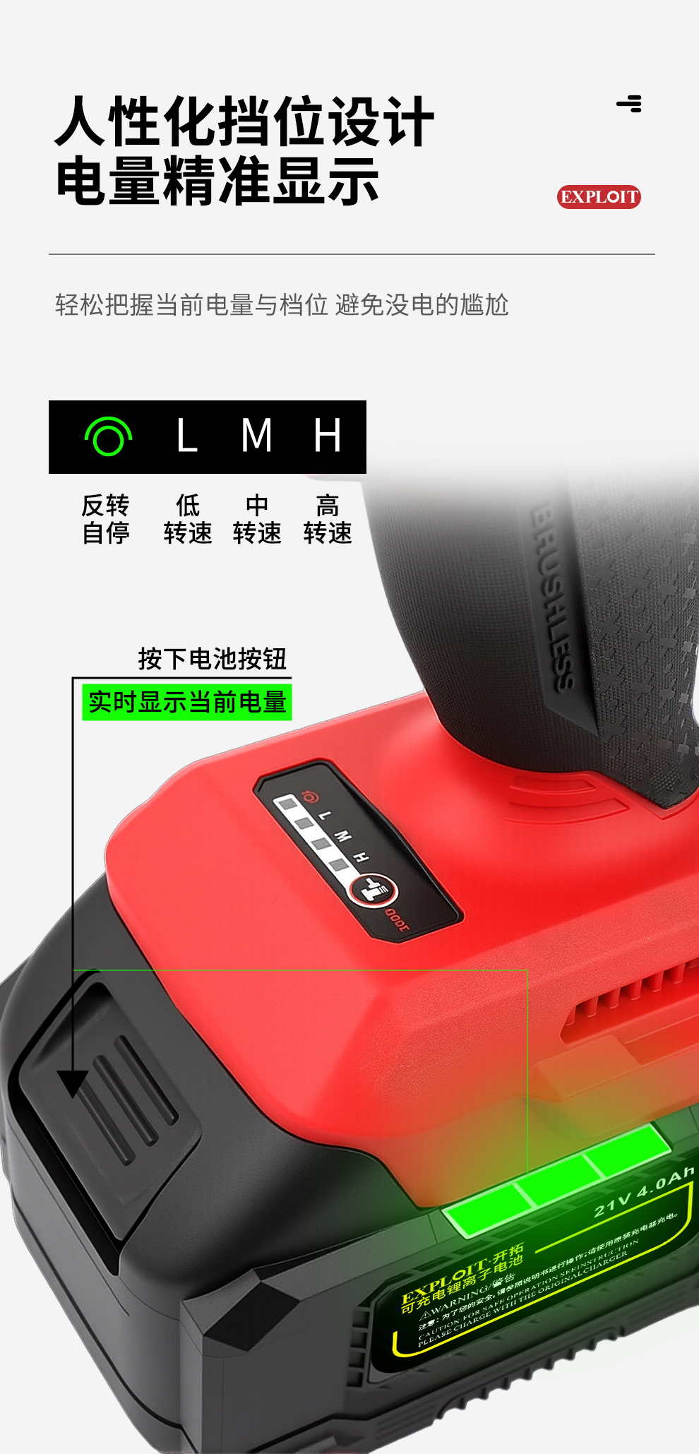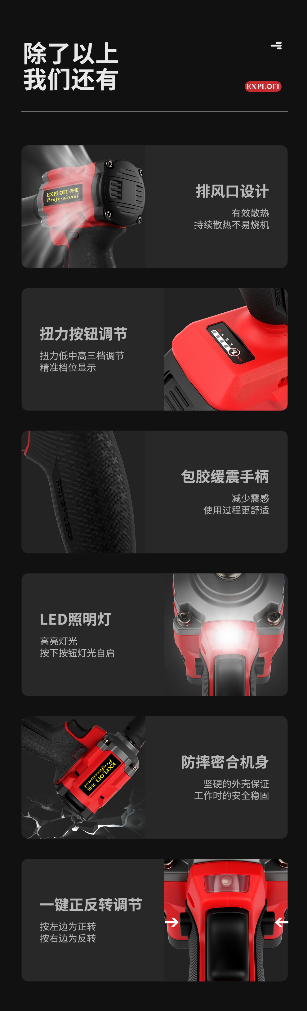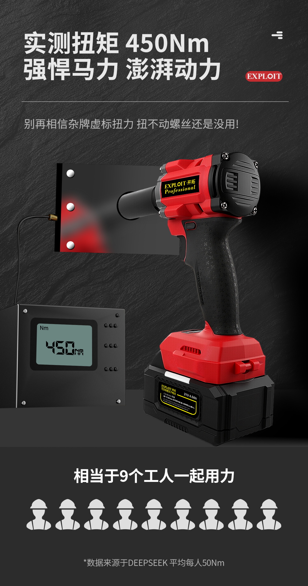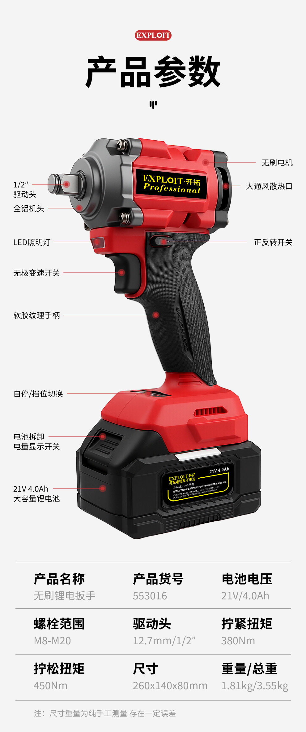 开拓锂电大扭矩扭力冲击扳手21V大功率锂电池可调式电动维修工具