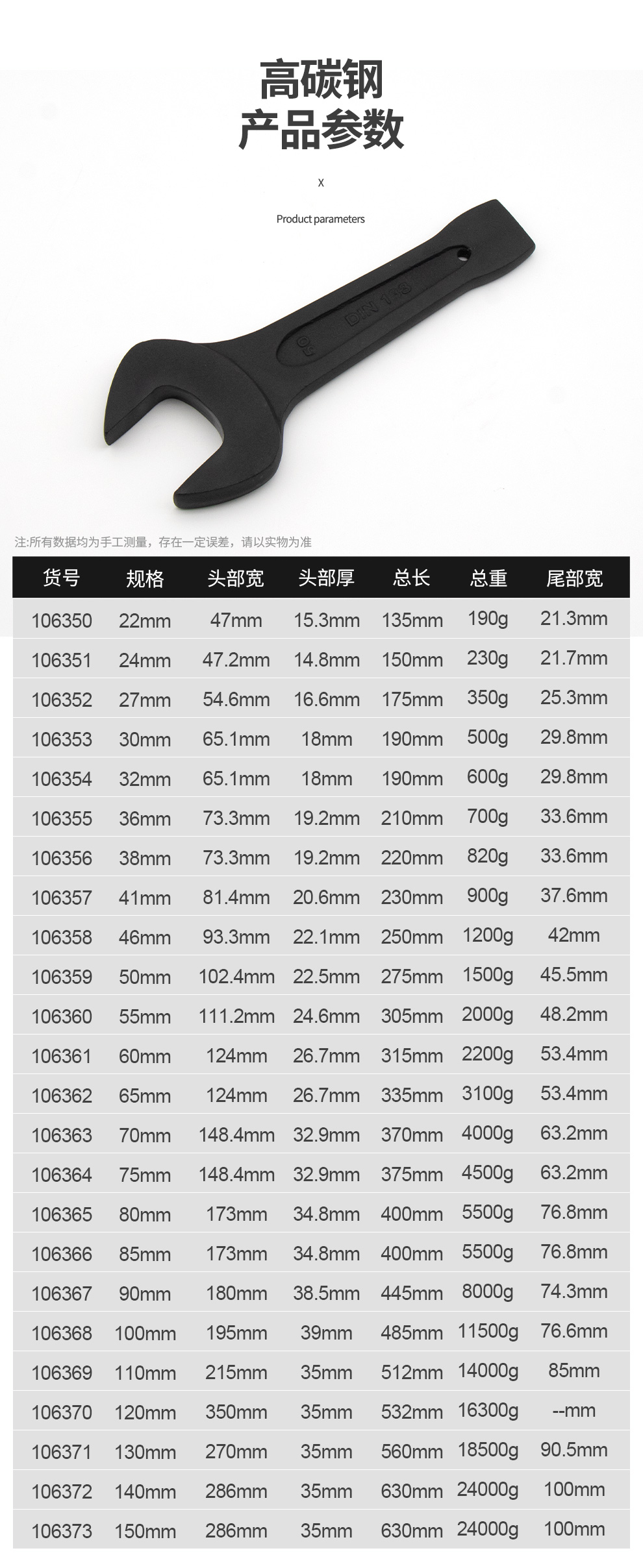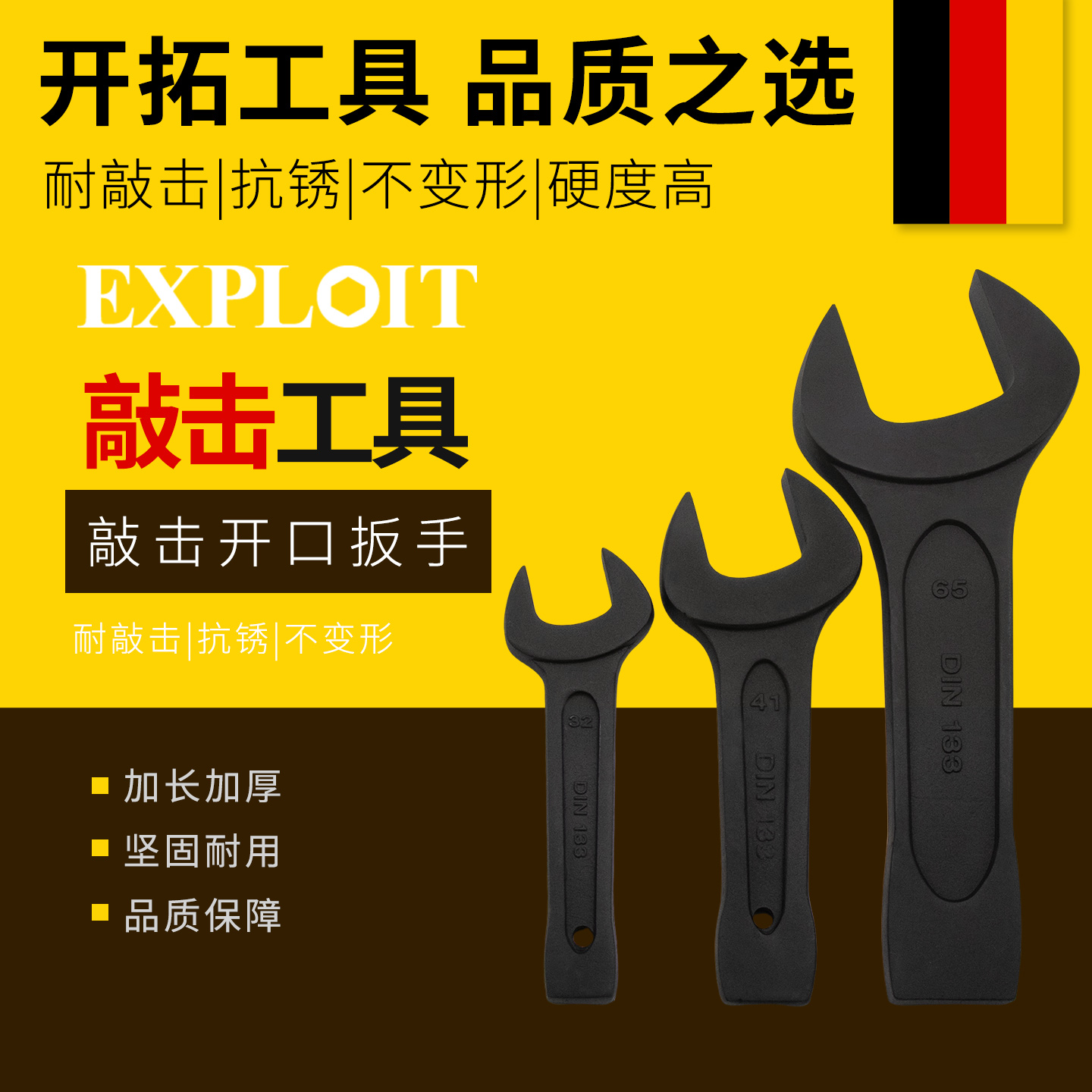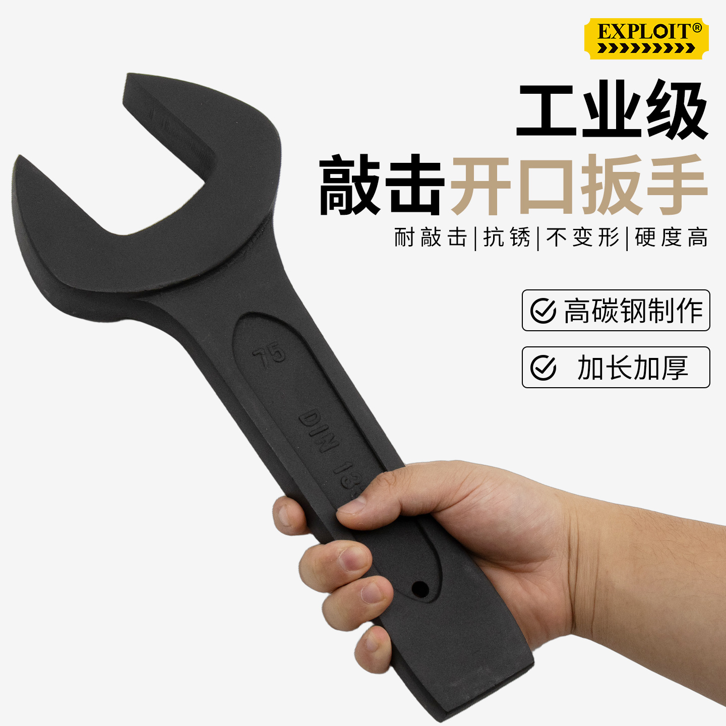 开拓重型单头敲击开口扳手高碳钢36mm加厚直柄敲击工业级维修工具