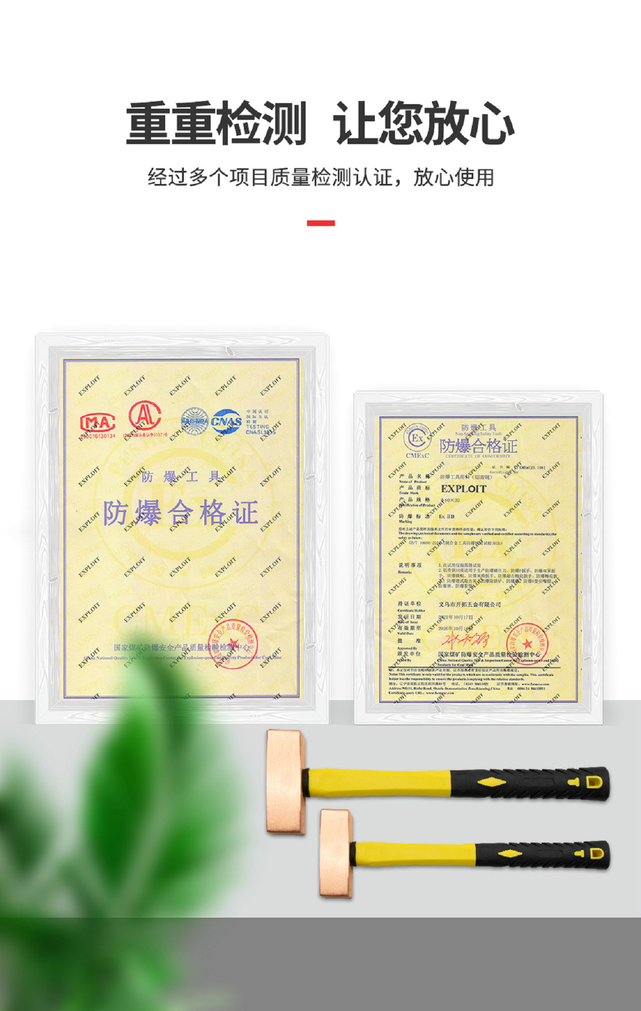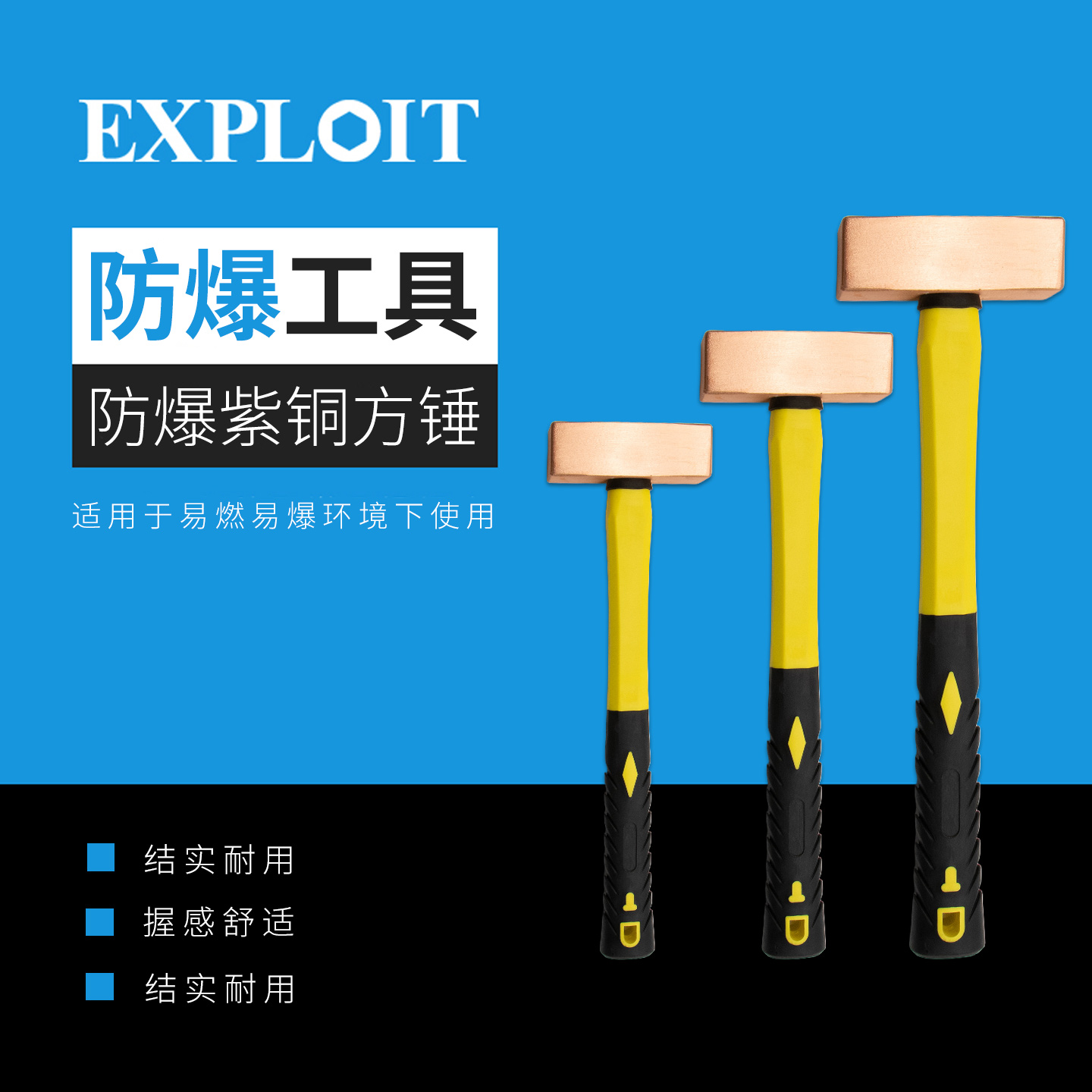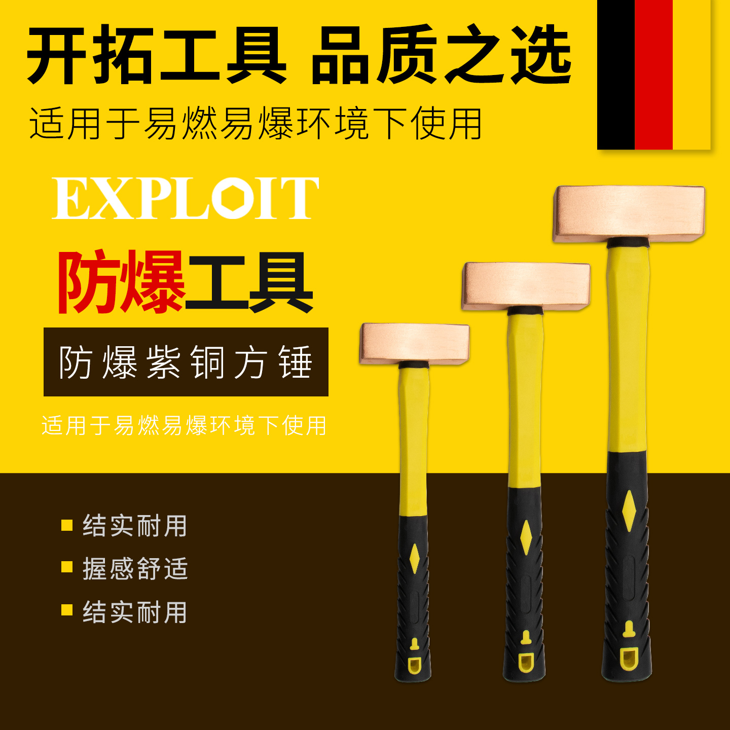 开拓防爆紫铜方锤0.5-5kg纯铜四方锤防爆榔头手锤无火花安全设计