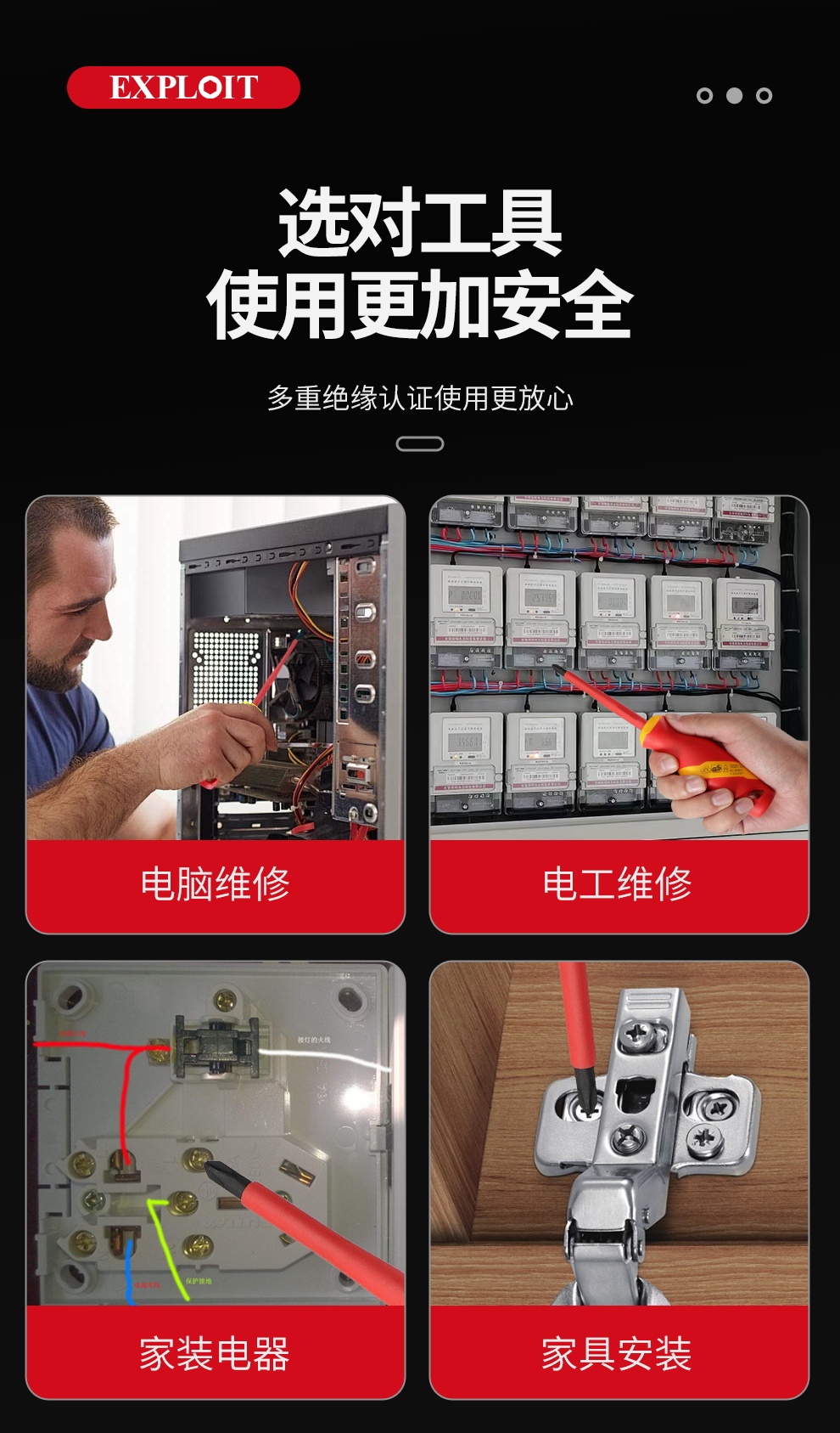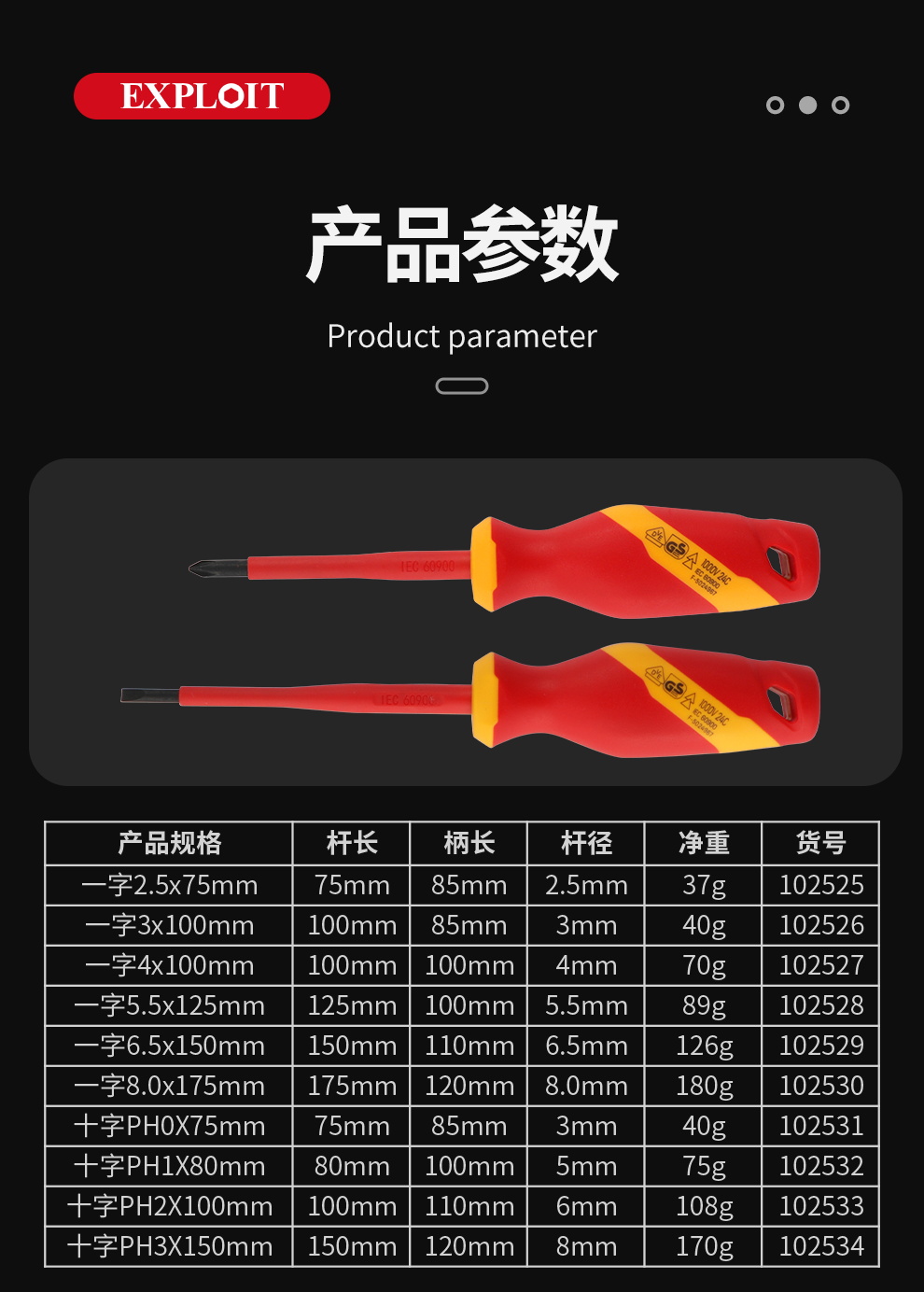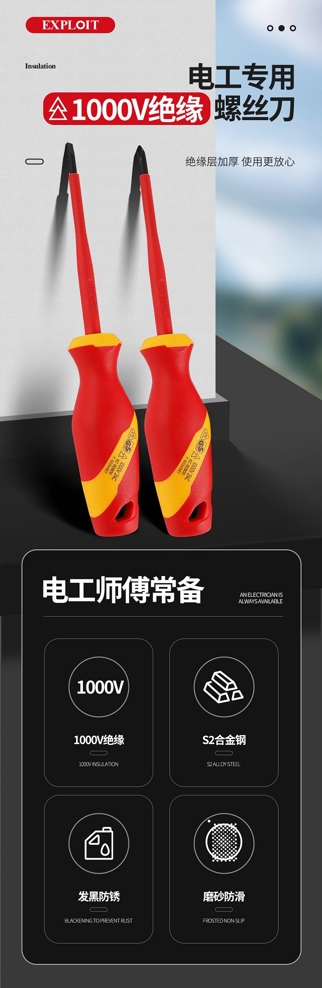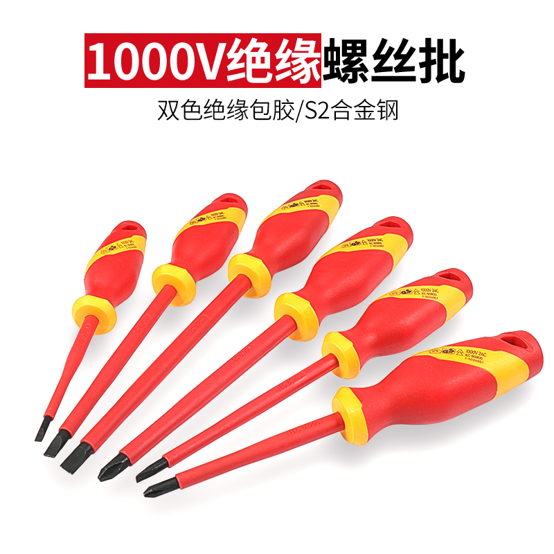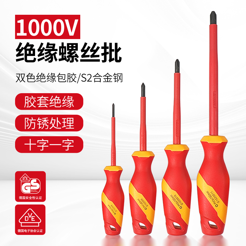 开拓绝缘螺丝刀1000V耐高压VDE认证十字一字起子电工专用维修工具