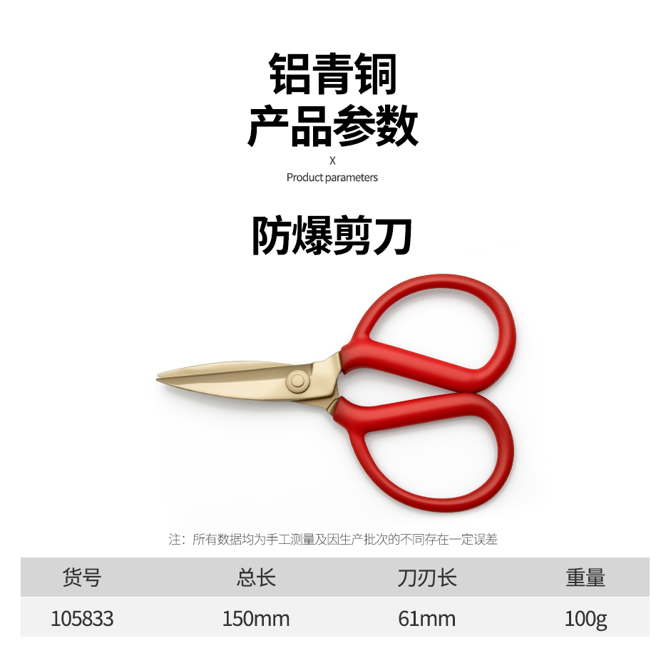 开拓剪刀防爆无火花铝青铜工业用防静电剪化工防爆专用安全工具