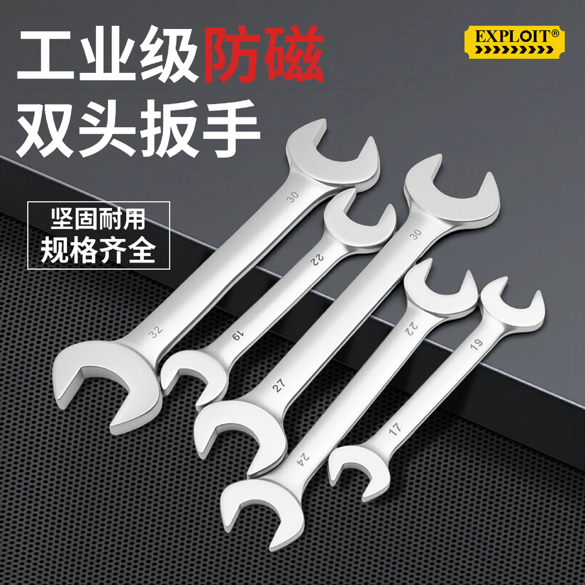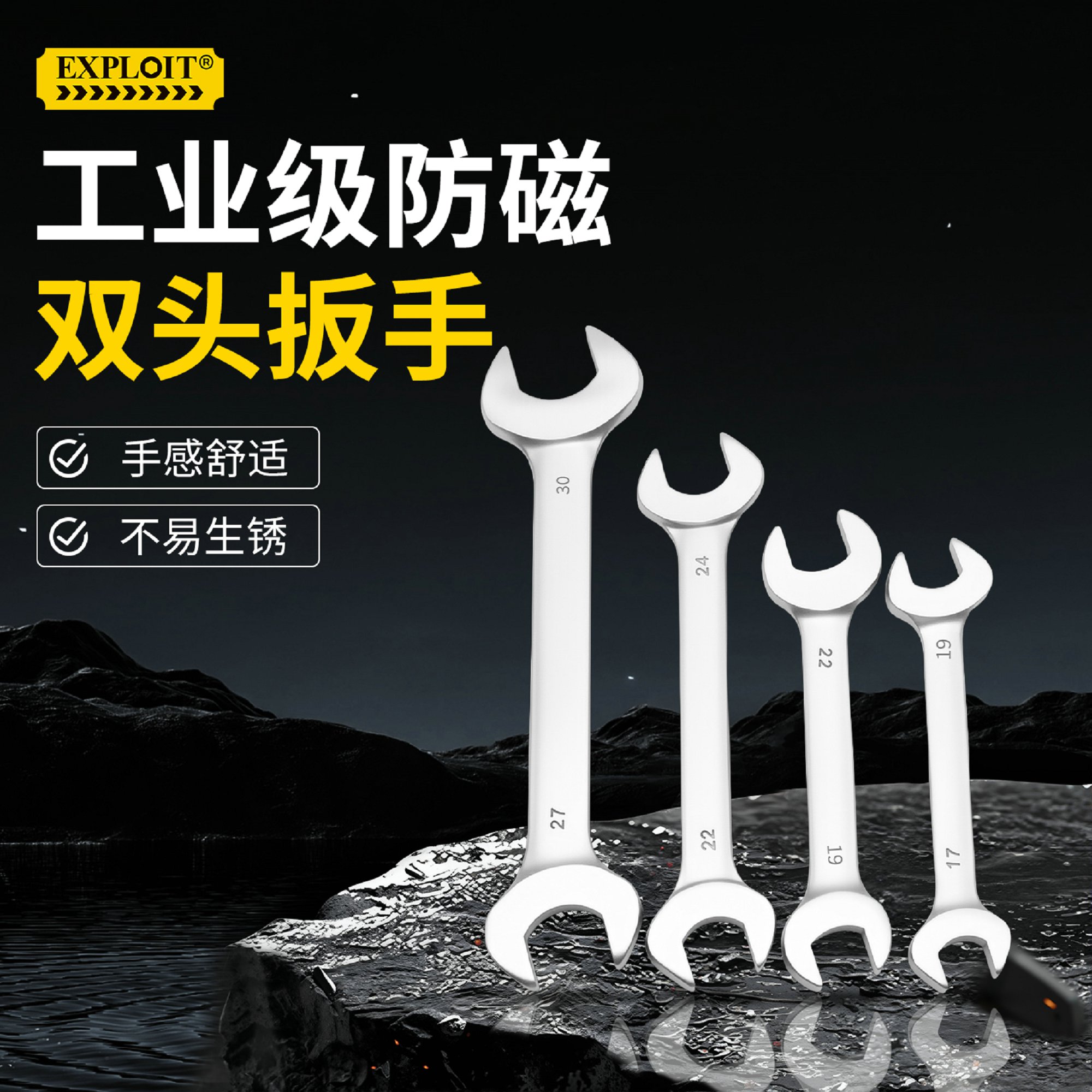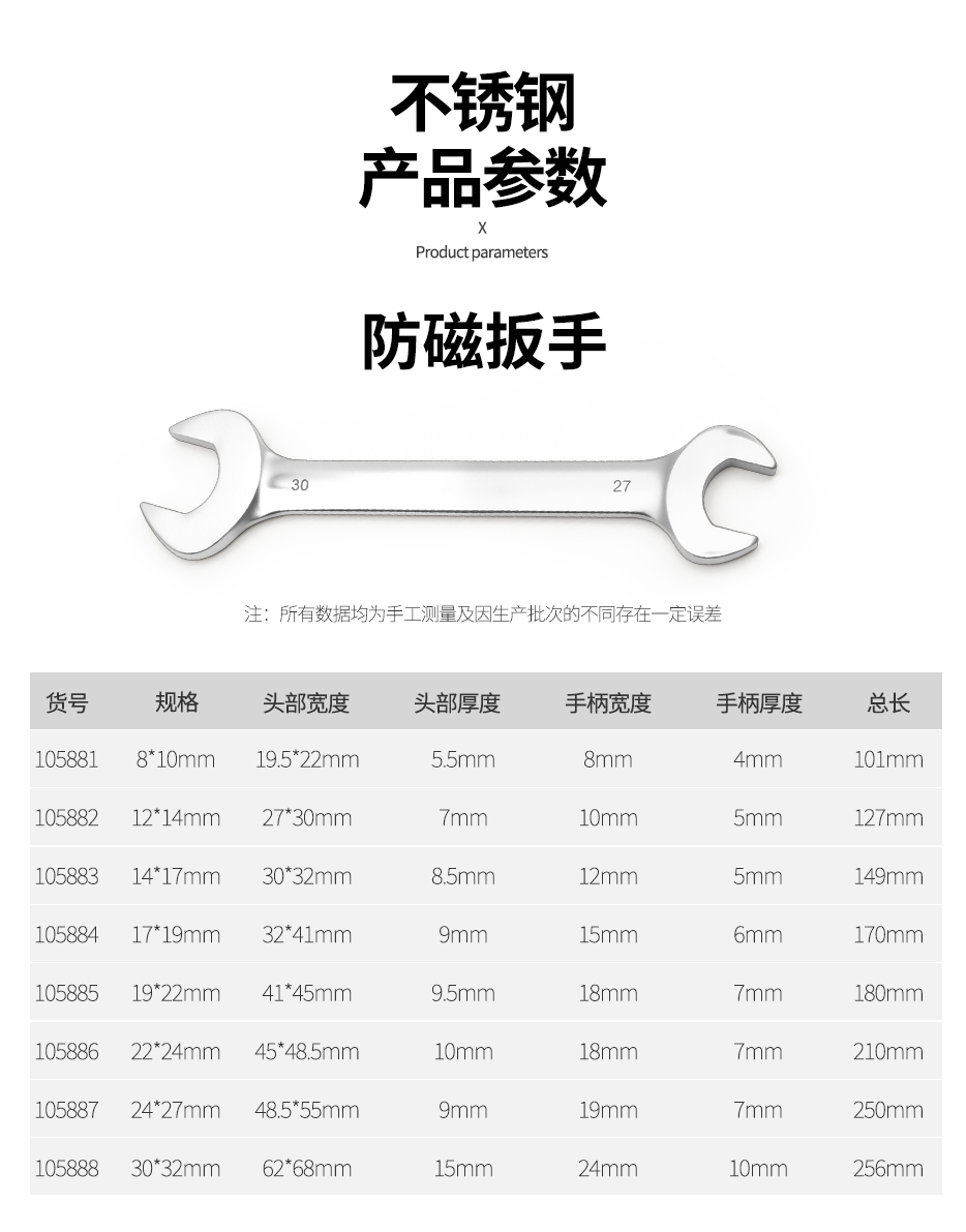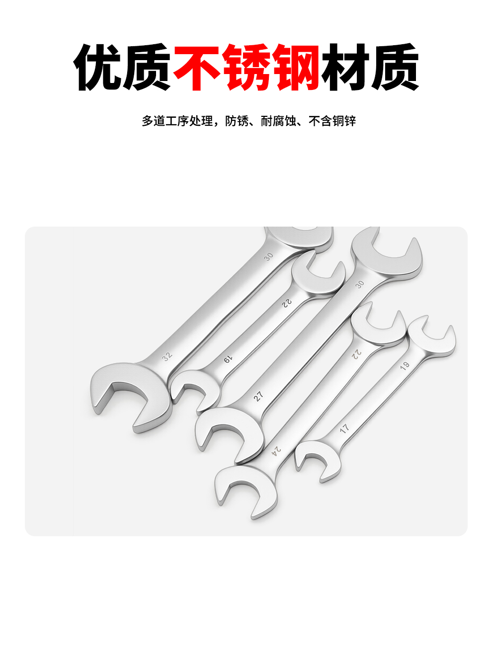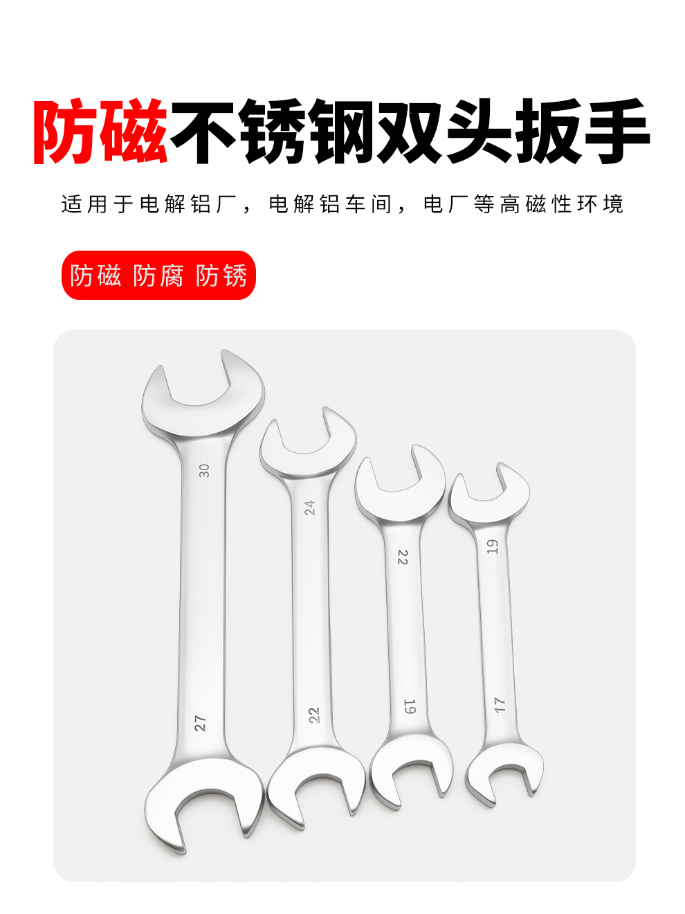 开拓防磁304不锈钢双头呆扳手双开口板子白钢防腐蚀防锈维修工具