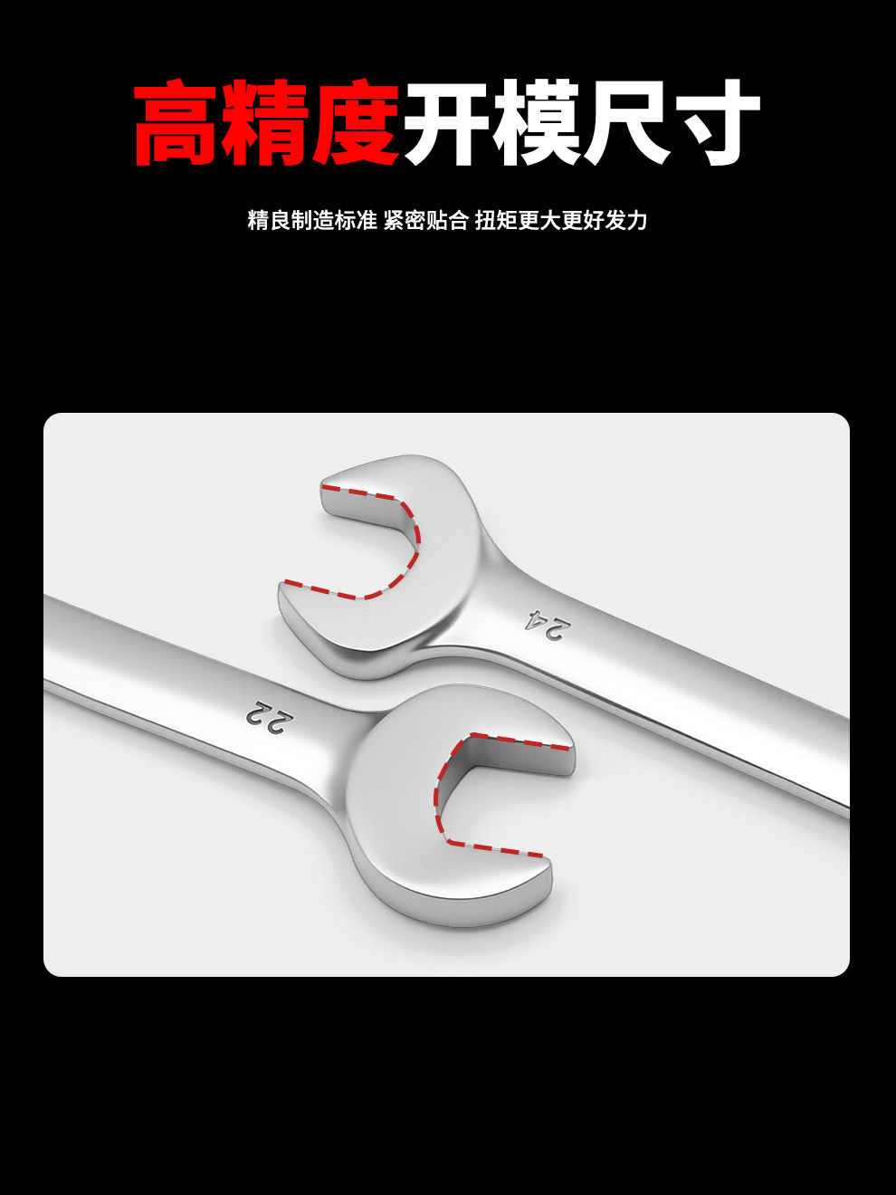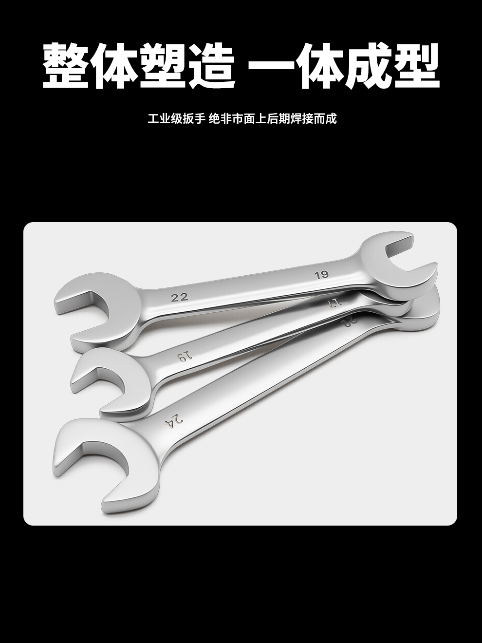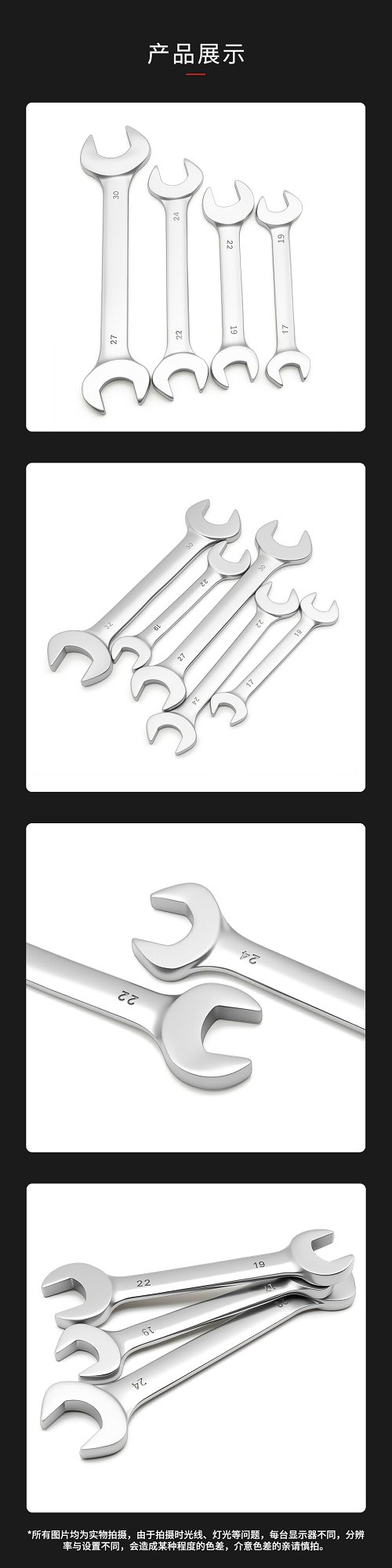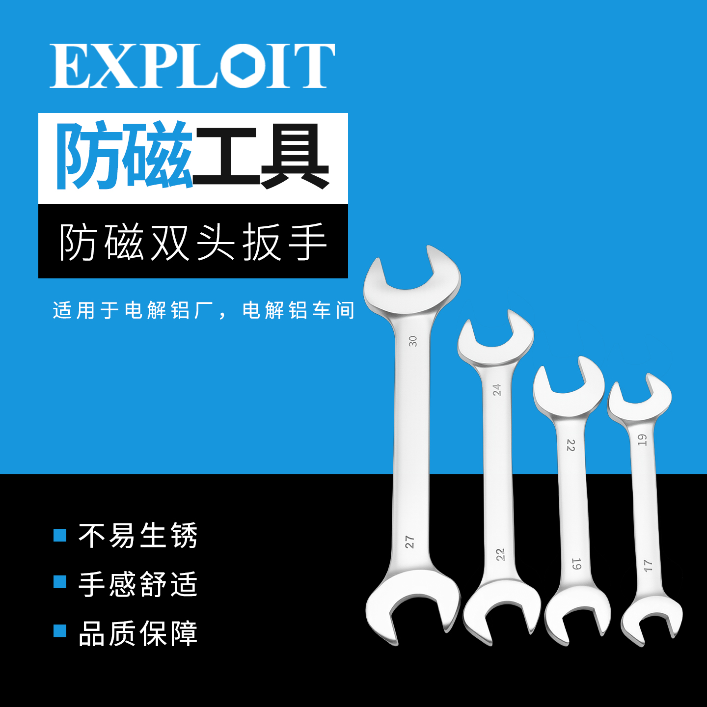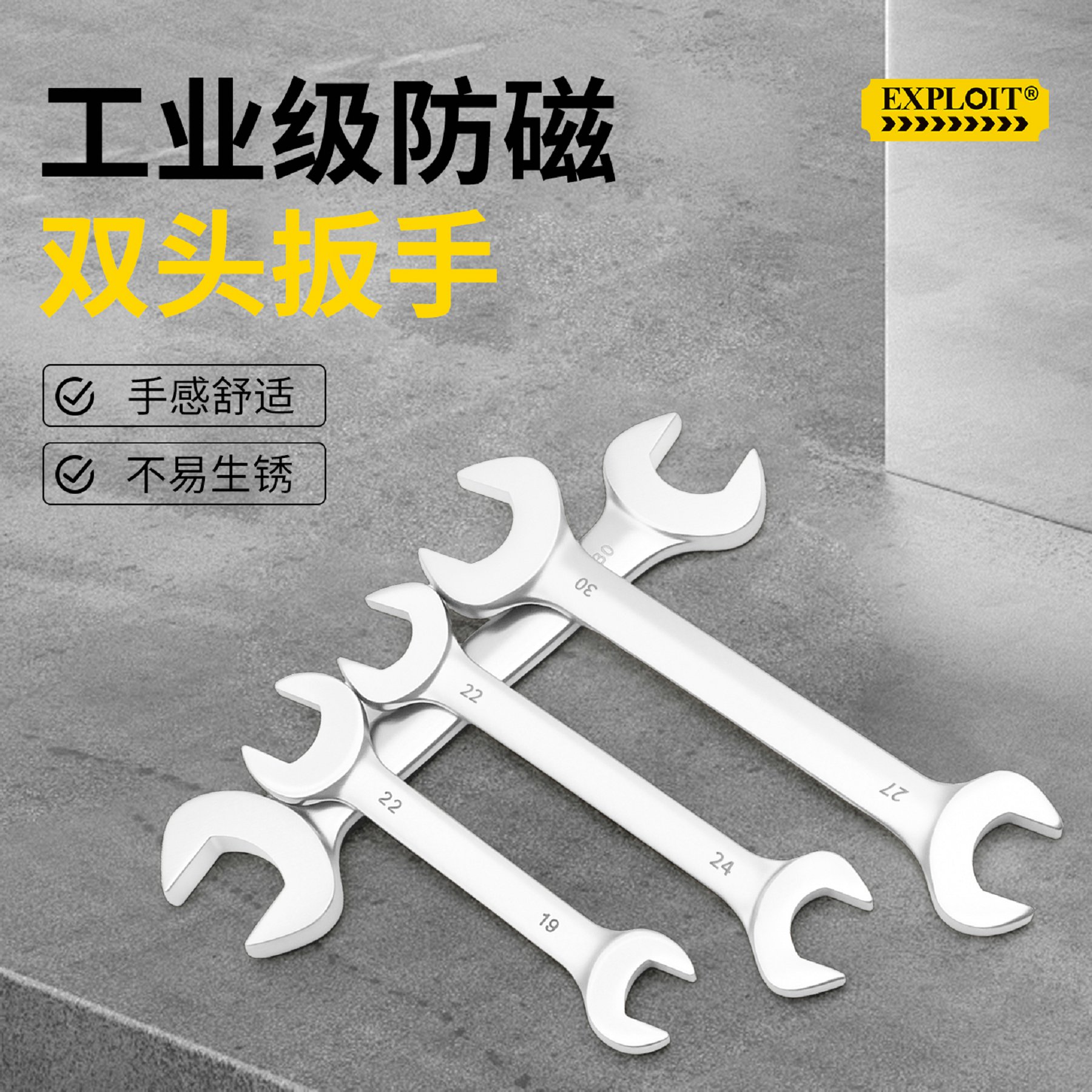 开拓防磁304不锈钢双头呆扳手双开口板子白钢防腐蚀防锈维修工具