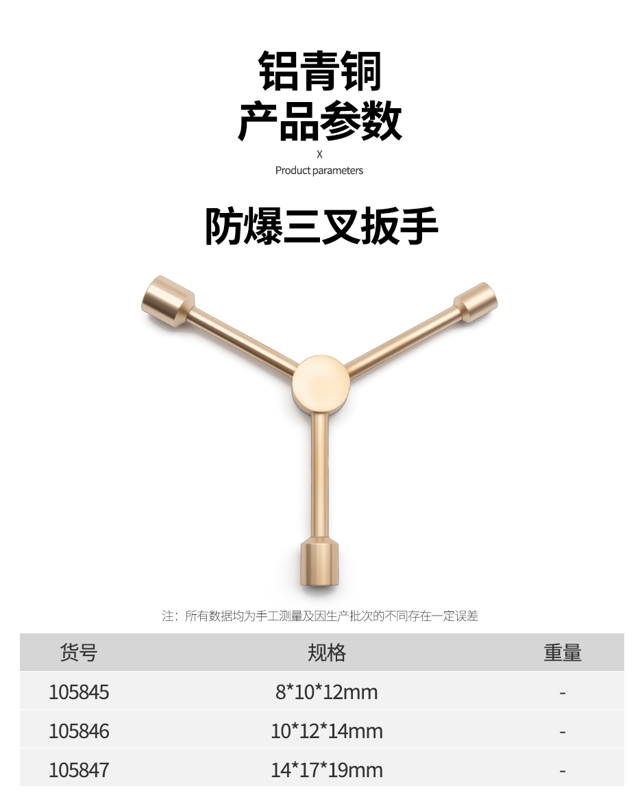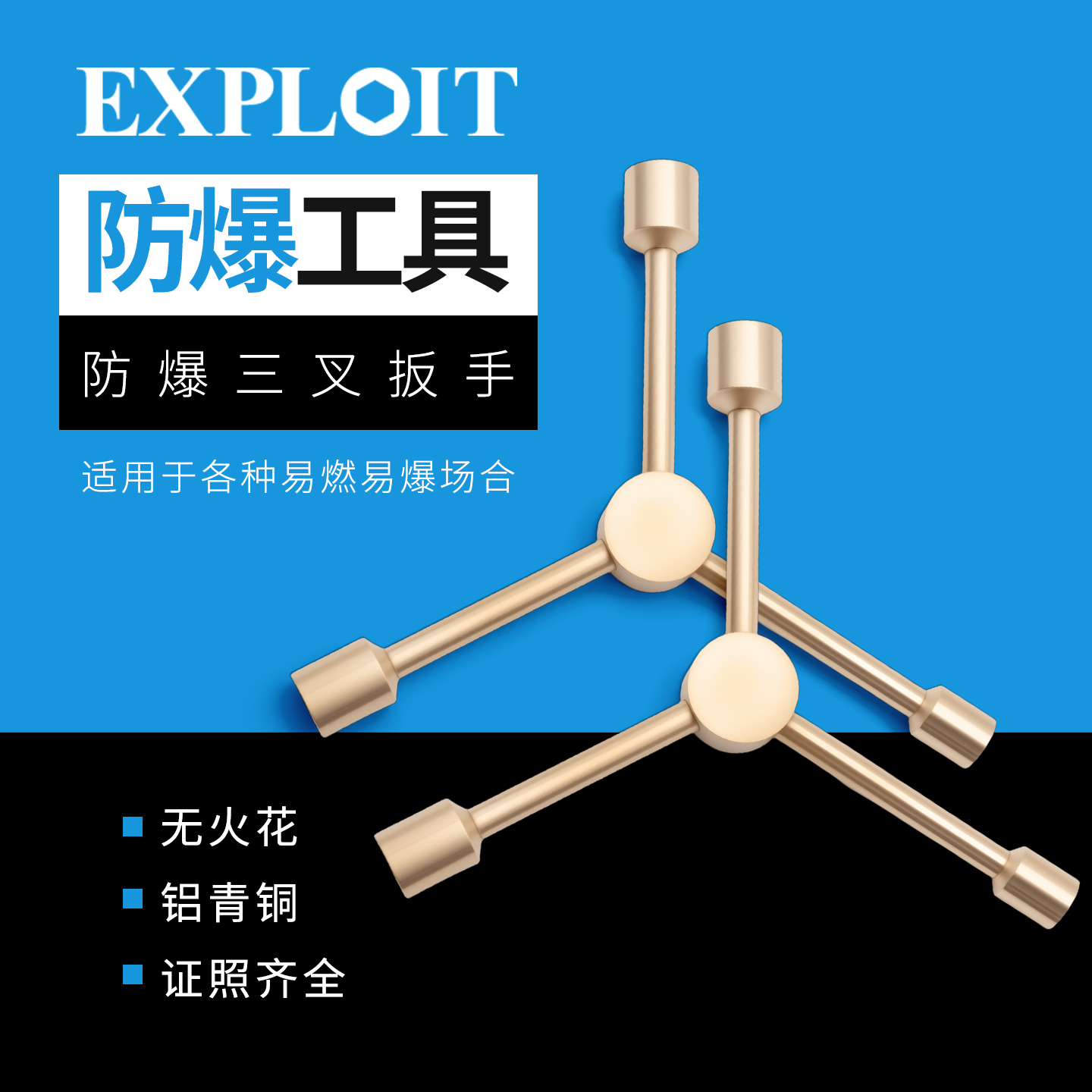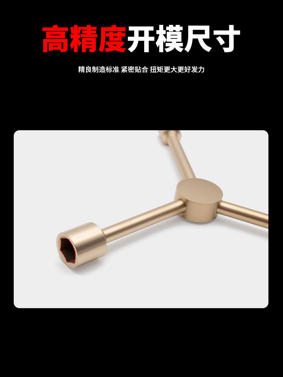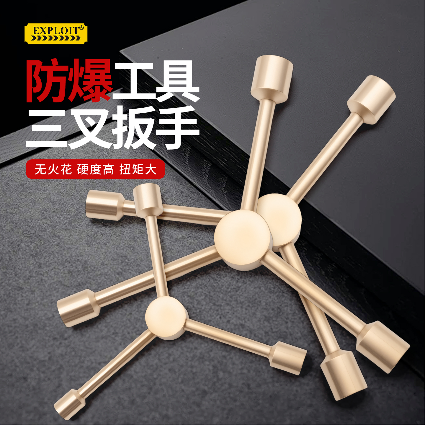 开拓防爆三叉扳手铝青铜多用三头扳手全铜无火花三岔套筒扳子