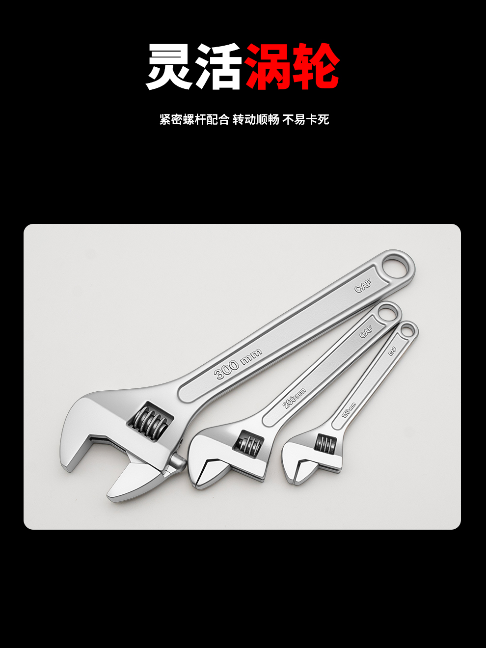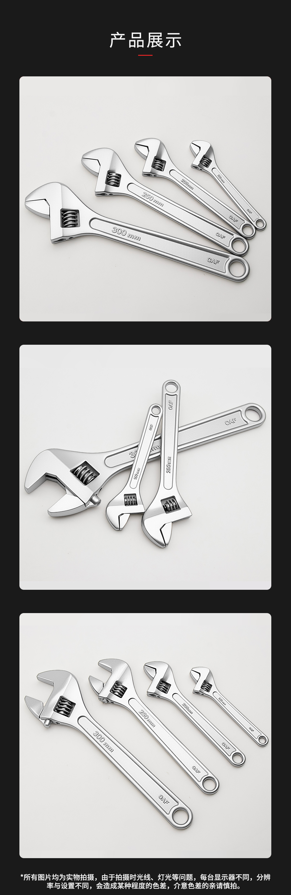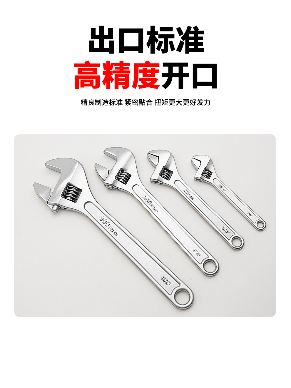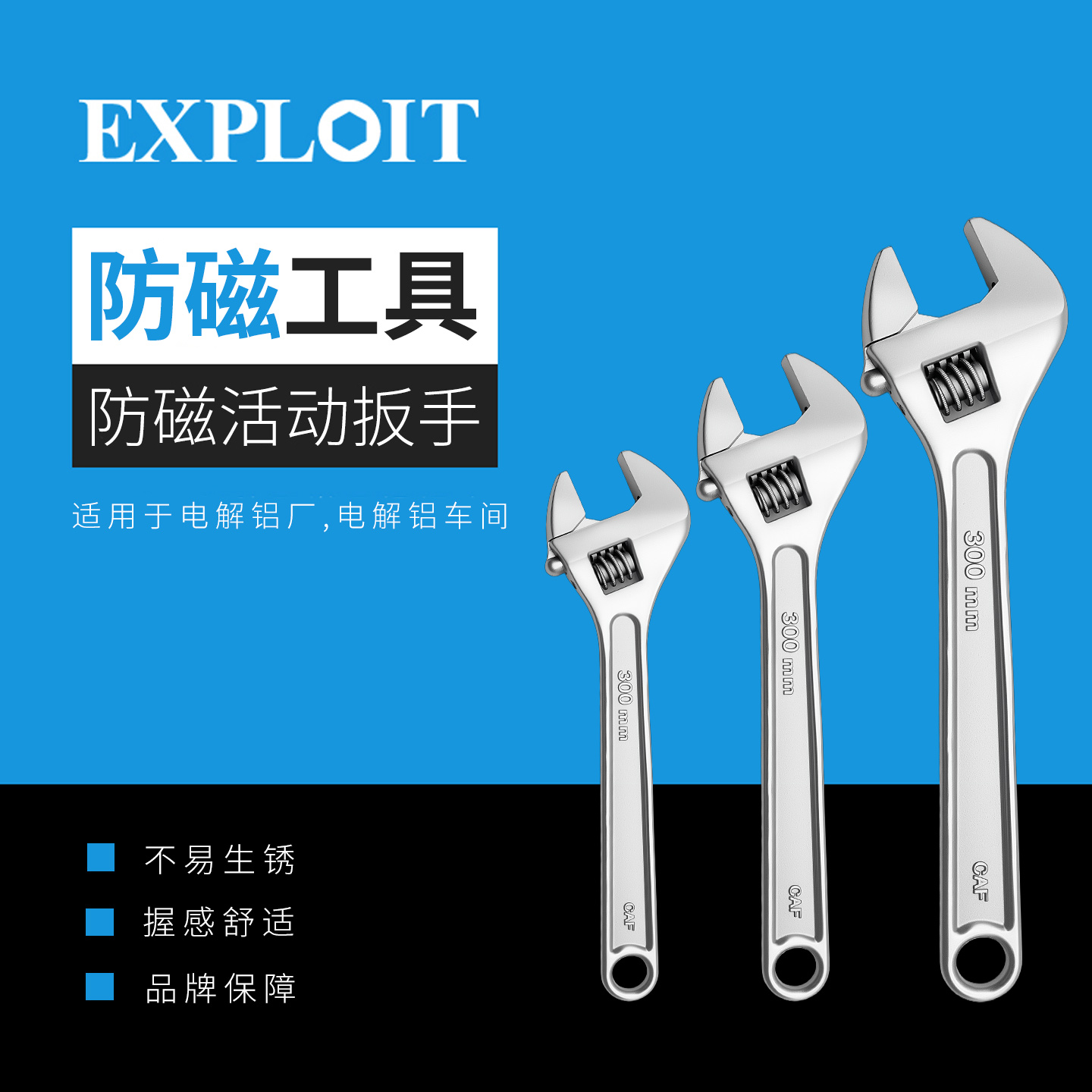 开拓防磁304不锈钢可调活动扳手6-24寸防锈防腐蚀白钢活口扳手