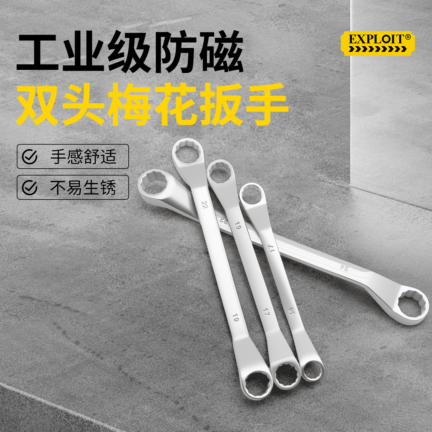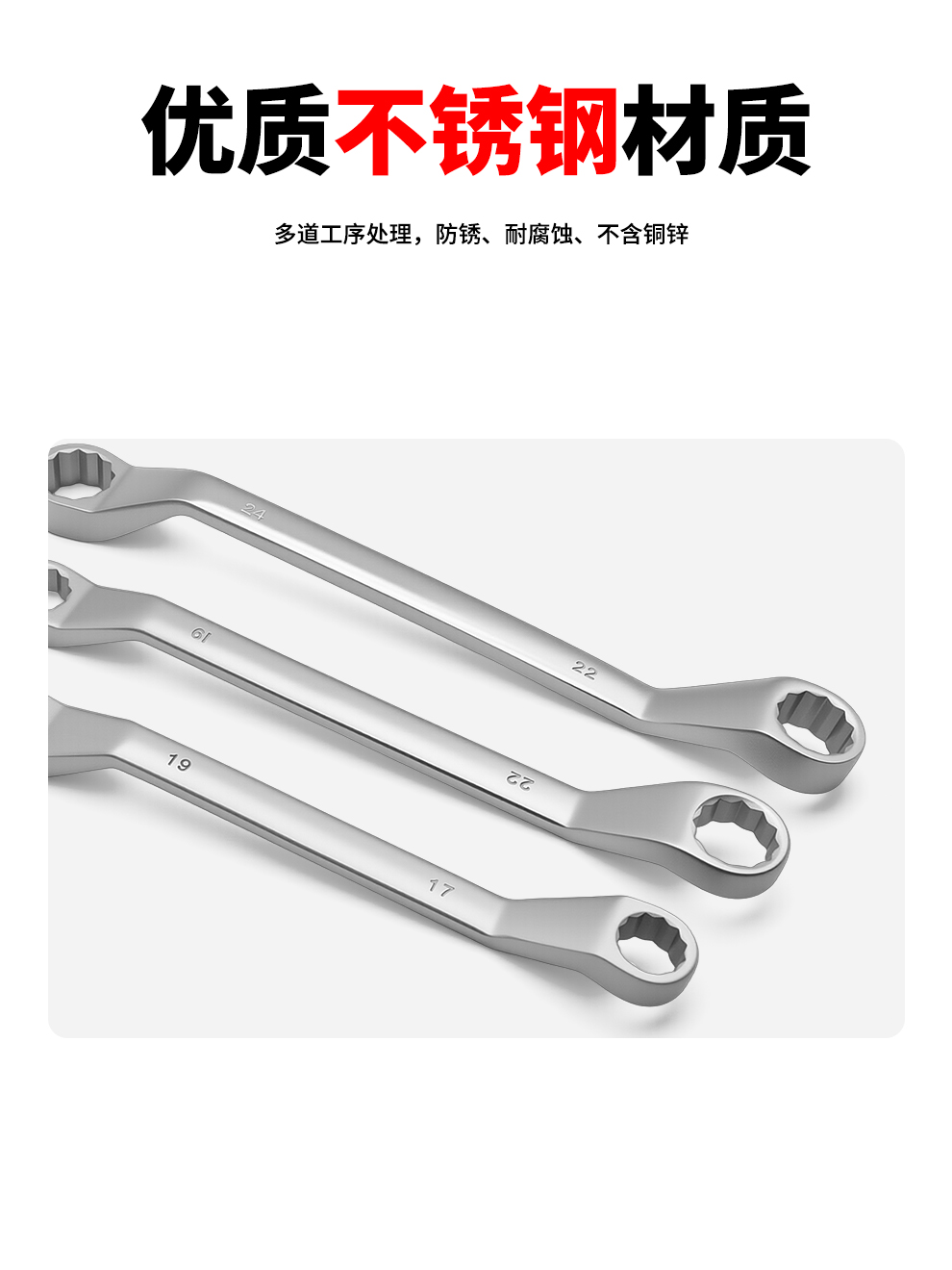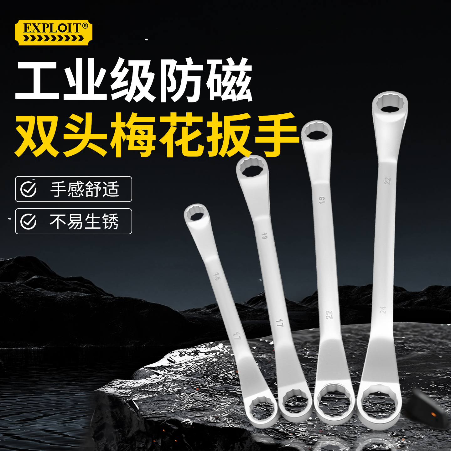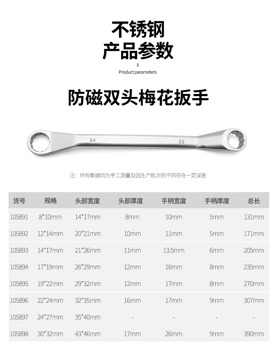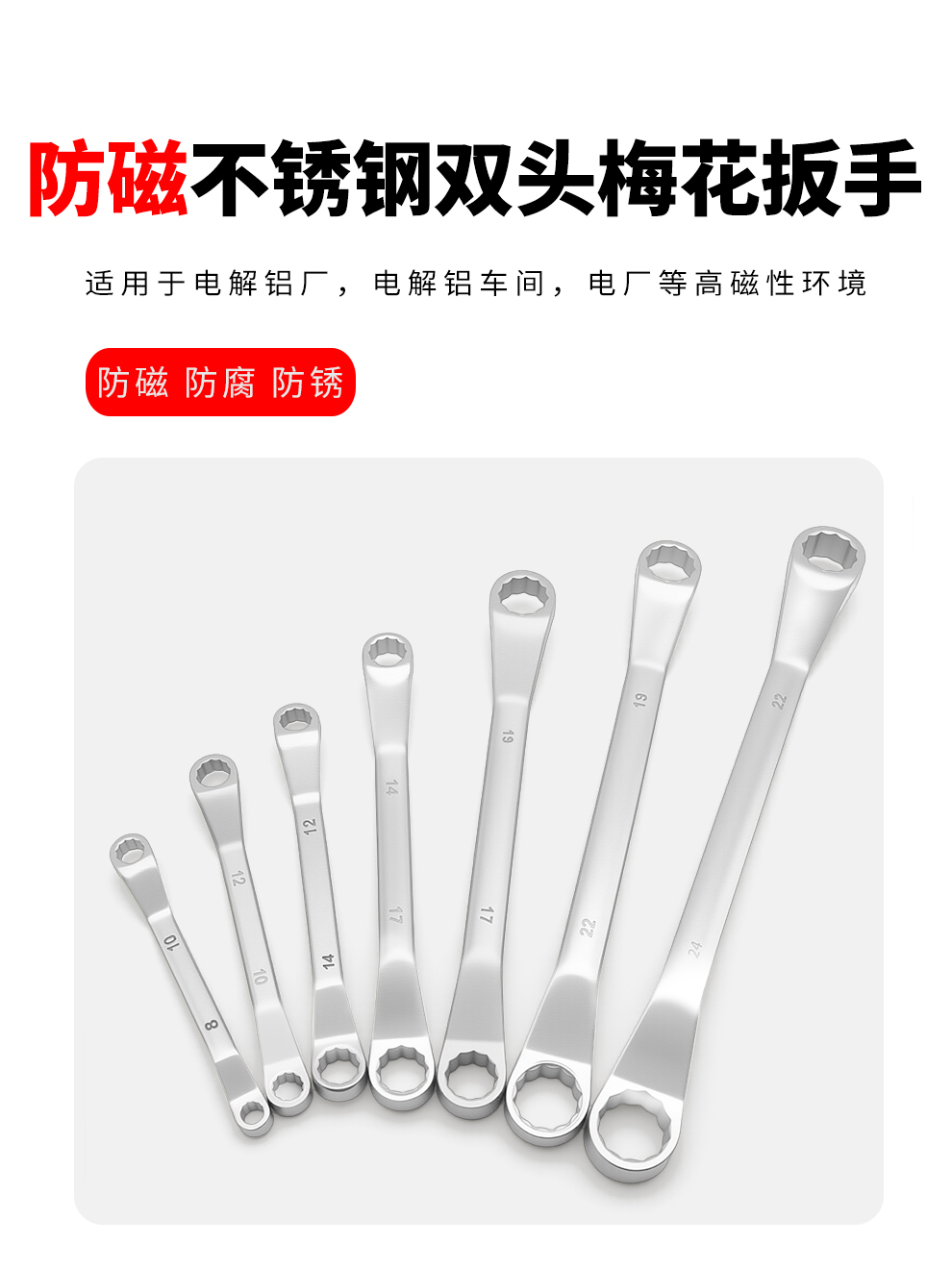 开拓防磁304不锈钢双头梅花扳手8-32mm防锈防腐蚀白钢眼睛板子