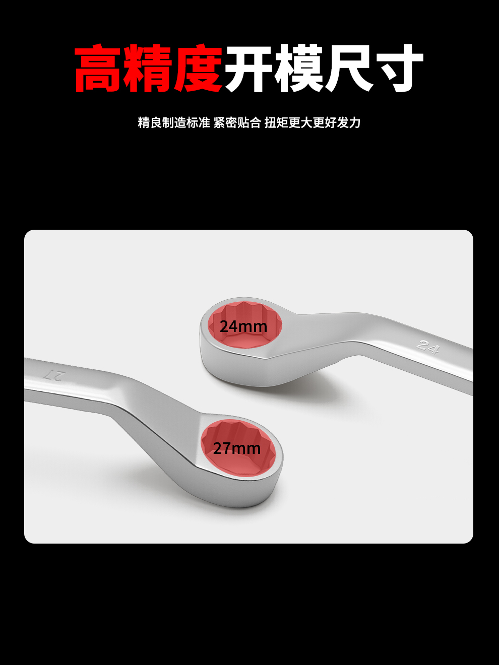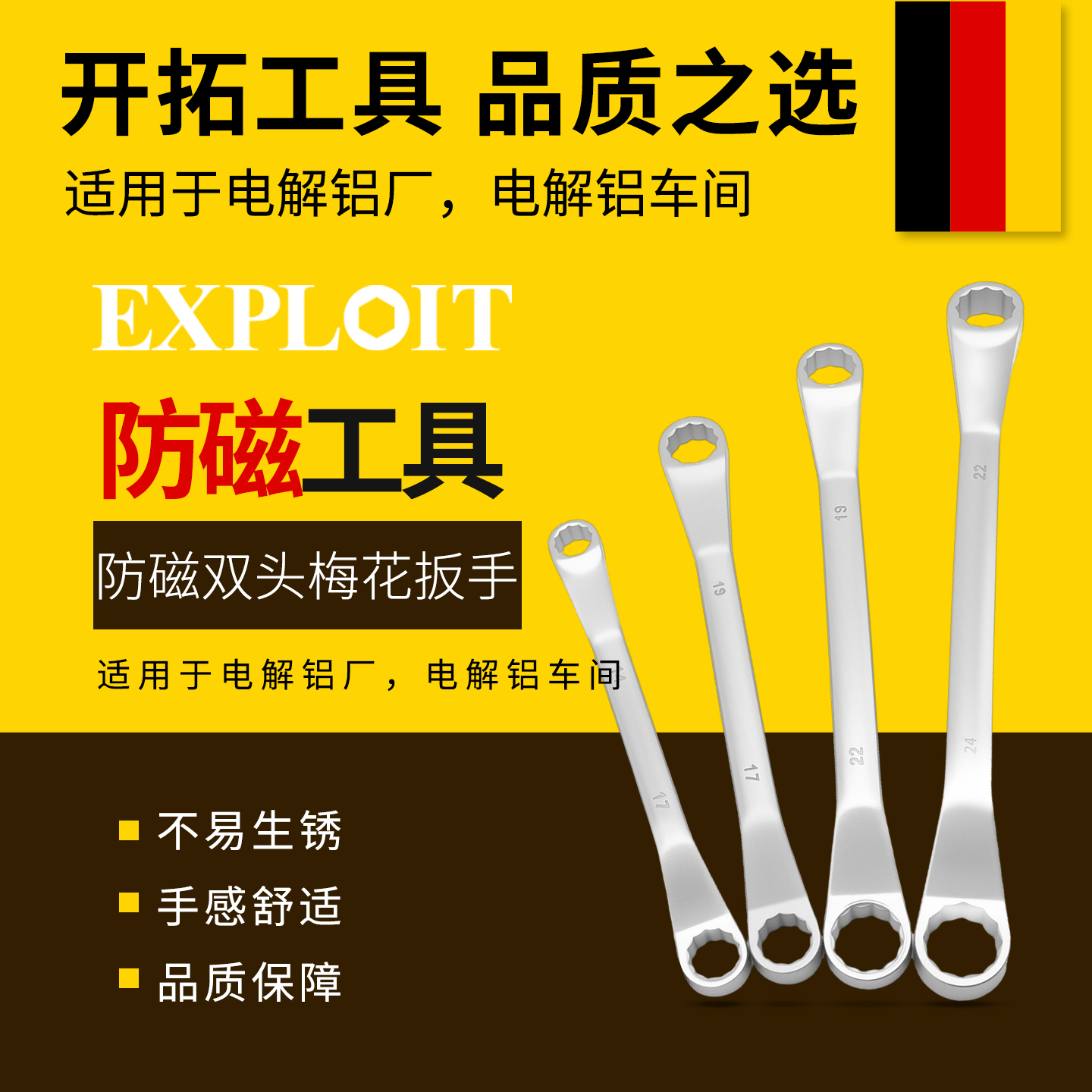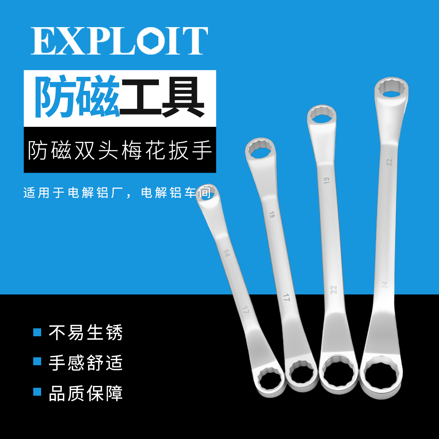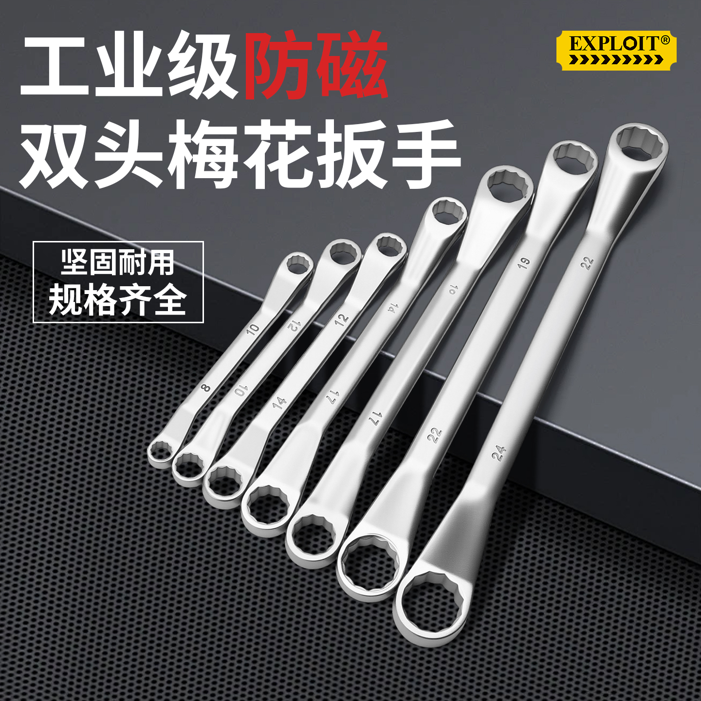 开拓防磁304不锈钢双头梅花扳手8-32mm防锈防腐蚀白钢眼睛板子