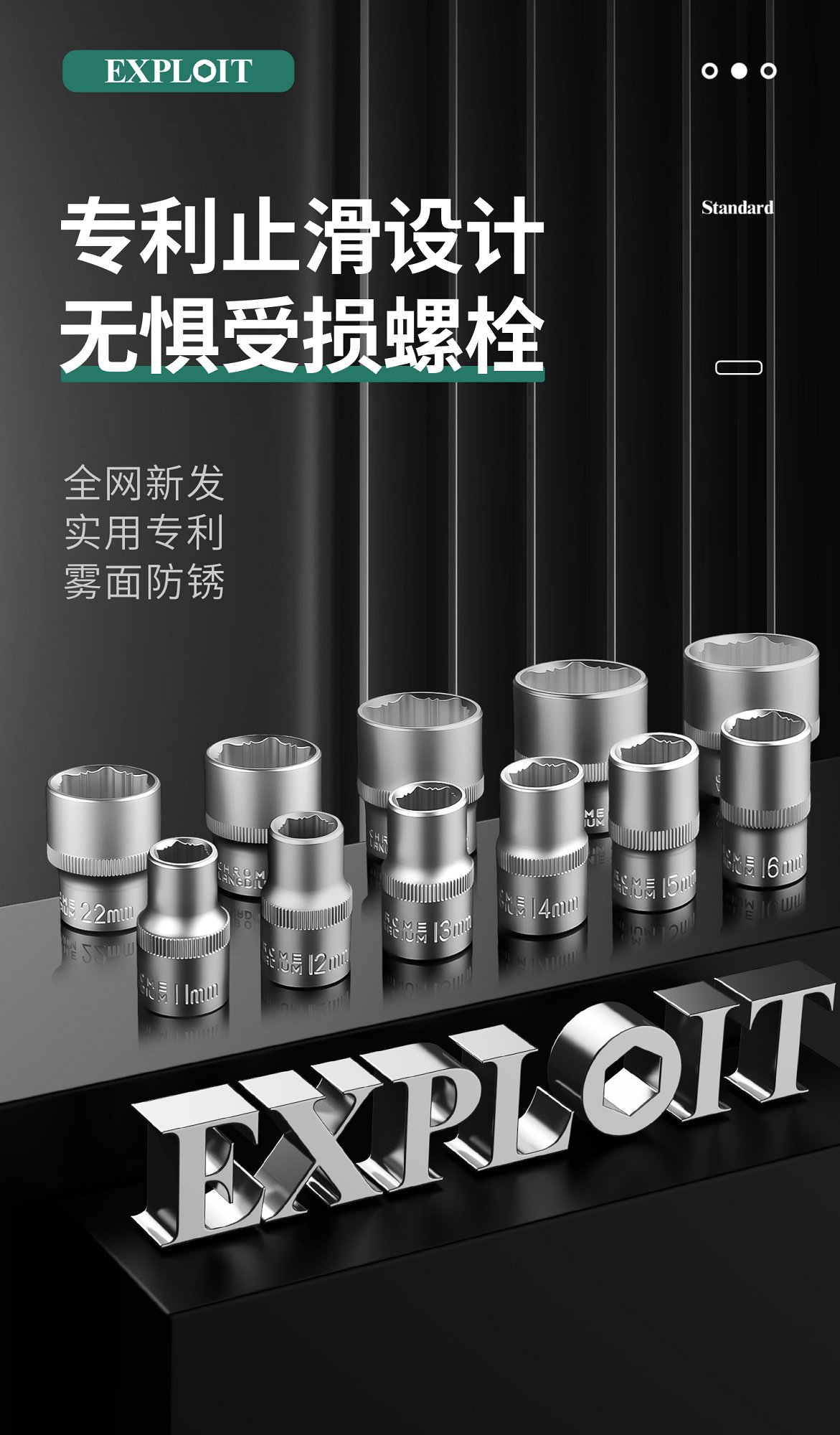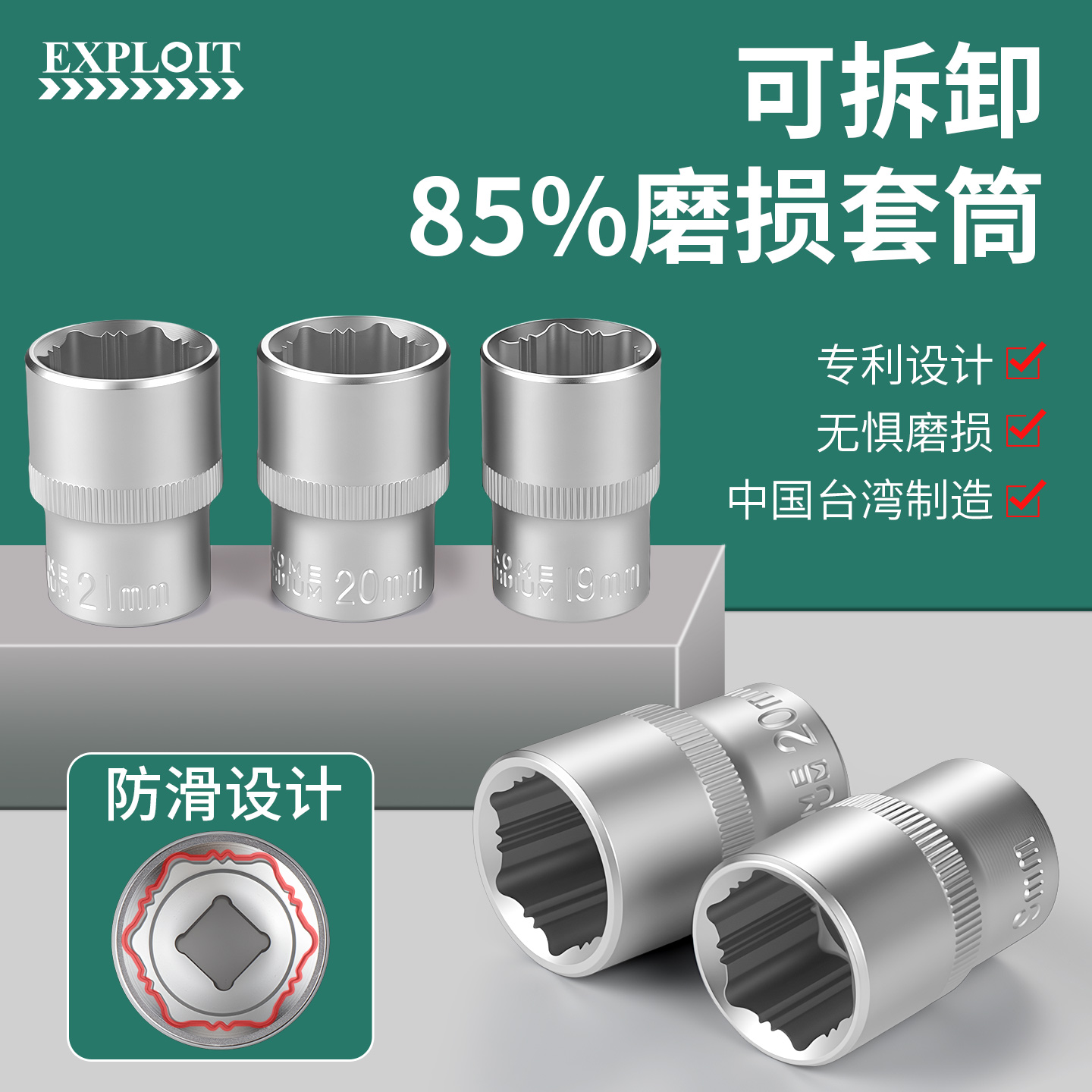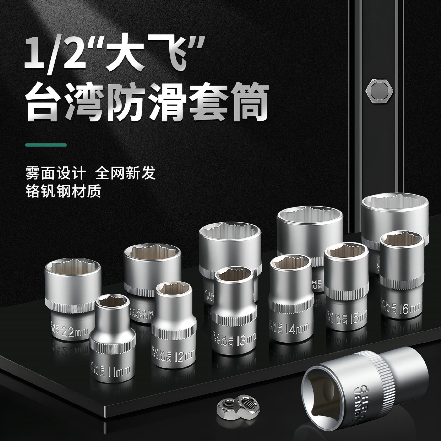 开拓1/2大飞台湾防滑六角扳手套筒8-32mm棘轮扳手头汽修工具配件