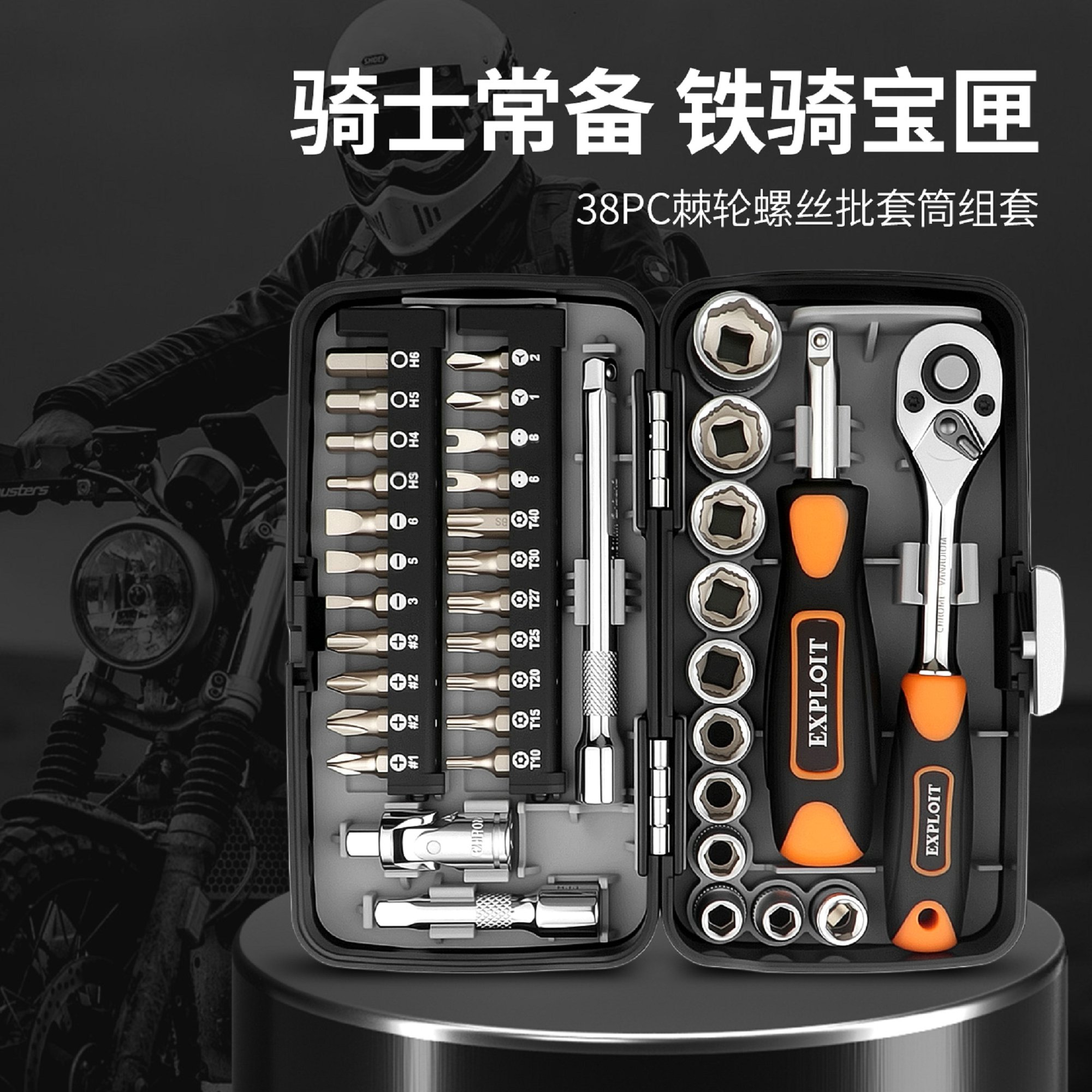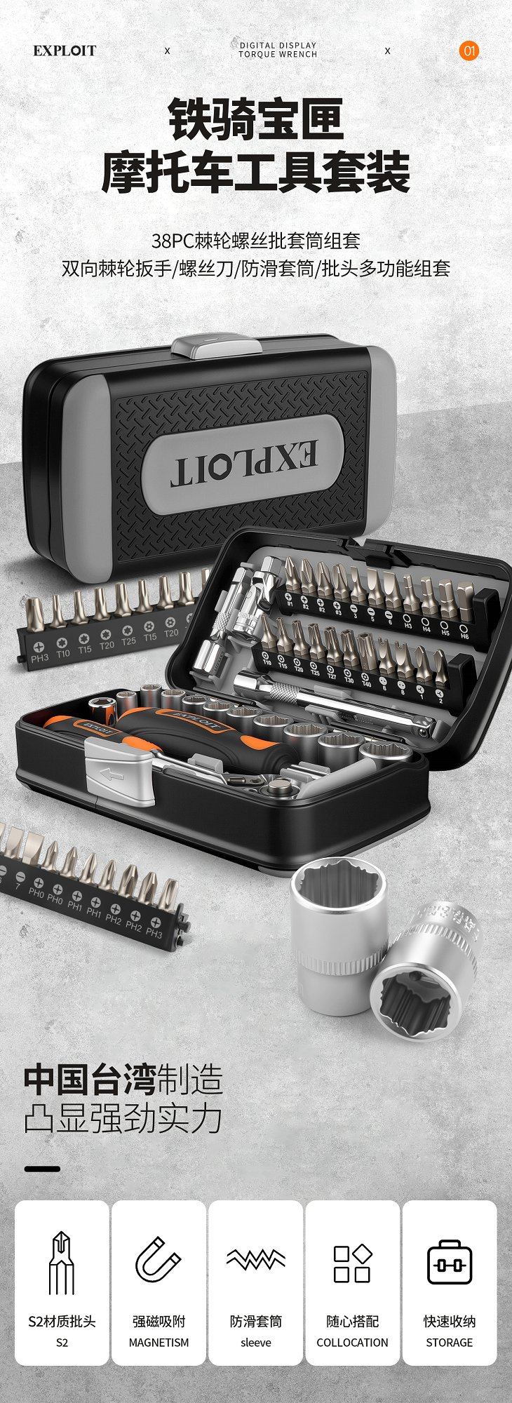 开拓台湾棘轮扳手摩托套装便携套筒螺丝刀多功能起子维修专用工具
