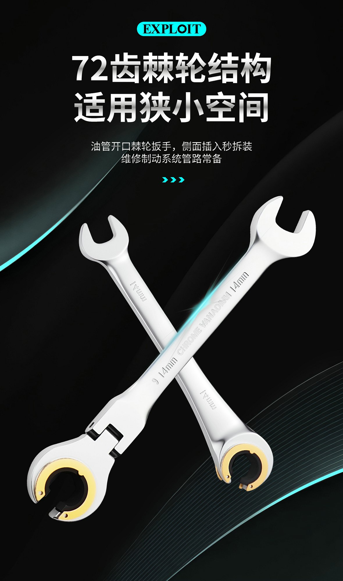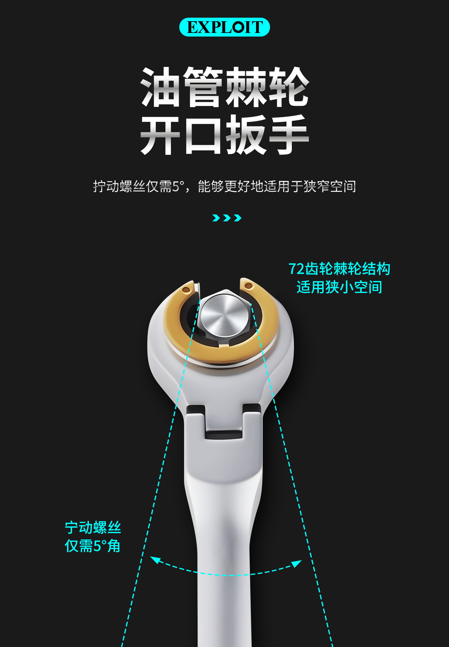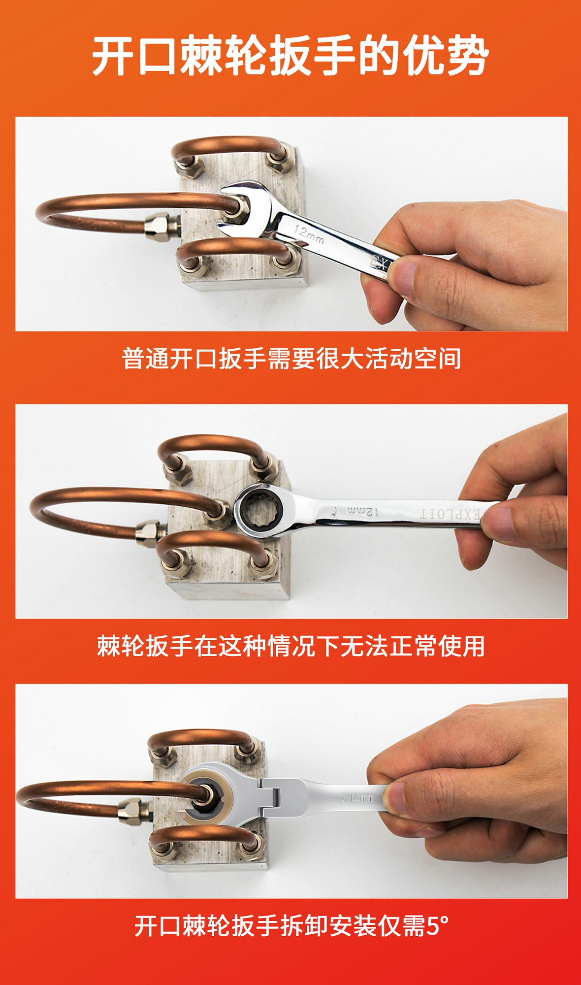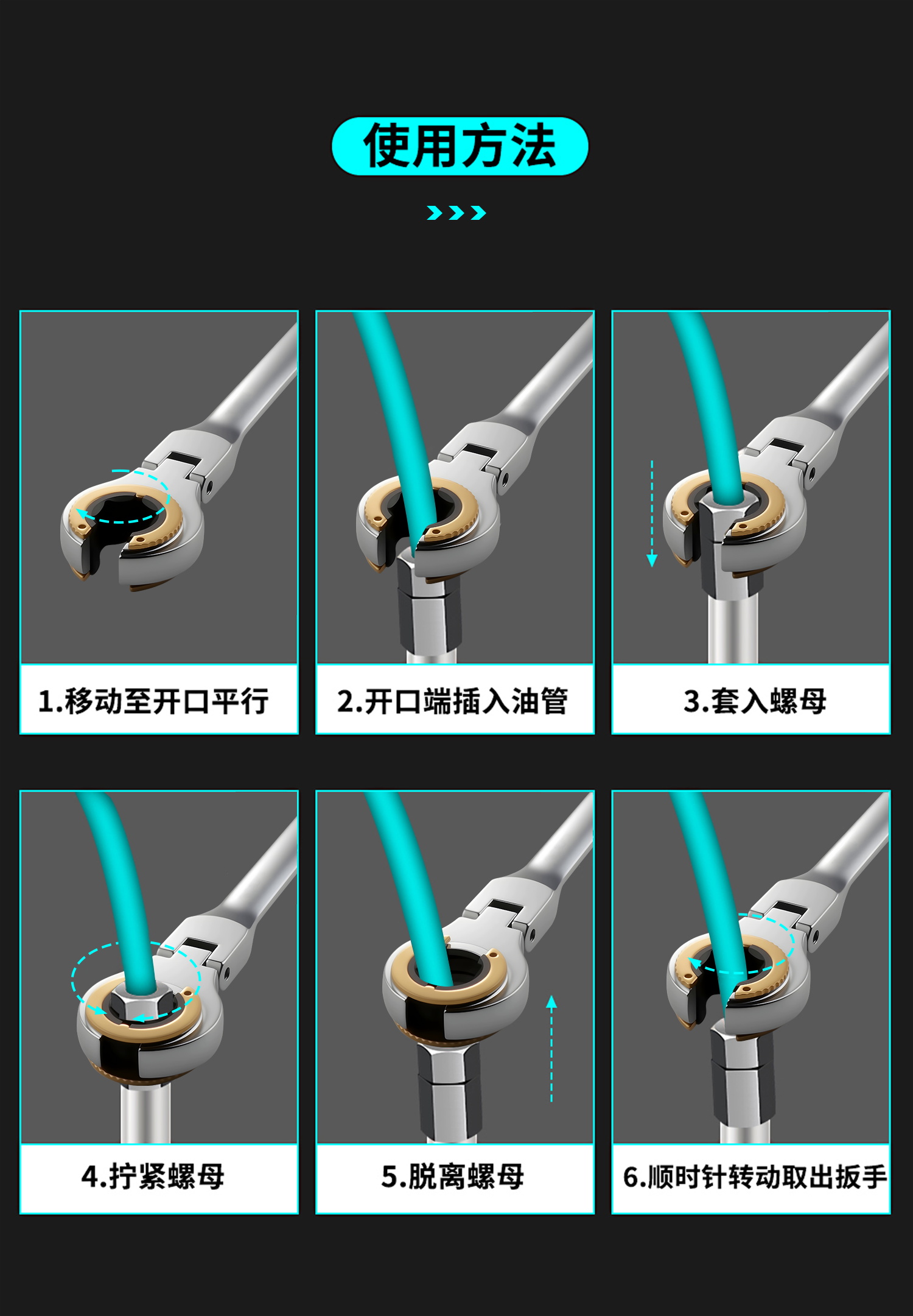 开拓油管棘轮扳手双向开口狭窄空间活动省力快速油管拆用扳手