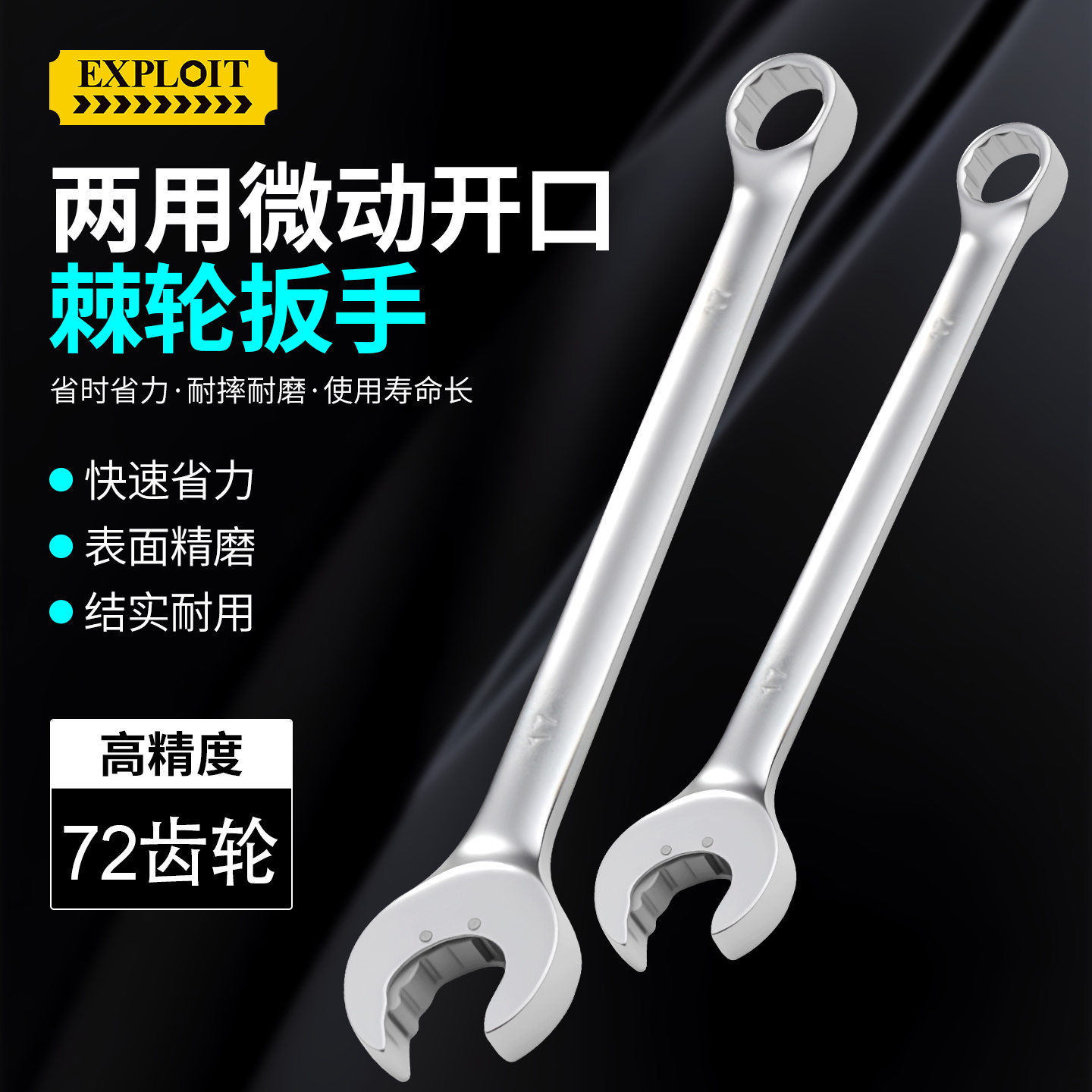 开拓微动棘轮扳手双头开口梅花两用呆板子14-19mm汽修专用工具