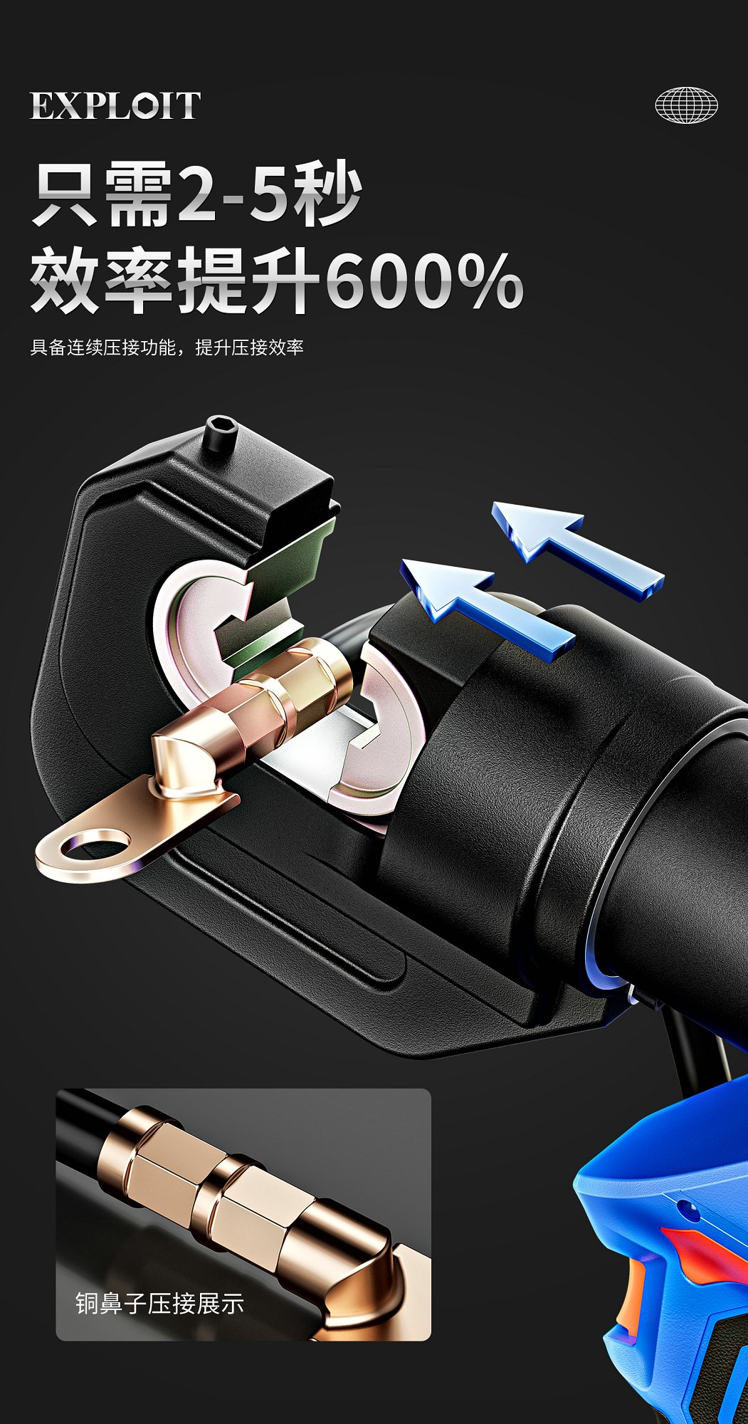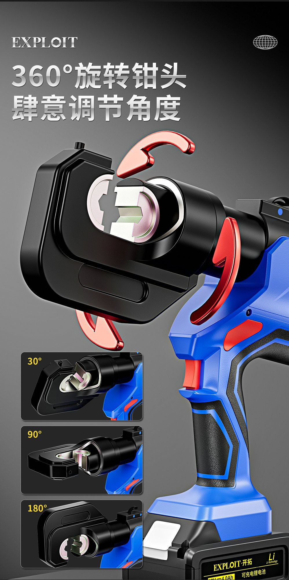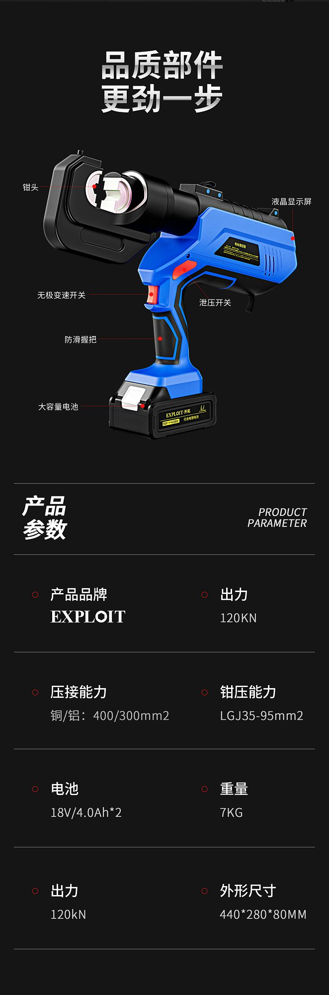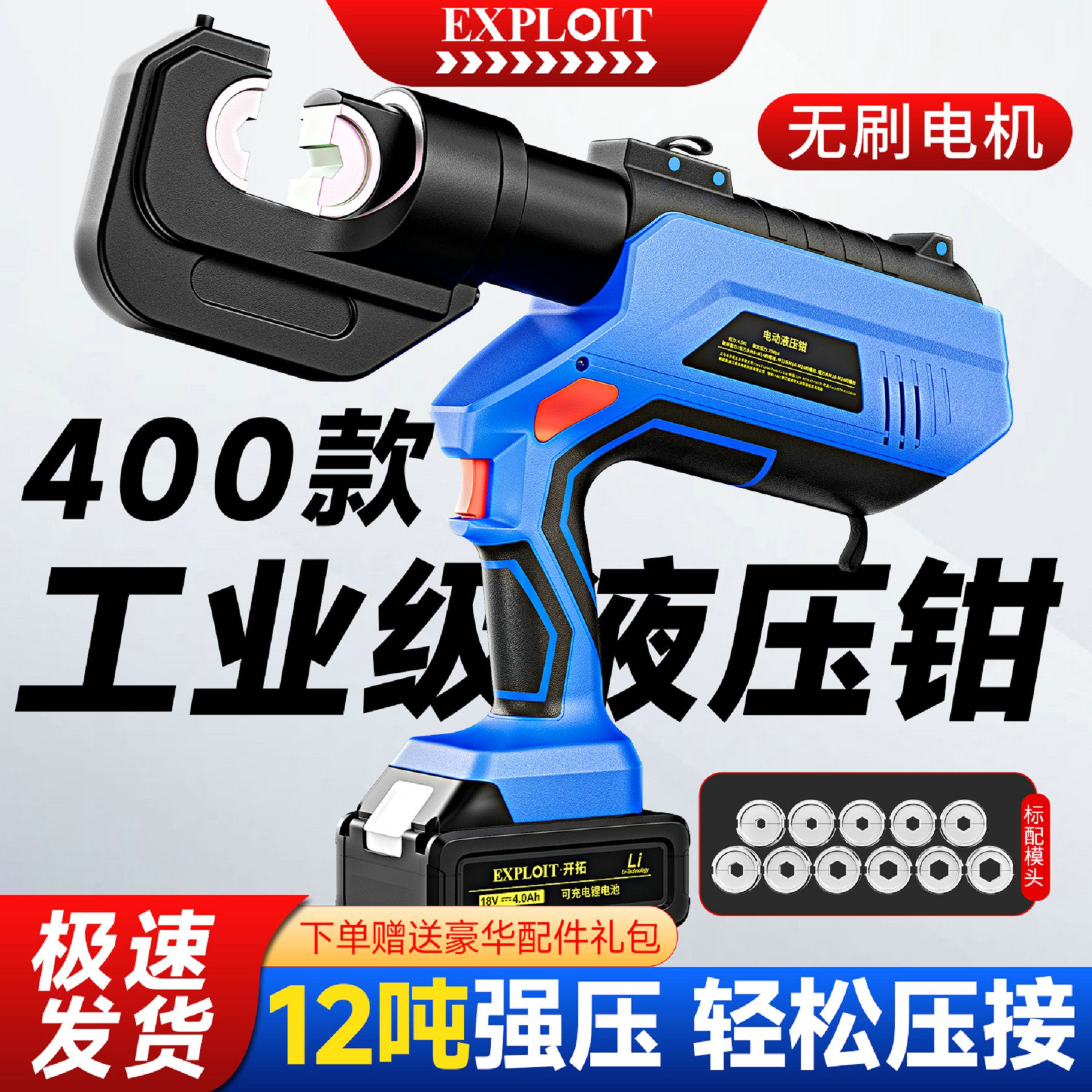 开拓锂电液压压接钳EZ-400充电式压接工具端子钳电缆剪液压铜鼻子