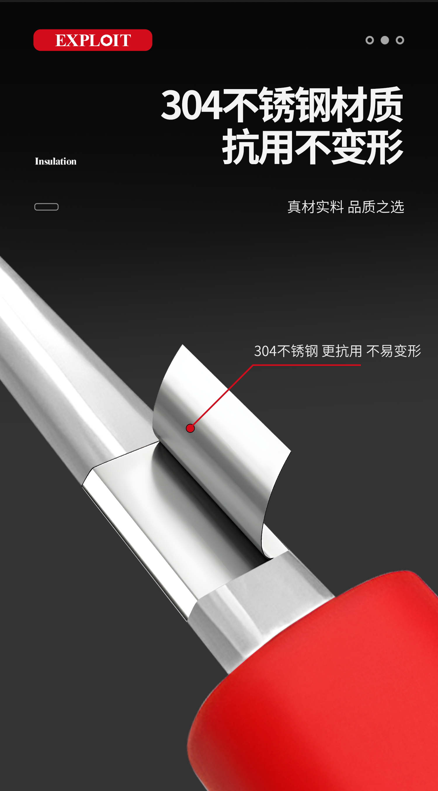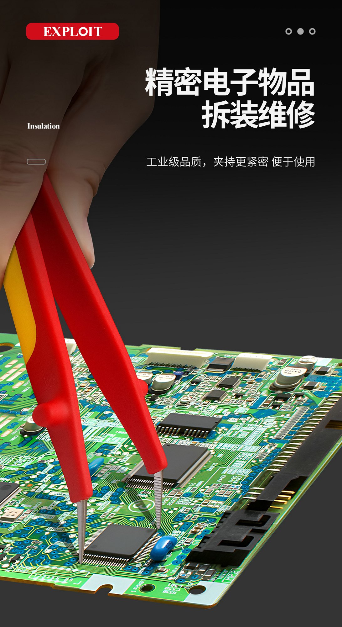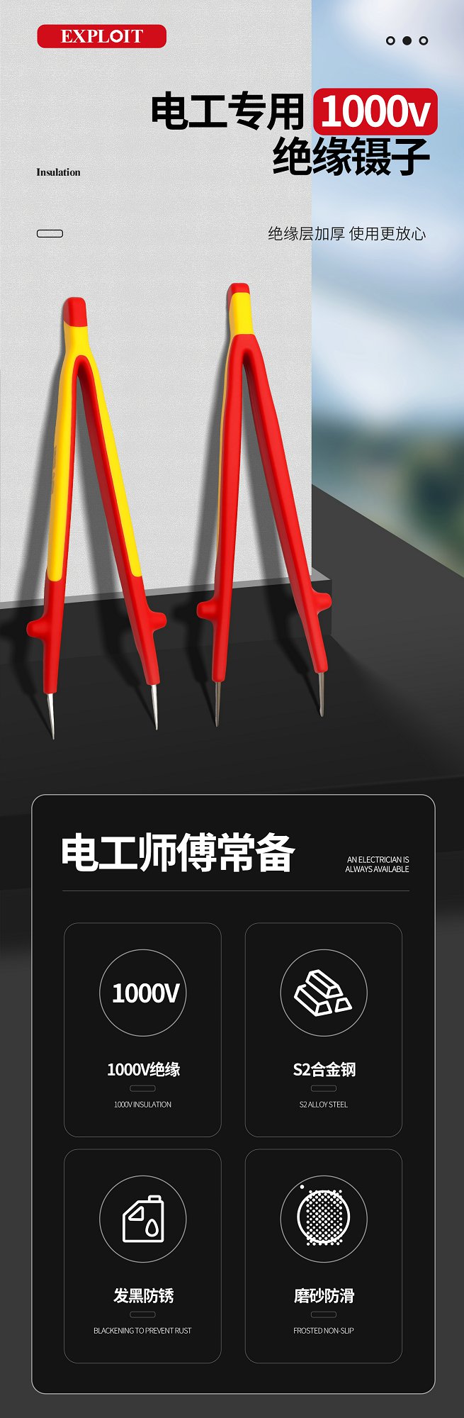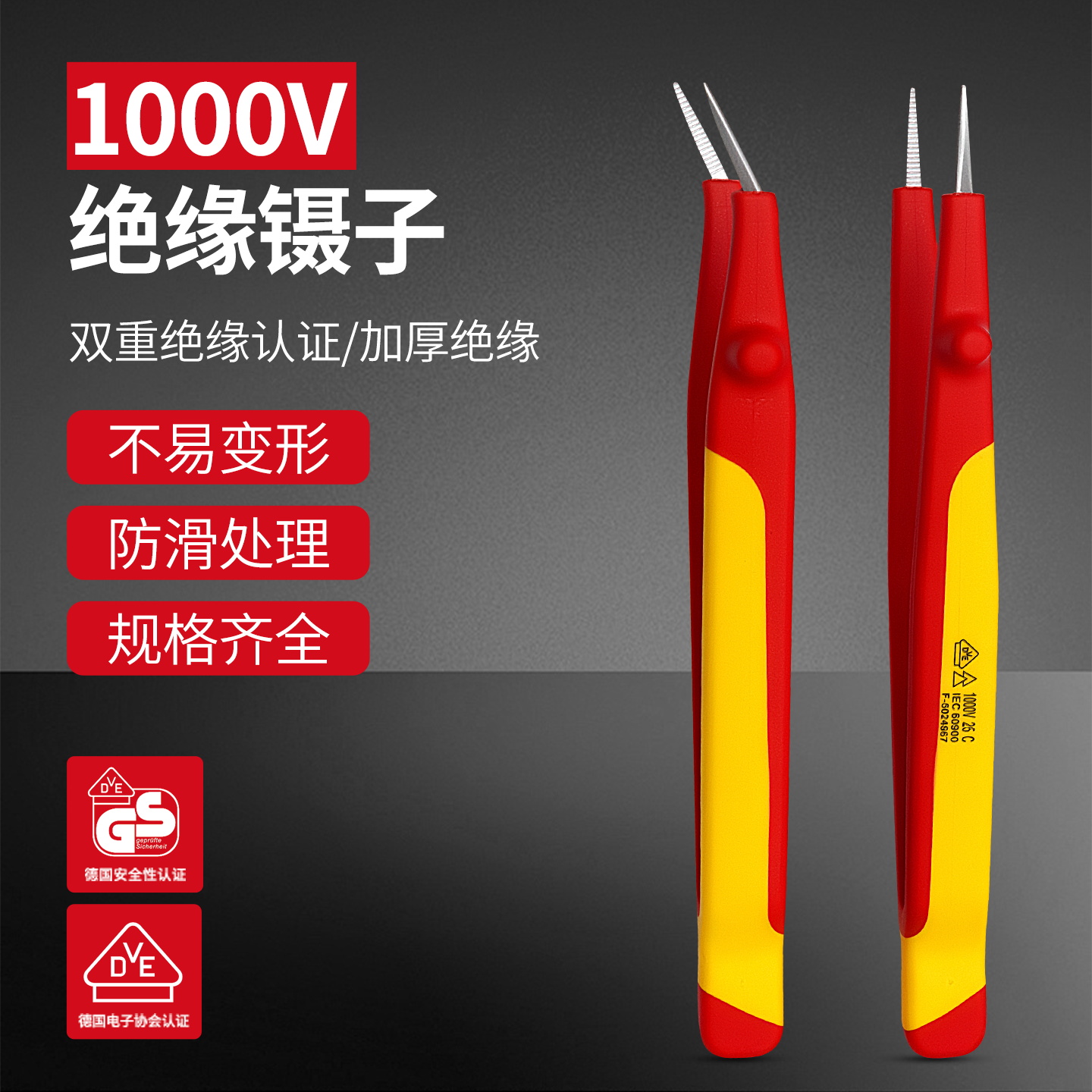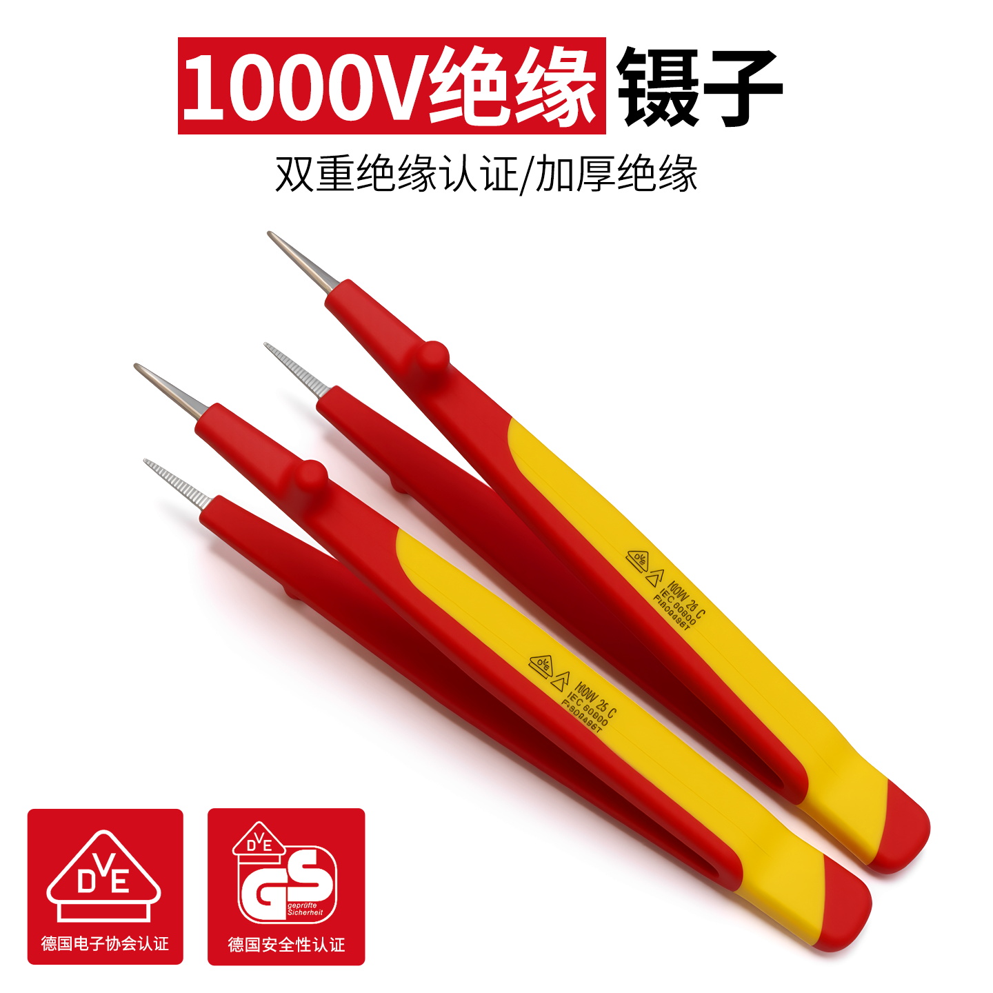 开拓绝缘1000V耐高压304不锈钢材质电工维修专用弯尖微针圆尖镊子