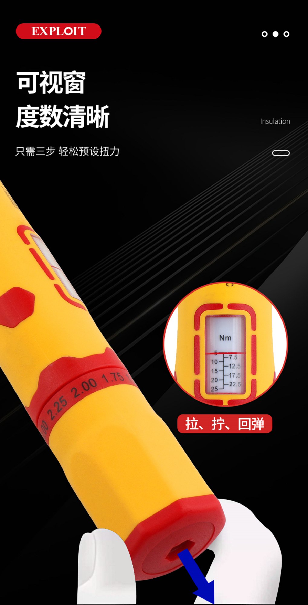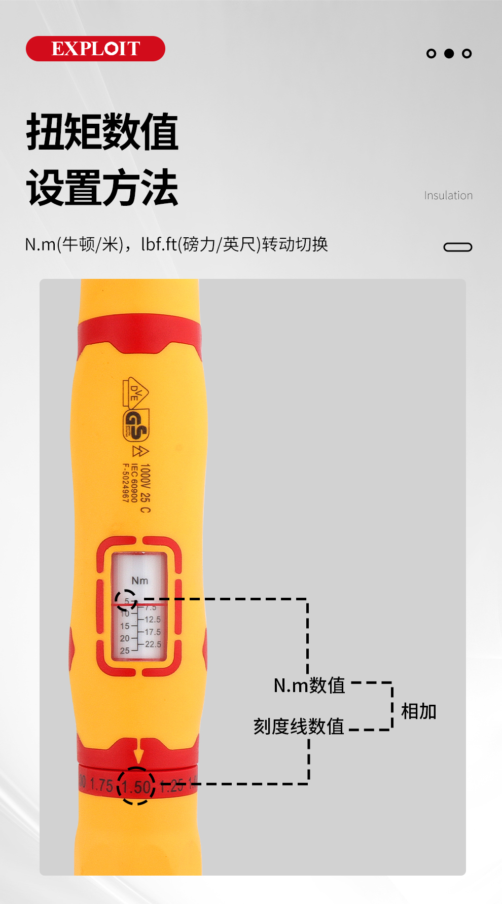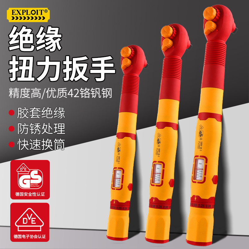 开拓绝缘扭力扳手VDE认证1000V耐高压可视窗力矩扳手电工维修工具