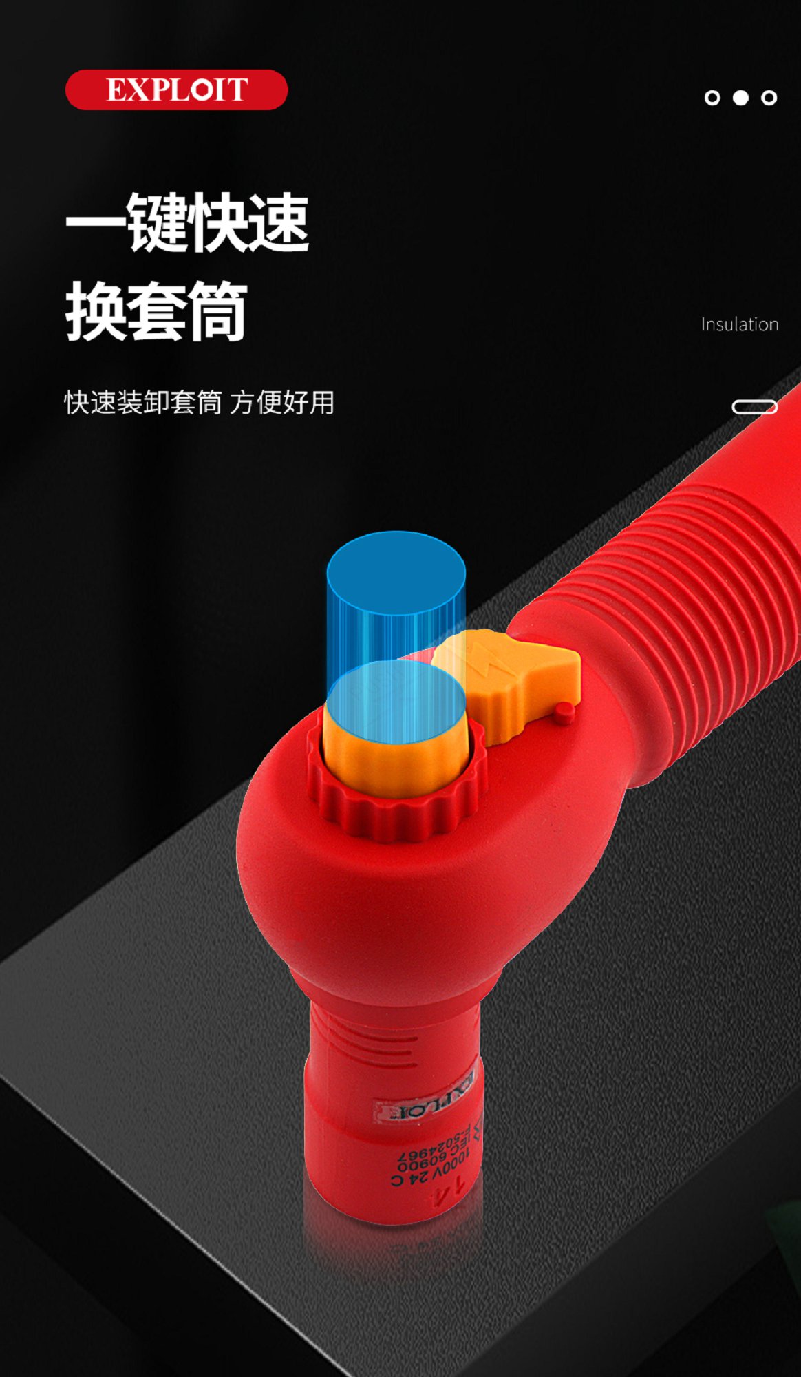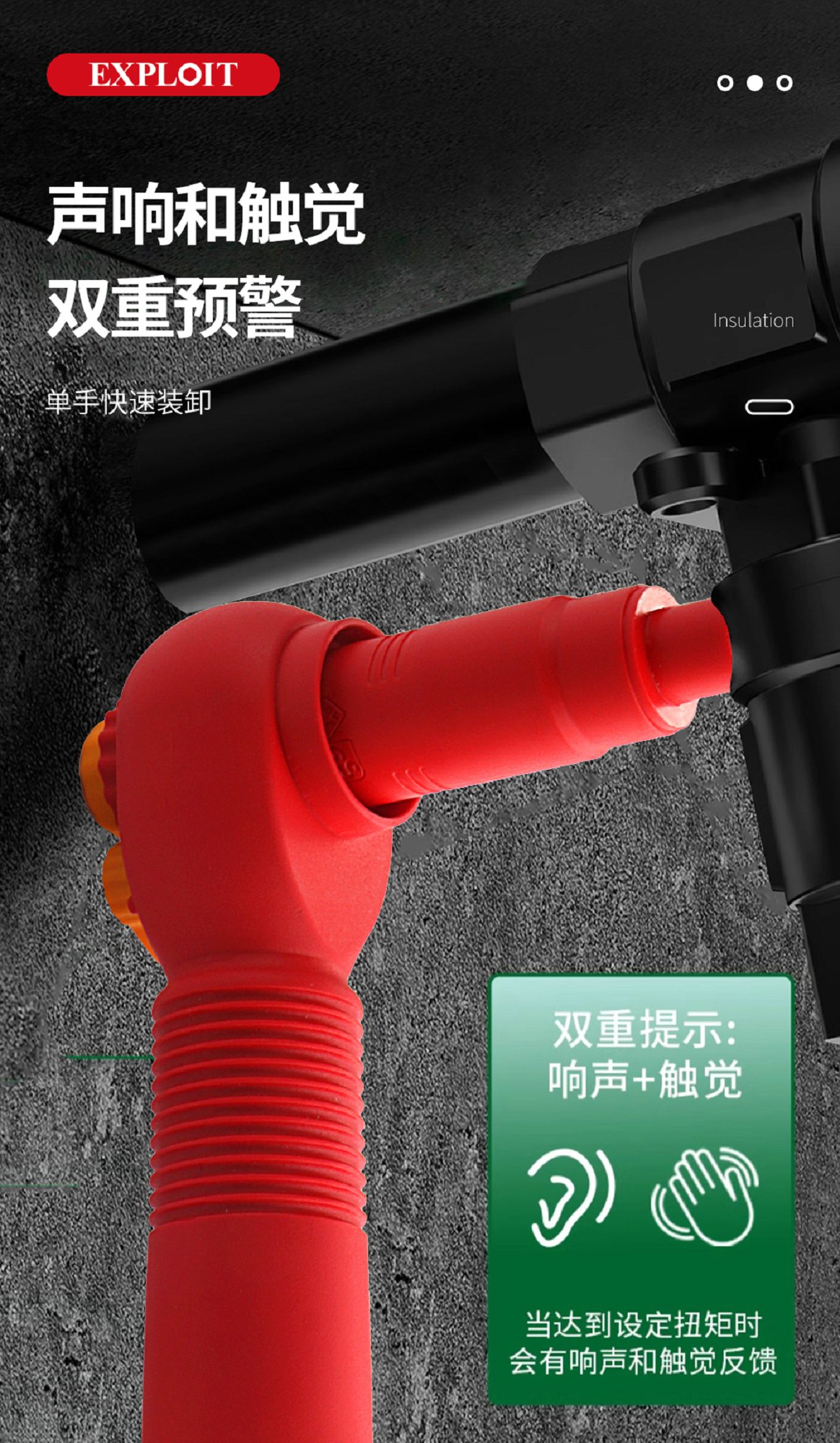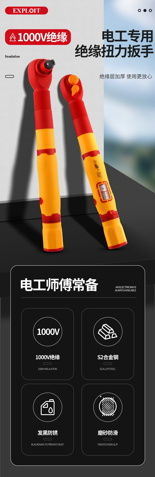 开拓绝缘扭力扳手VDE认证1000V耐高压可视窗力矩扳手电工维修工具