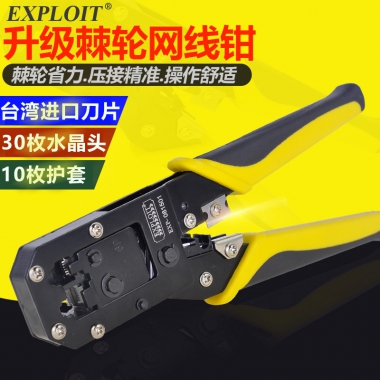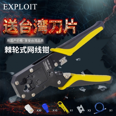 EXPLOIT开拓 台湾多功能电话压线钳 通孔水晶头棘轮网线钳剥线钳