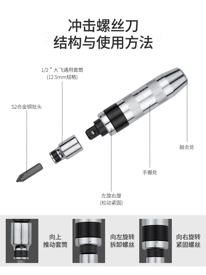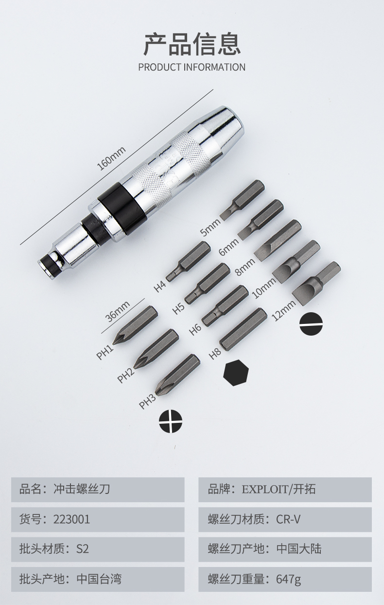 开拓 冲击批头 多功能断头螺丝取出器 冲击批 冲击螺丝刀