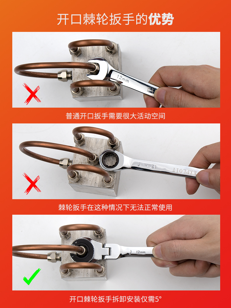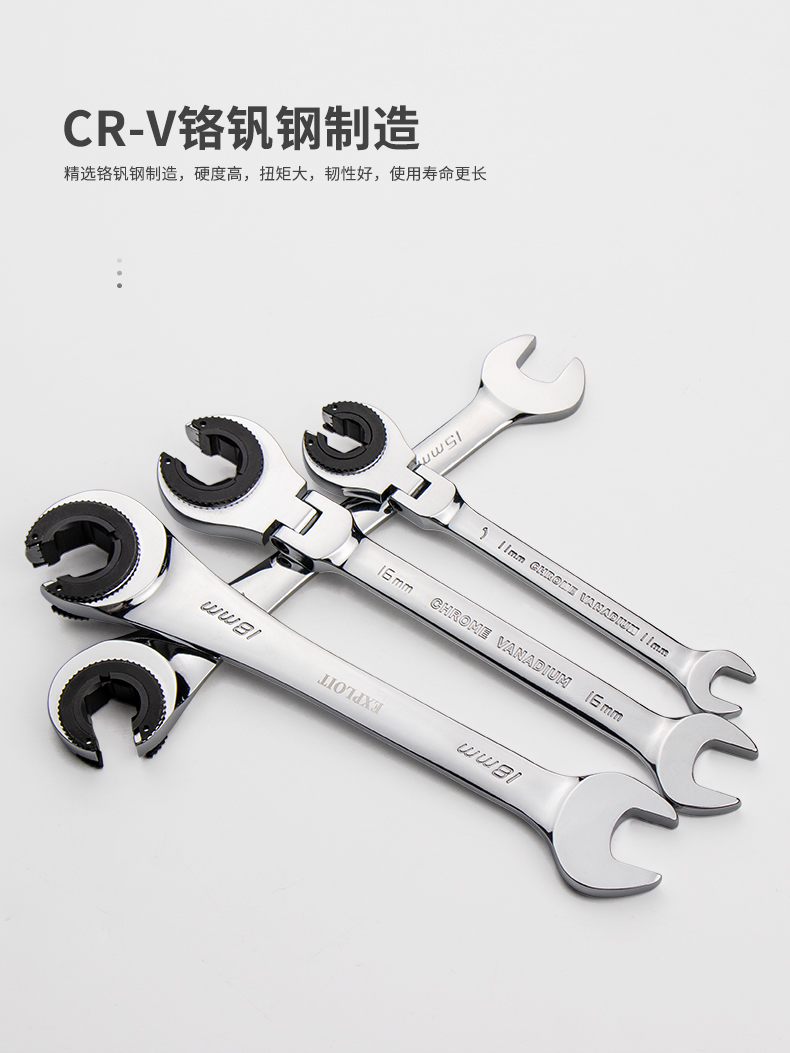 油管扳手棘轮叉口扳手刹车油管拆卸工具地暖开口扳手双头呆扳手