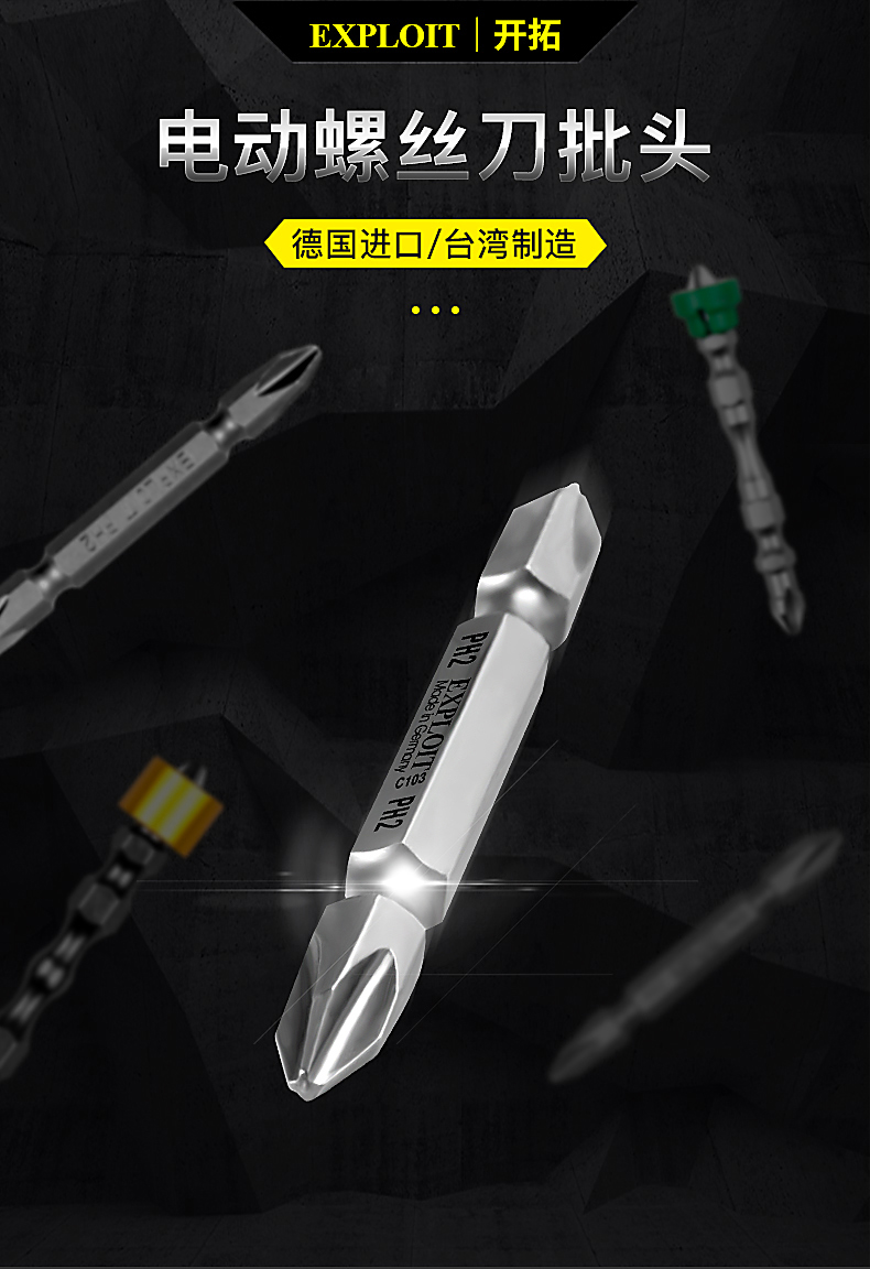 电动螺丝刀批头套装磁性十字一字内梅花六角加长德国进口短风披头