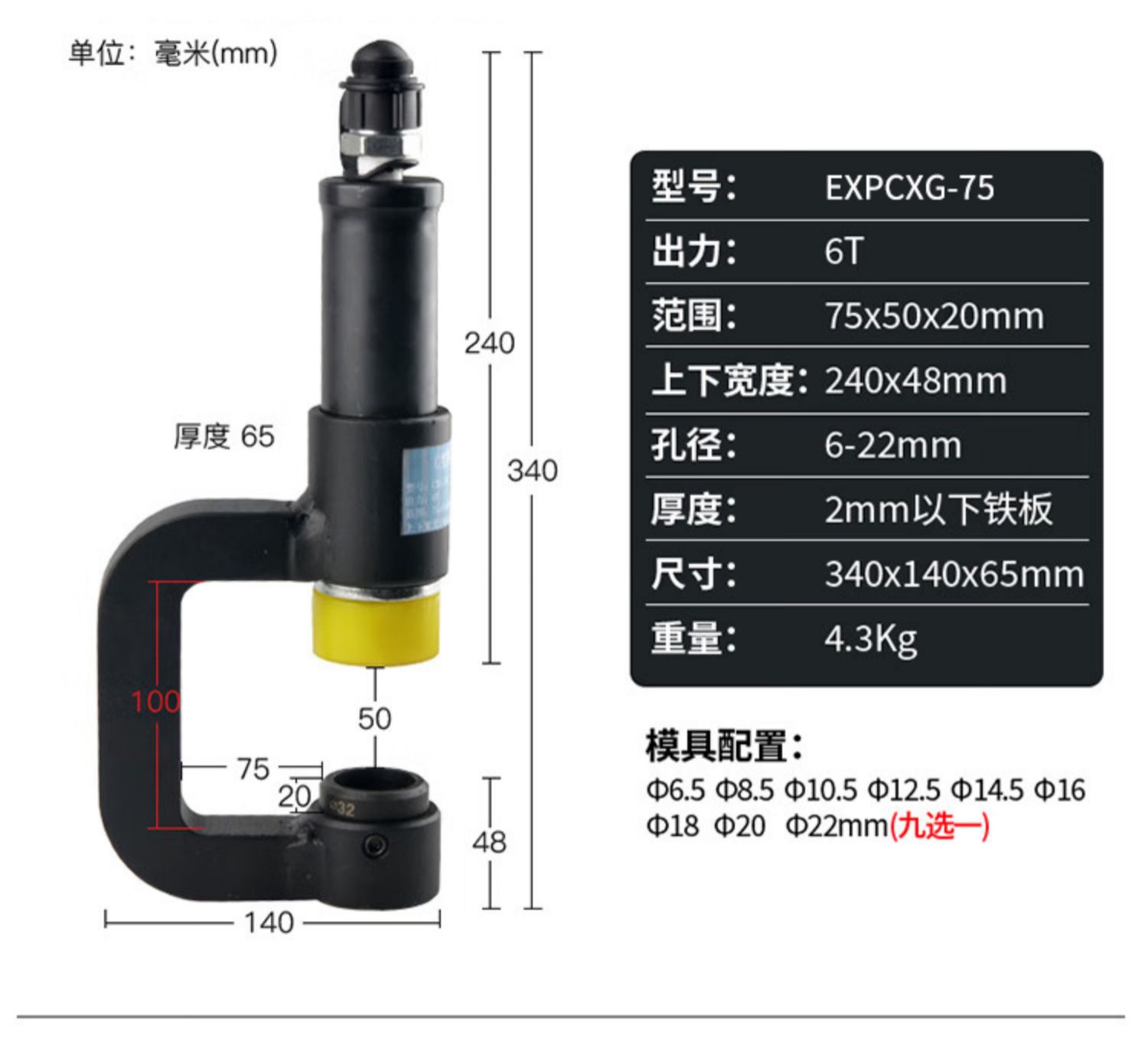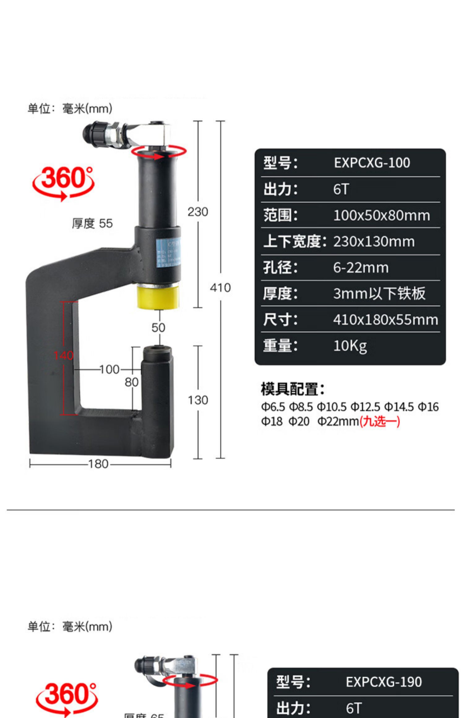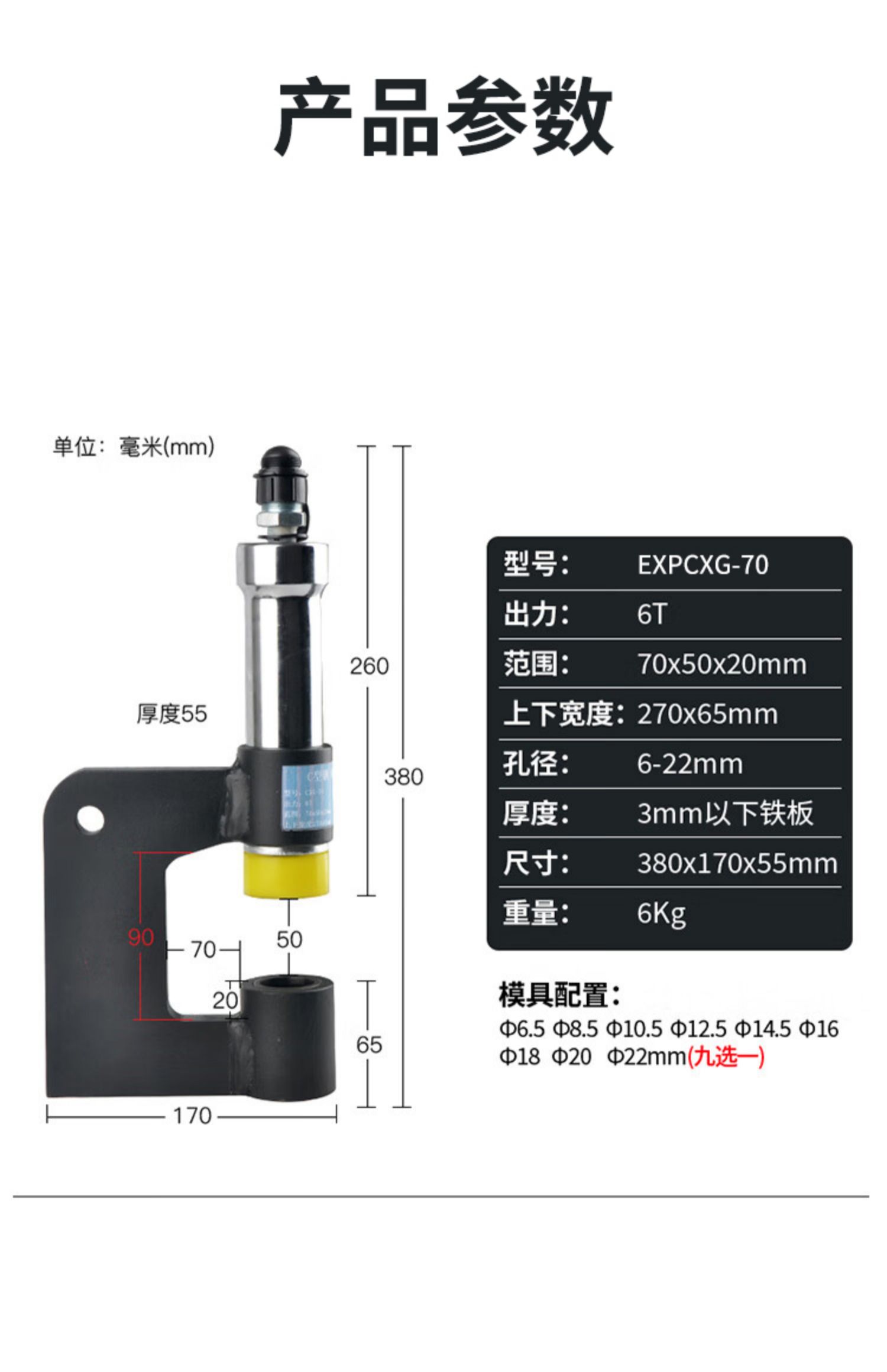 手动液压开孔器便携式桥架开孔神器分体式免打孔不锈钢桥架开孔机