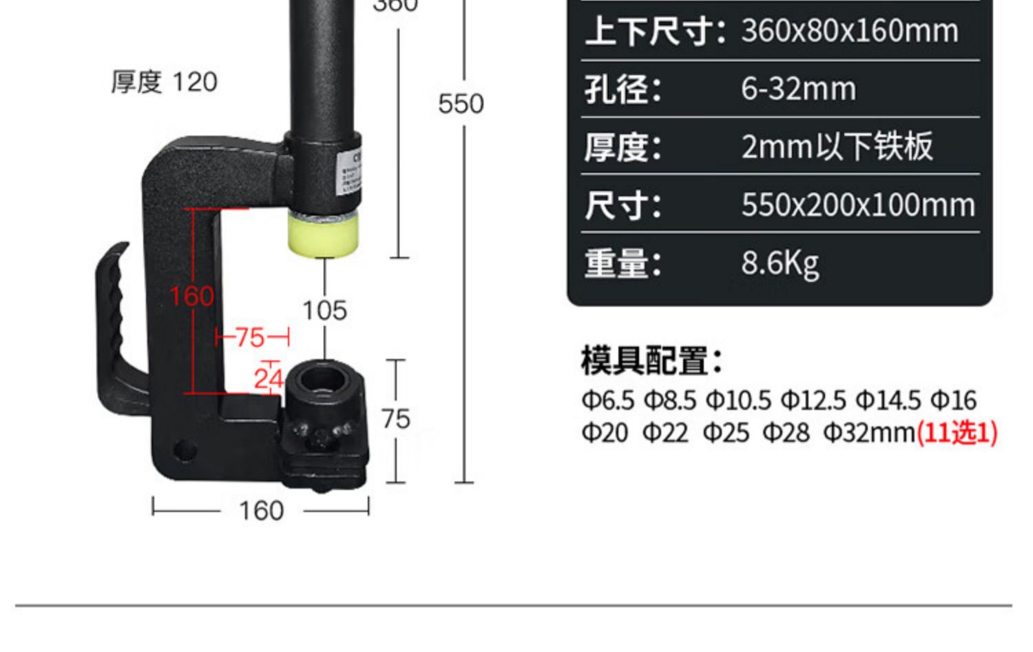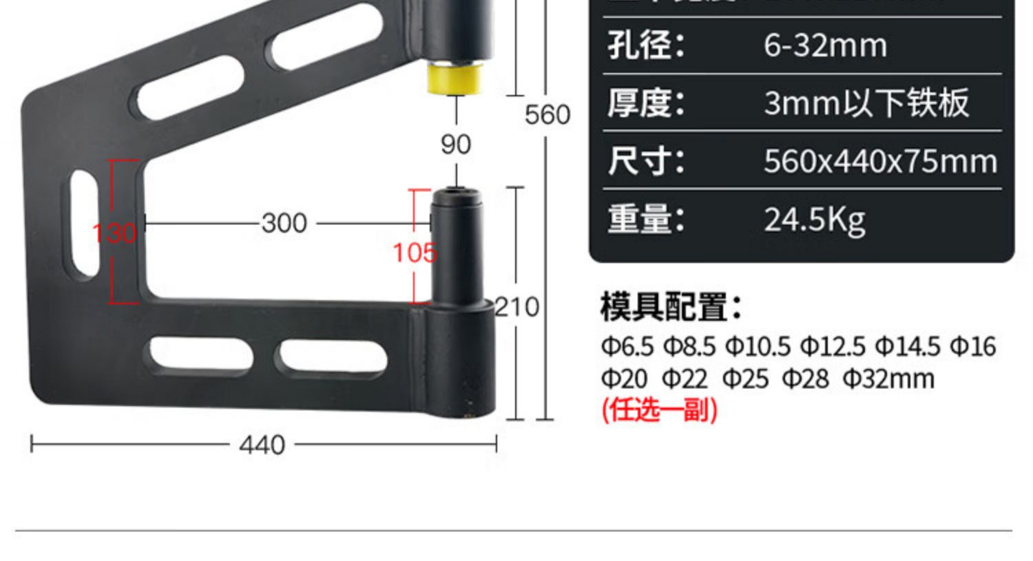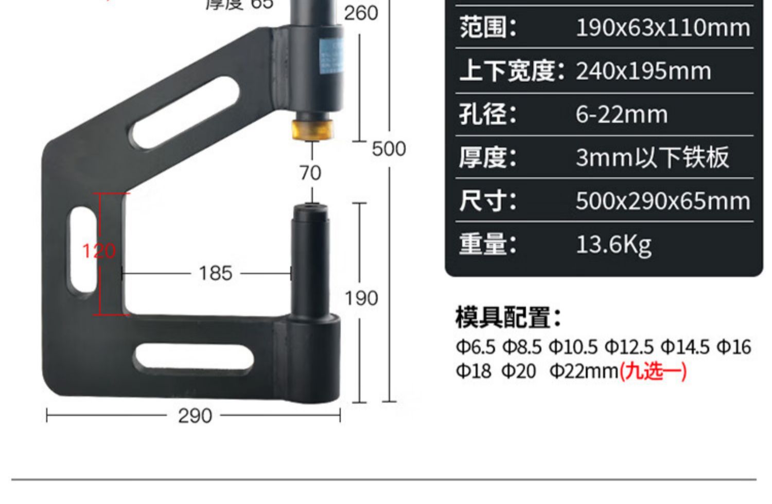 手动液压开孔器便携式桥架开孔神器分体式免打孔不锈钢桥架开孔机