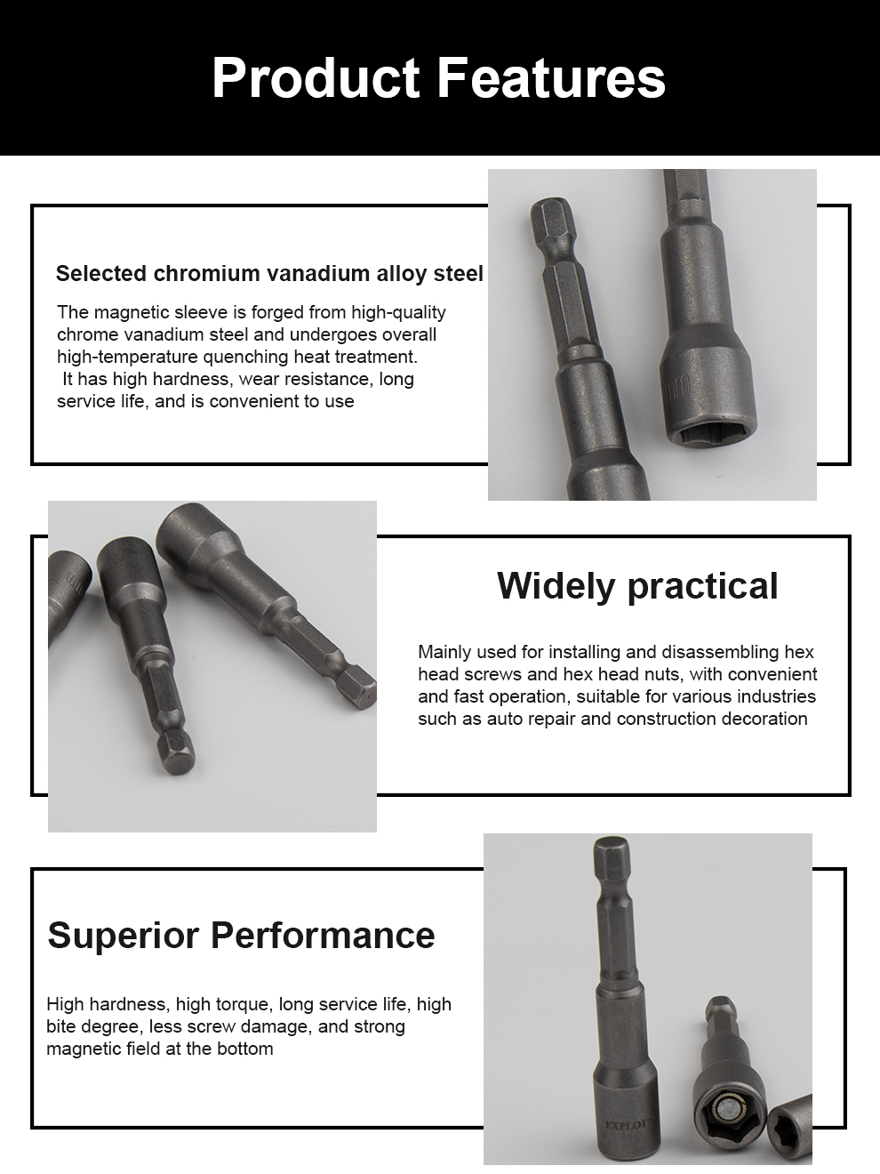 Socket screwdriver head hexagonal handle screwdriver head 8mm electric drill electric screwdriver he