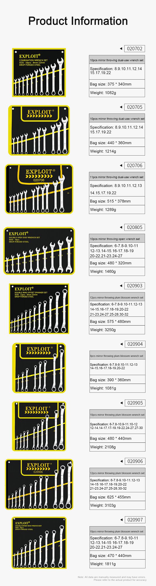 Development of Double Headed Plum Blossom Wrench Set, Extended High Strength Glasses Board, Complete