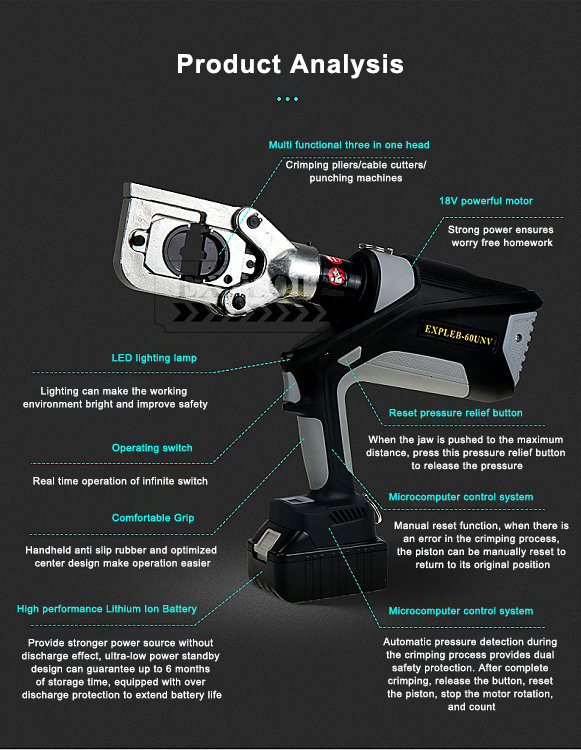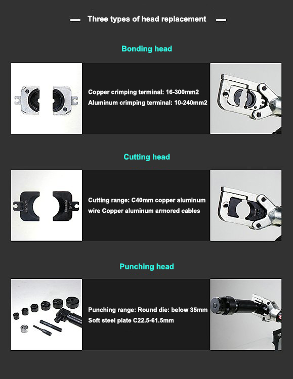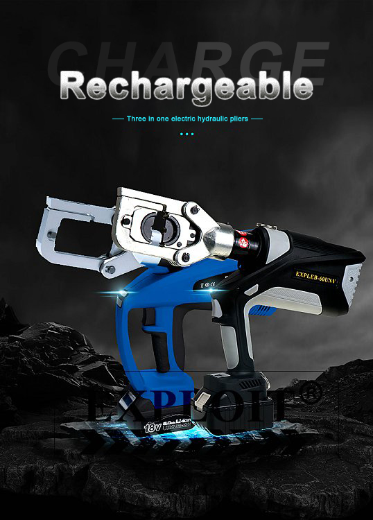 Three in one interchangeable head multifunctional rechargeable electric crimping pliers/cable cutter