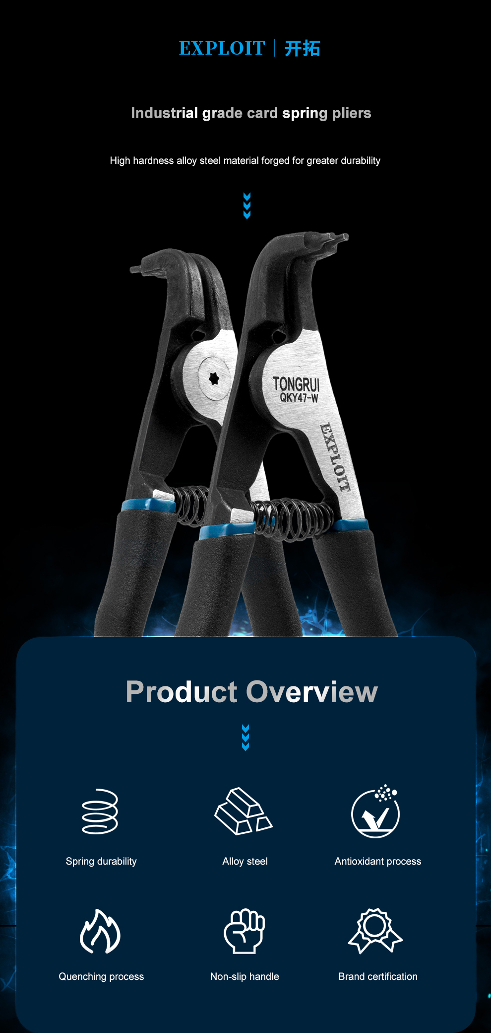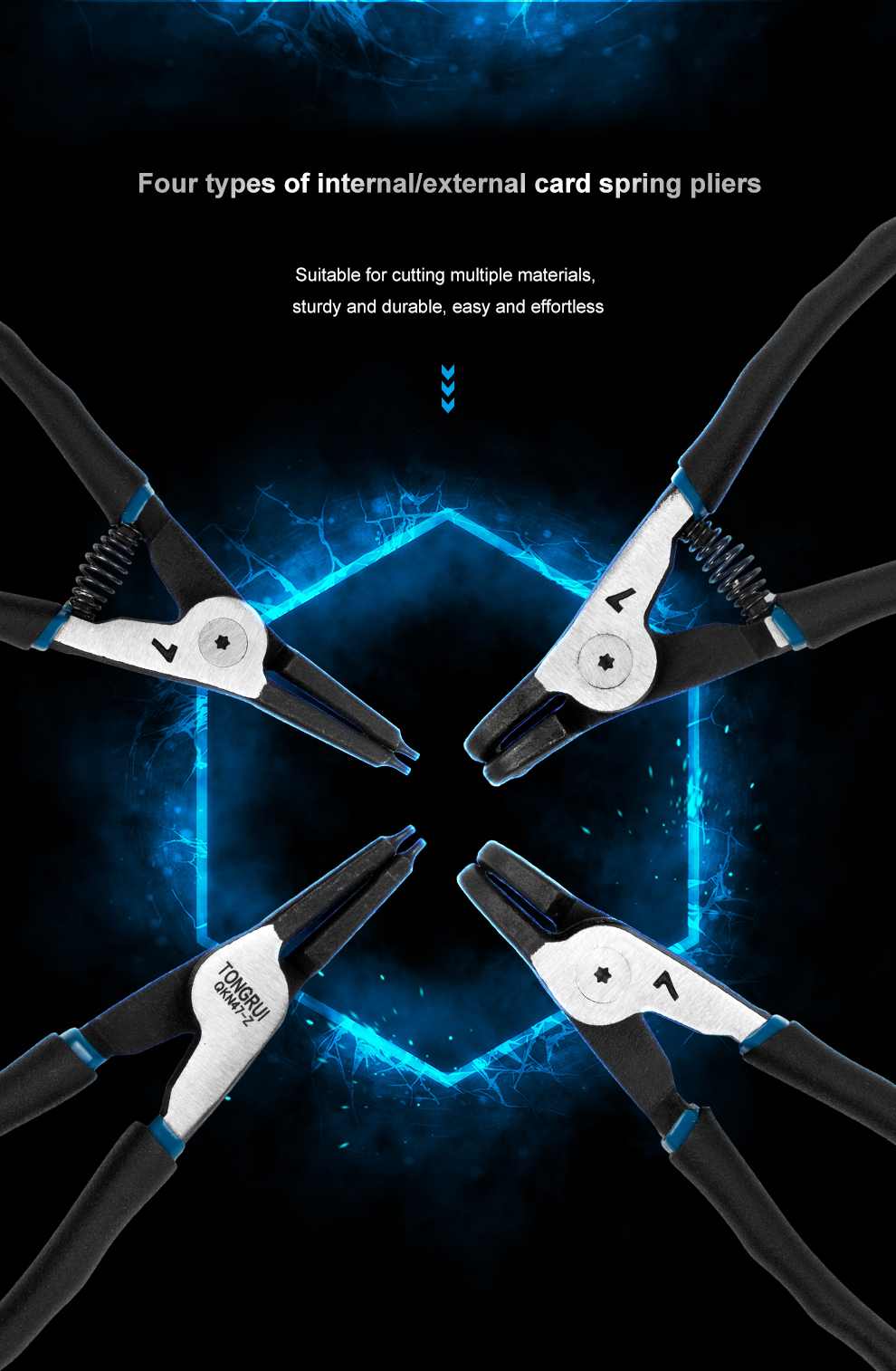 Industrial grade large card spring pliers, yellow card pliers, clamp ring springs, dual-use inner an