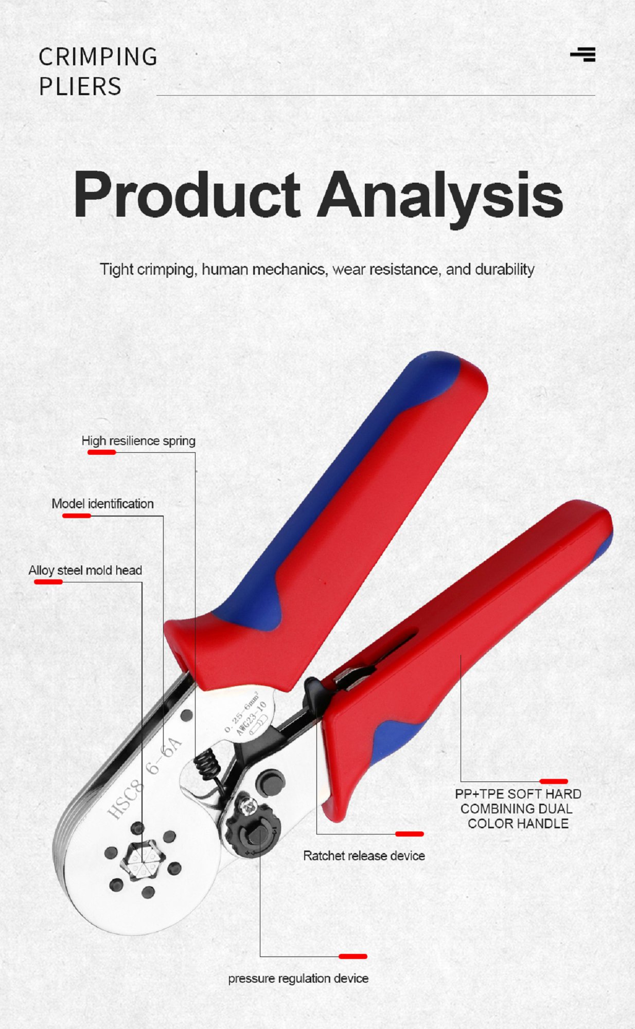 Pioneering the development of DuPont/needle/insulation/video terminal crimping pliers, wire crimping