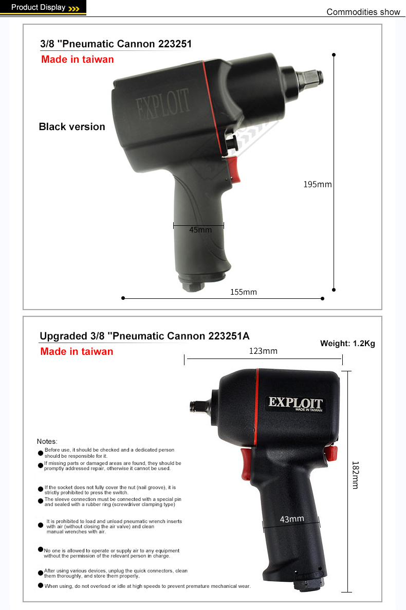 Develop 3/8 "Taiwan made pneumatic air guns, air drills, pneumatic wrenches, air guns, auto repair t