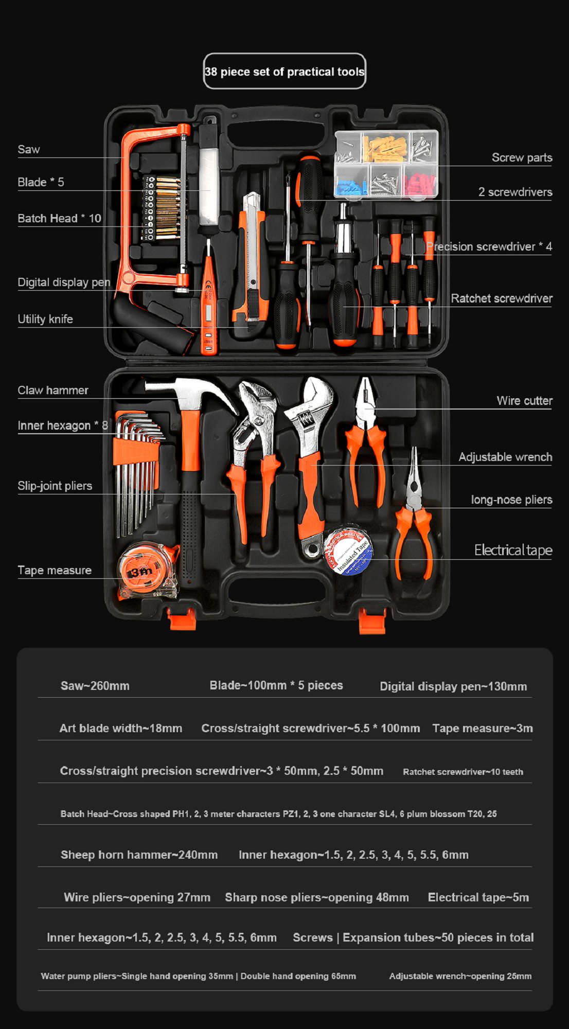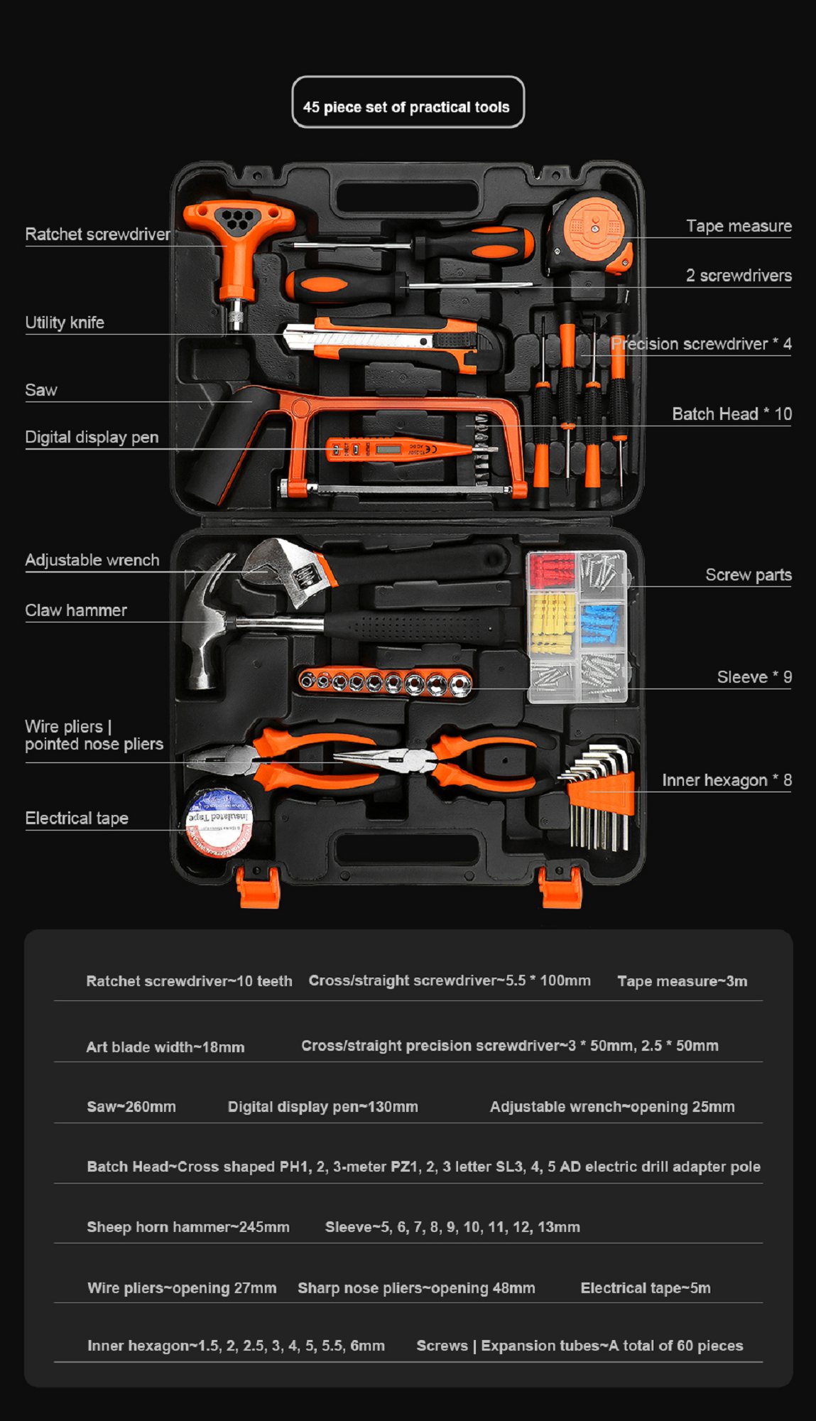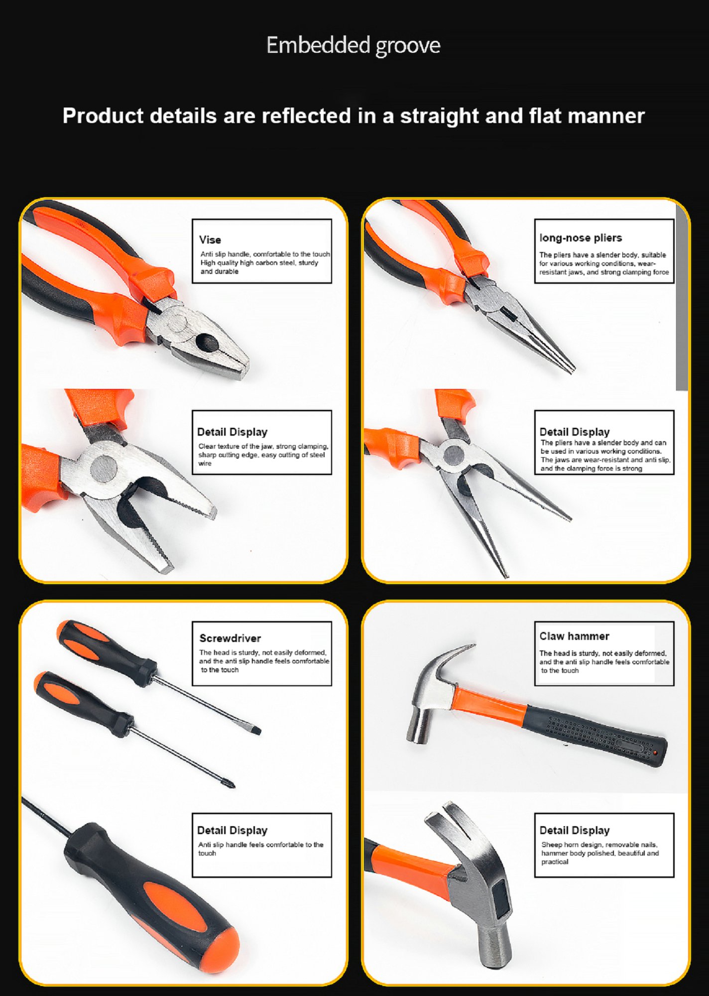 Home toolbox, home repair, tiger pliers, screwdriver, hammer repair, complete set of hardware combin