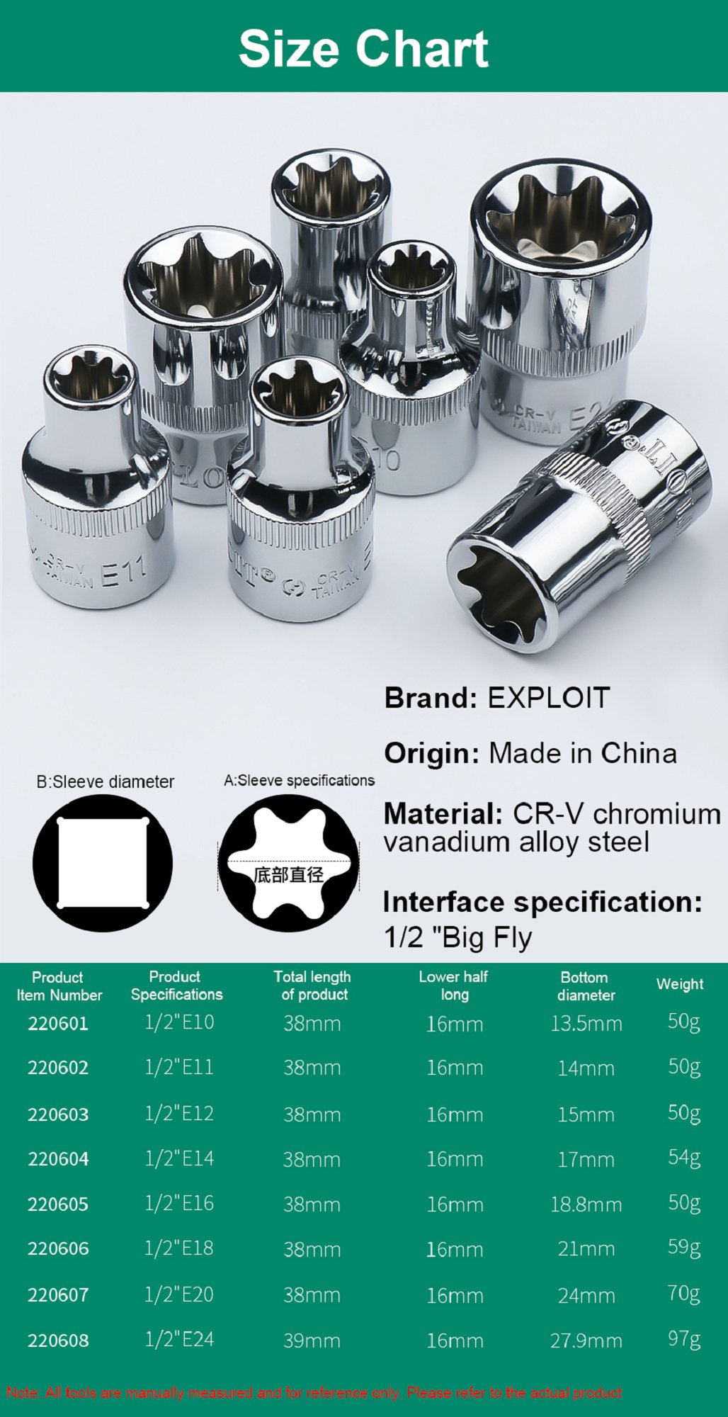 Develop 1/2 large flying e-type hexagonal socket head flower key plum blossom star type e12E10e14 he