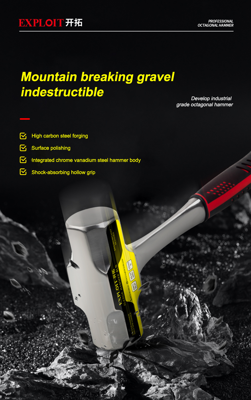 Hammer, octagonal hammer, hammer, construction site demolition, wall smashing artifact, solid integr