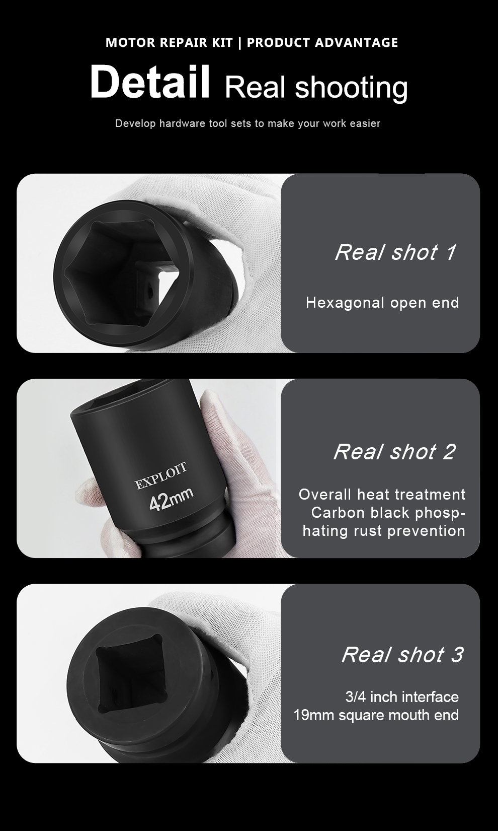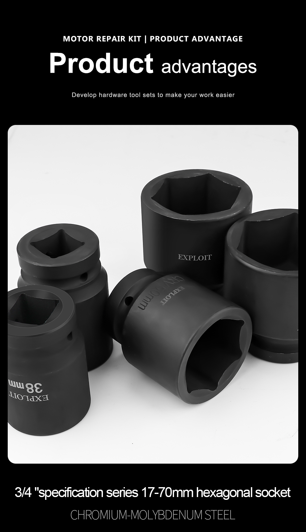 Develop 3/4 heavy-duty stroke cannon socket head thickened 17-70mm 36 pneumatic electric wrench spec