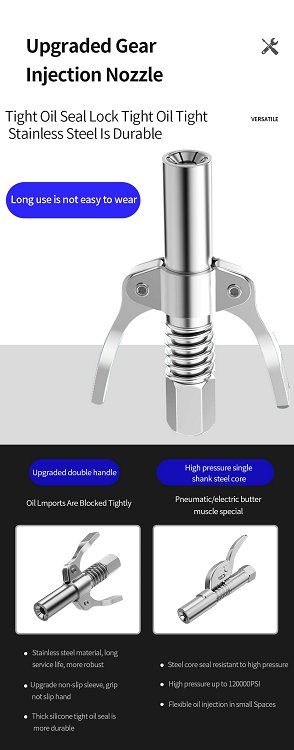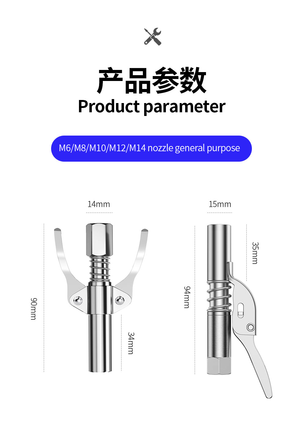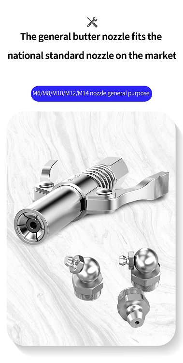 Developed grease gun nozzle lock clamp type high pressure self-locking flat head injection nozzle ma
