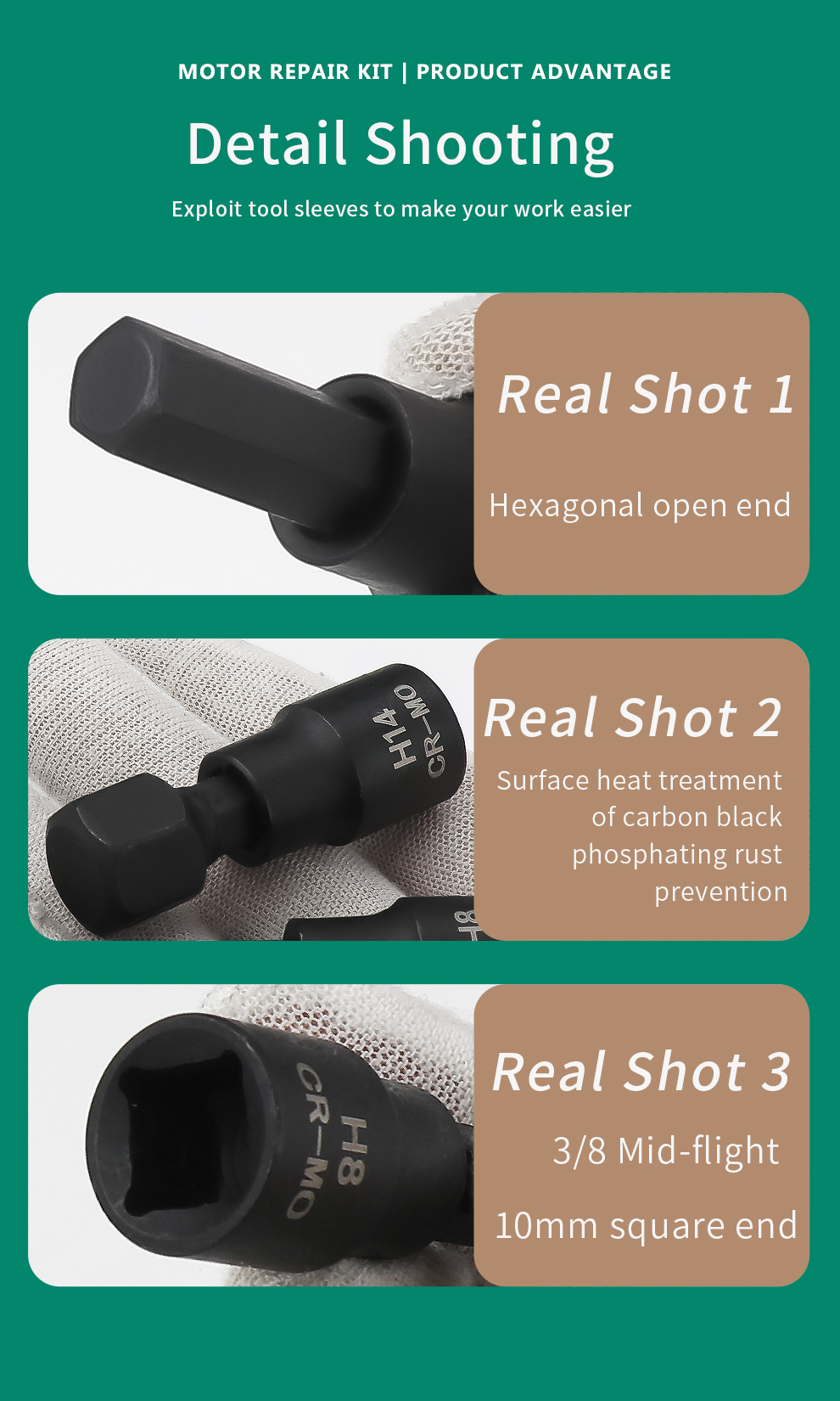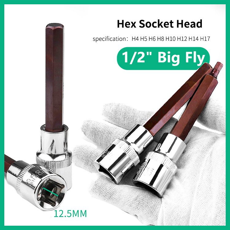 Develop hexagonal socket 1/2 large flying head lengthening six sets of spinner sleeve ratchet wrench