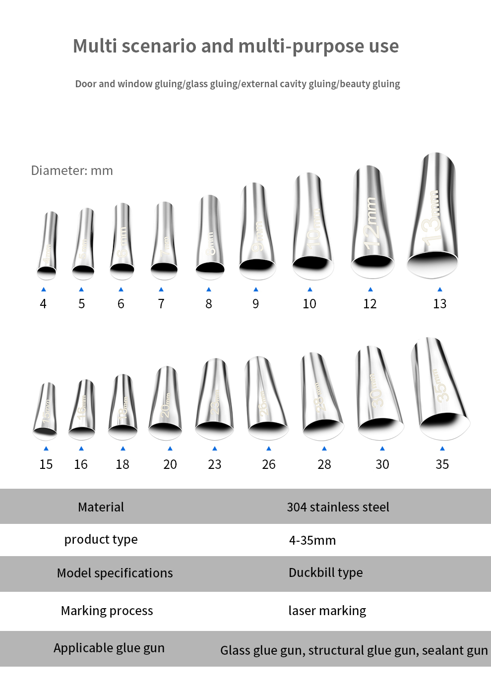 Stainless steel glue nozzle glue machine duck beak structure glue glass glue gun flat head nozzle fo