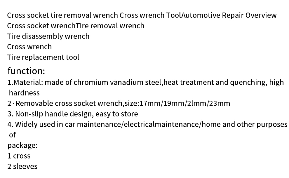 Car tire special wrench cross sleeve disassembling tire change tool set labor-saving cross spare tir