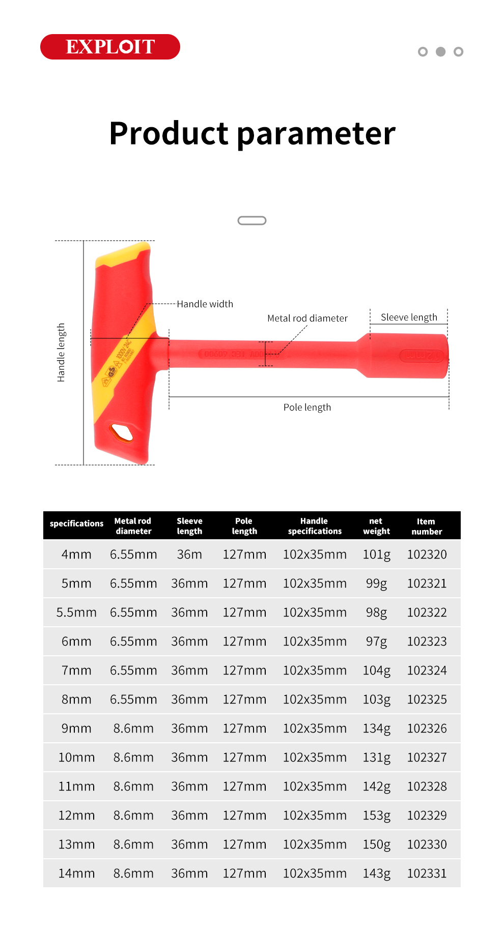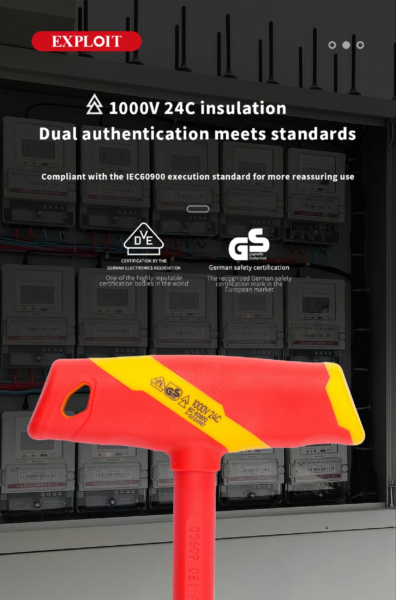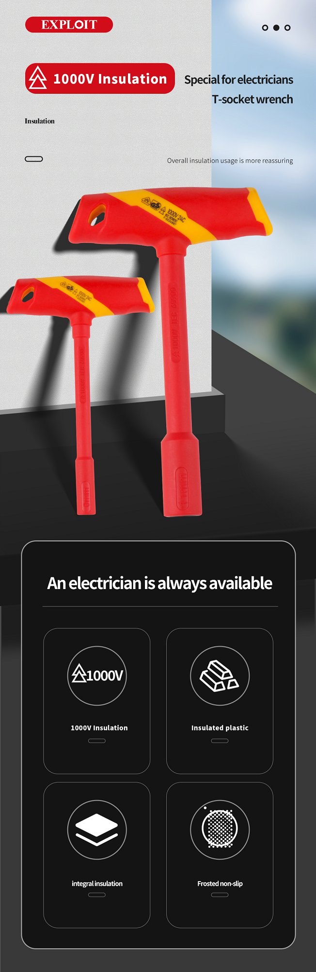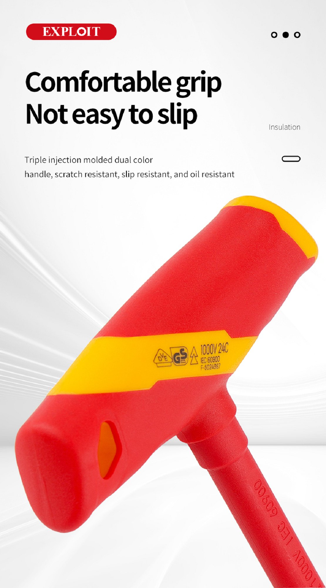 Kaituo Insulation T-type socket wrench, VDE certified 1000V high-voltage resistant maintenance tool,