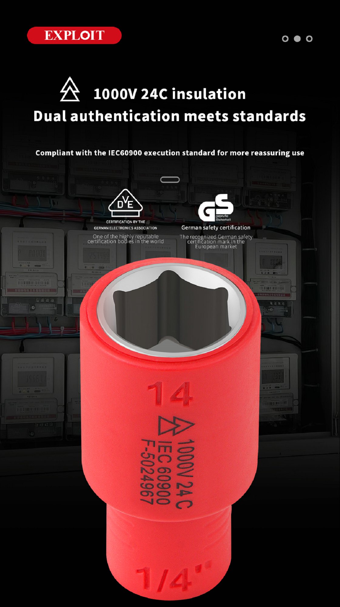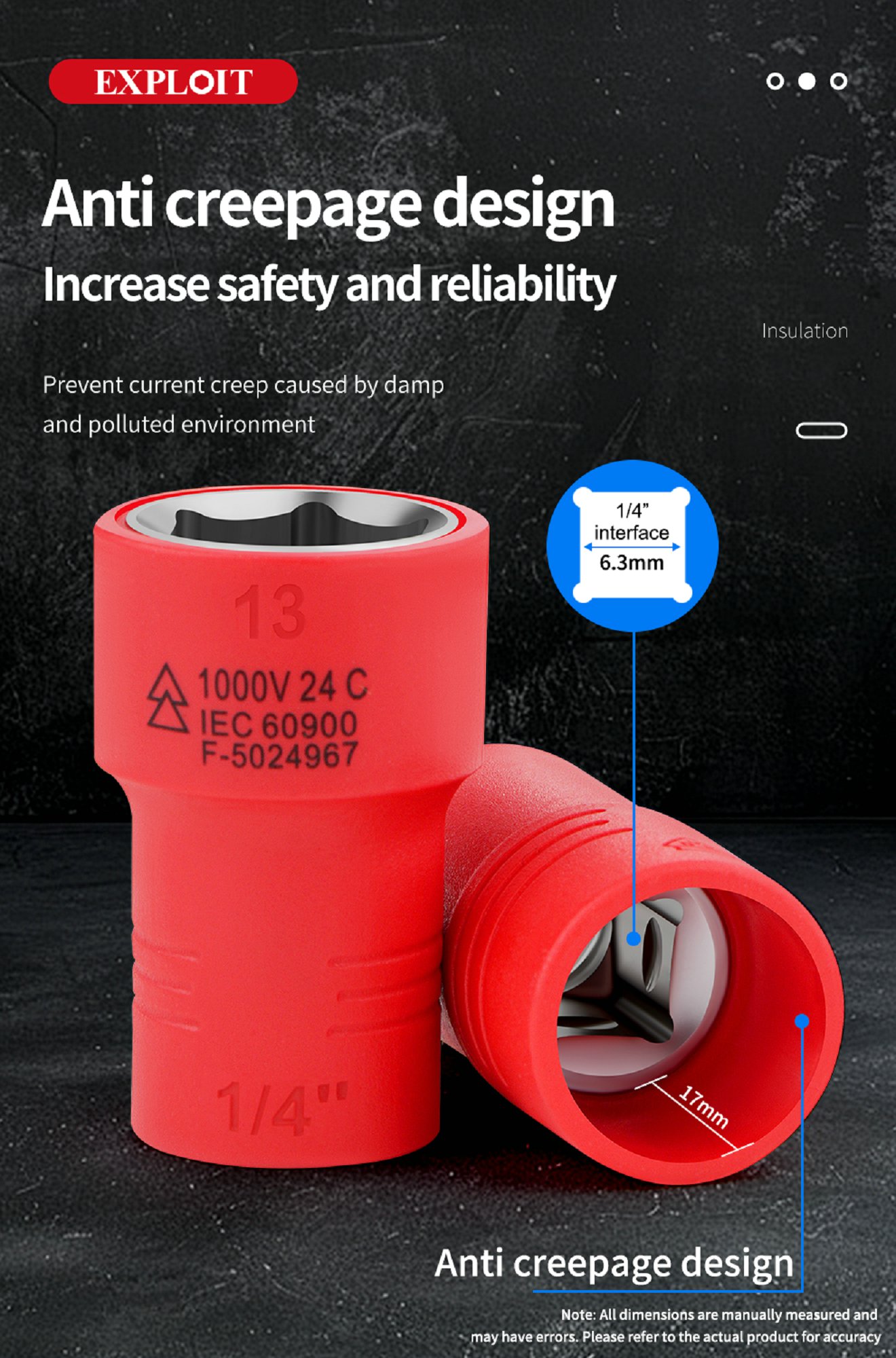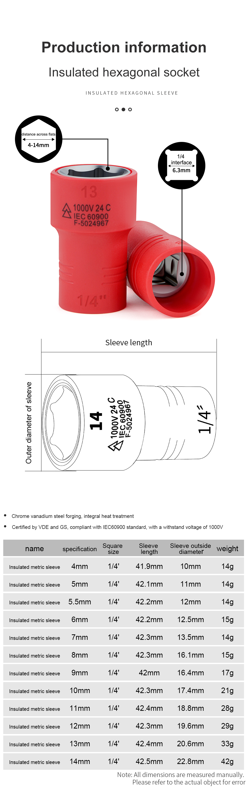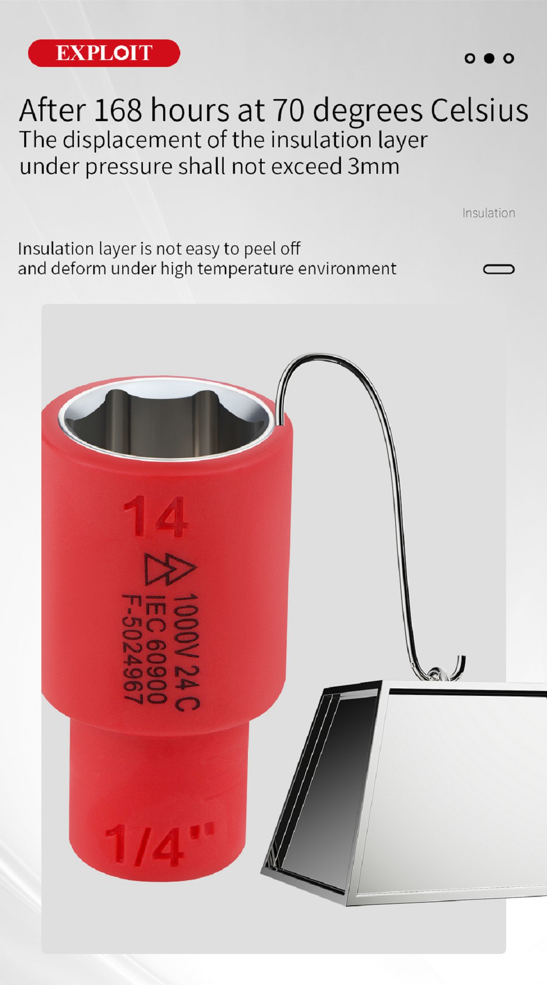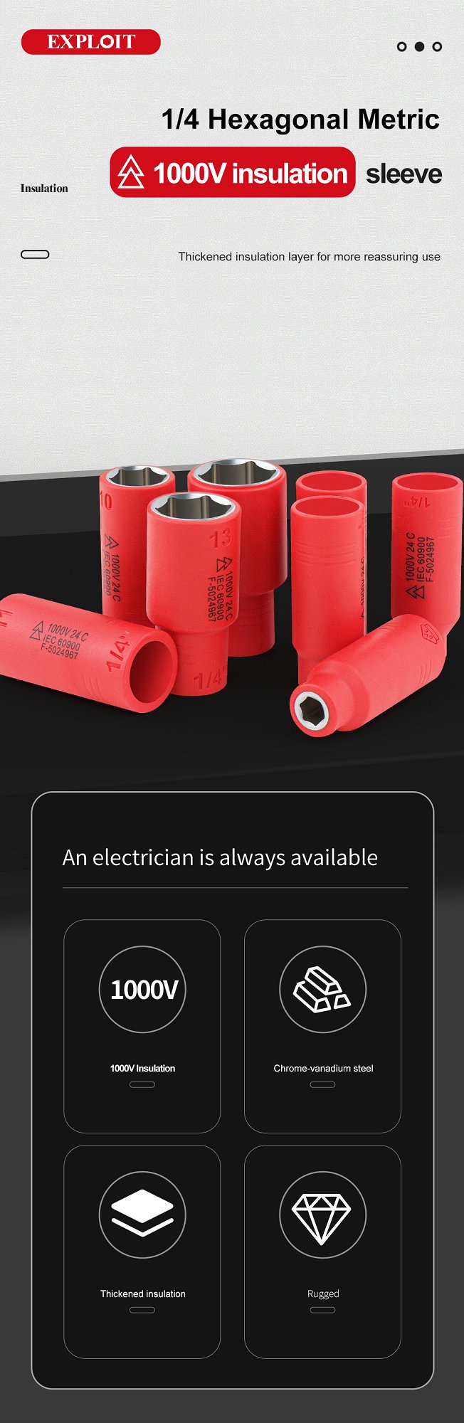Development of hexagonal wrench socket head with 1000V insulation and high voltage resistance, 1/4 w