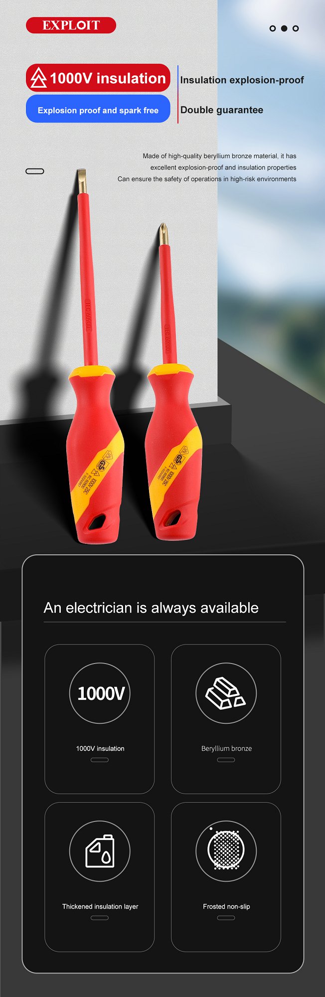 Development Cross shaped Insulated Explosion proof Screwdriver, Electrician's 1000V High Voltage Res