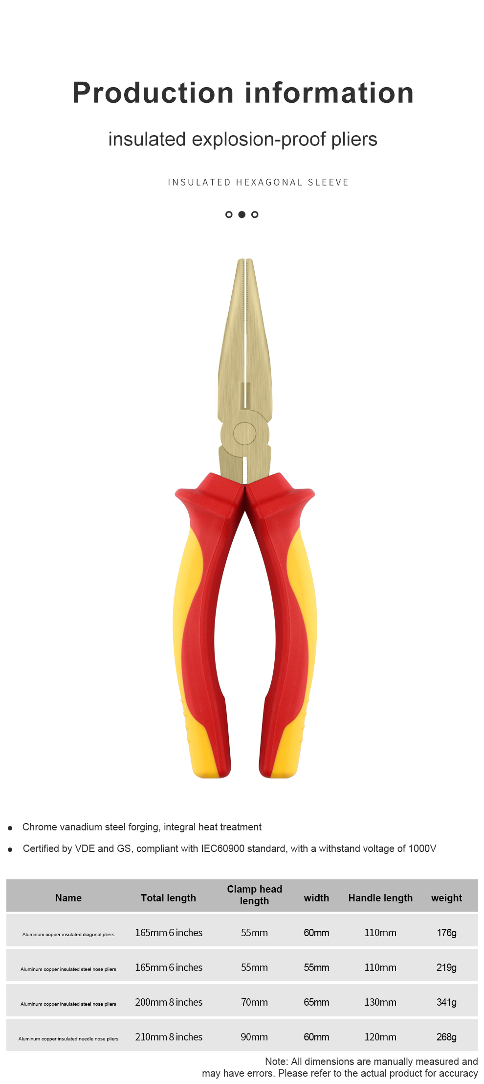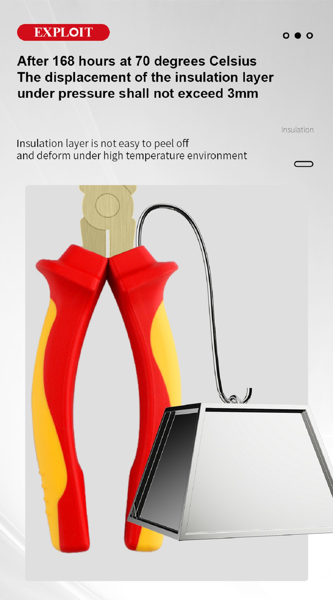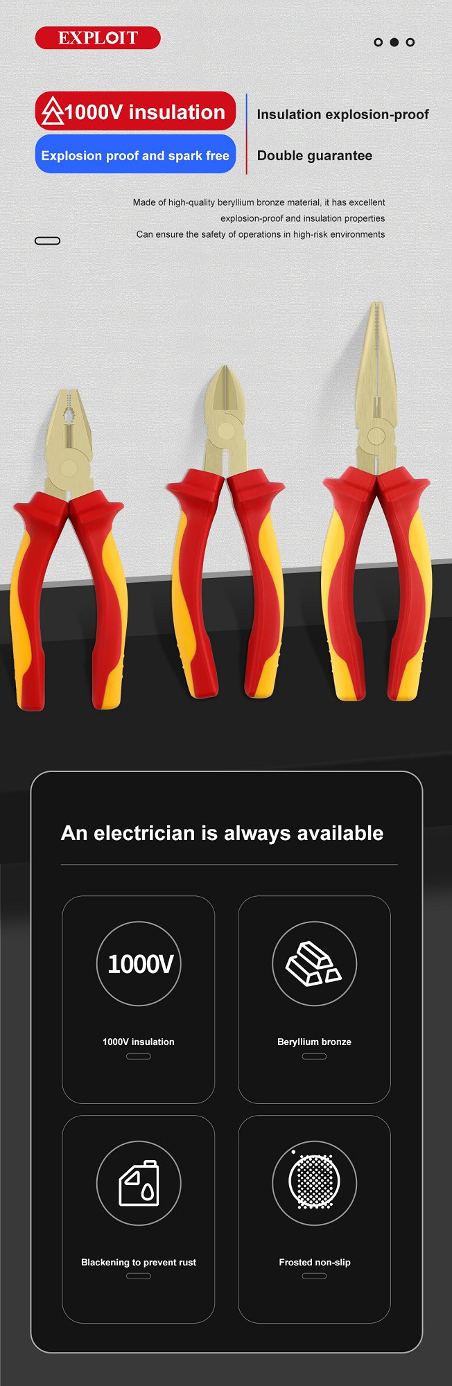 Develop industrial grade pliers with electrical insulation, 1000V high voltage resistance, explosion