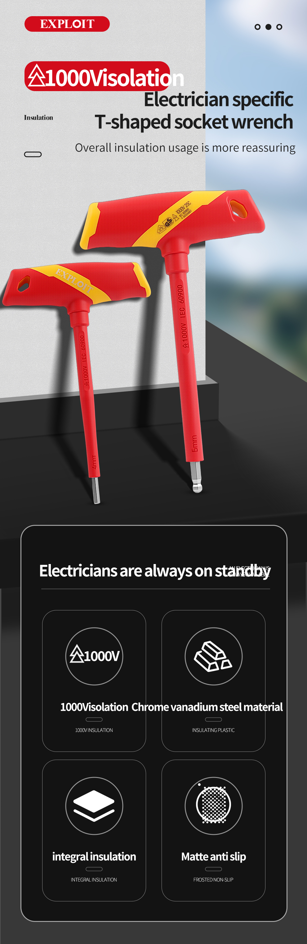 Develop insulation T-shaped hex wrench 1000V high voltage resistant VDE certified high hardness allo
