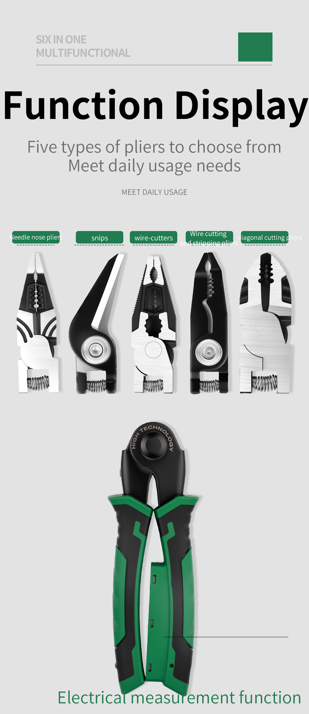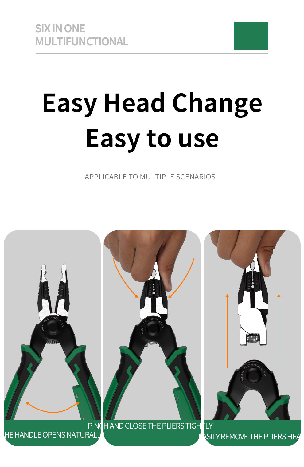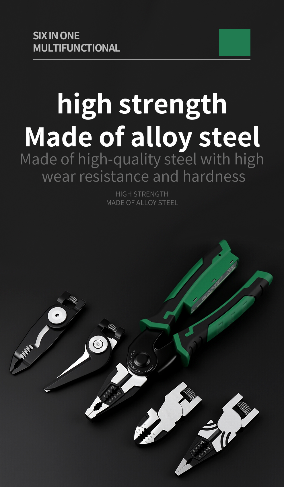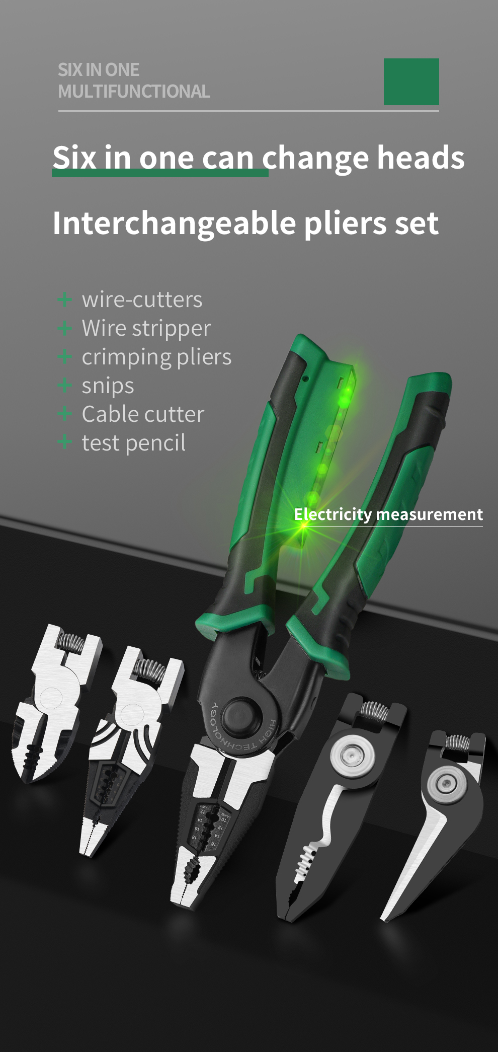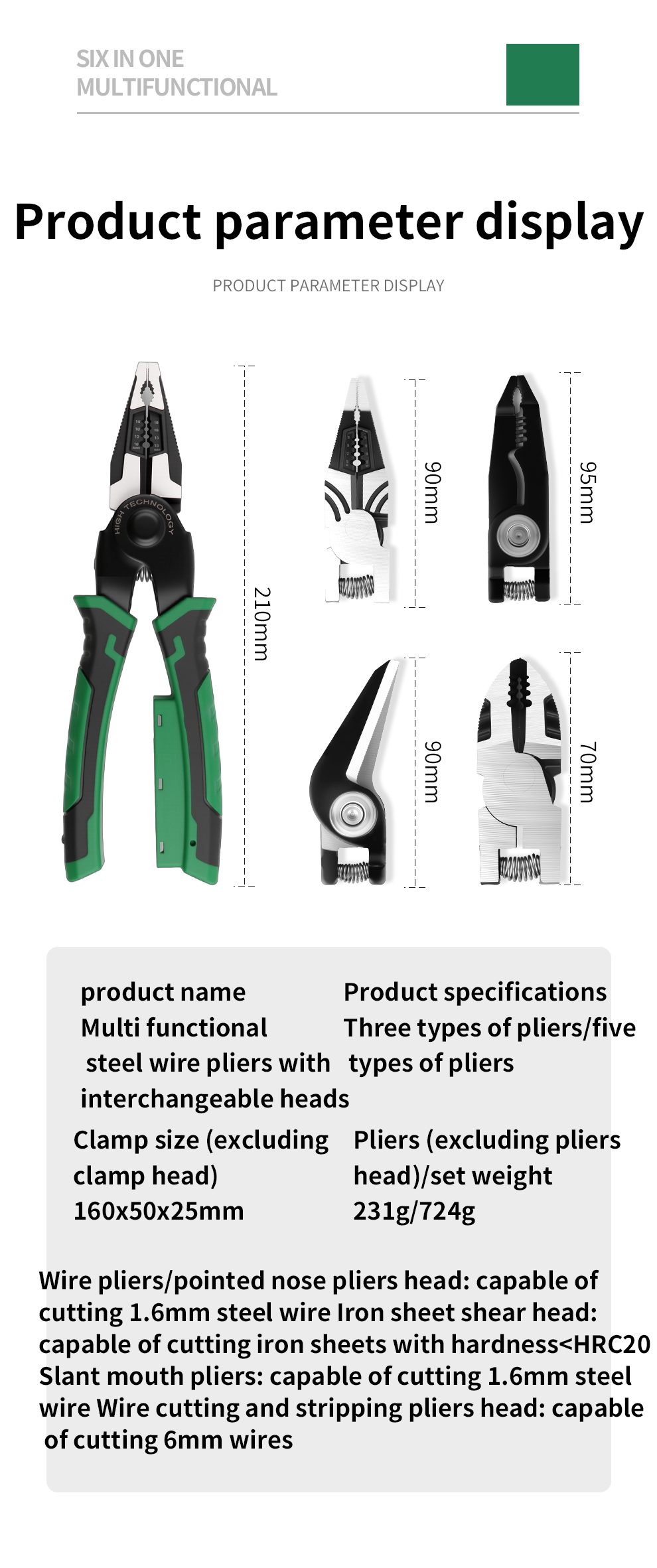 Developing interchangeable pliers with six functions and high hardness, specialized for electrical u