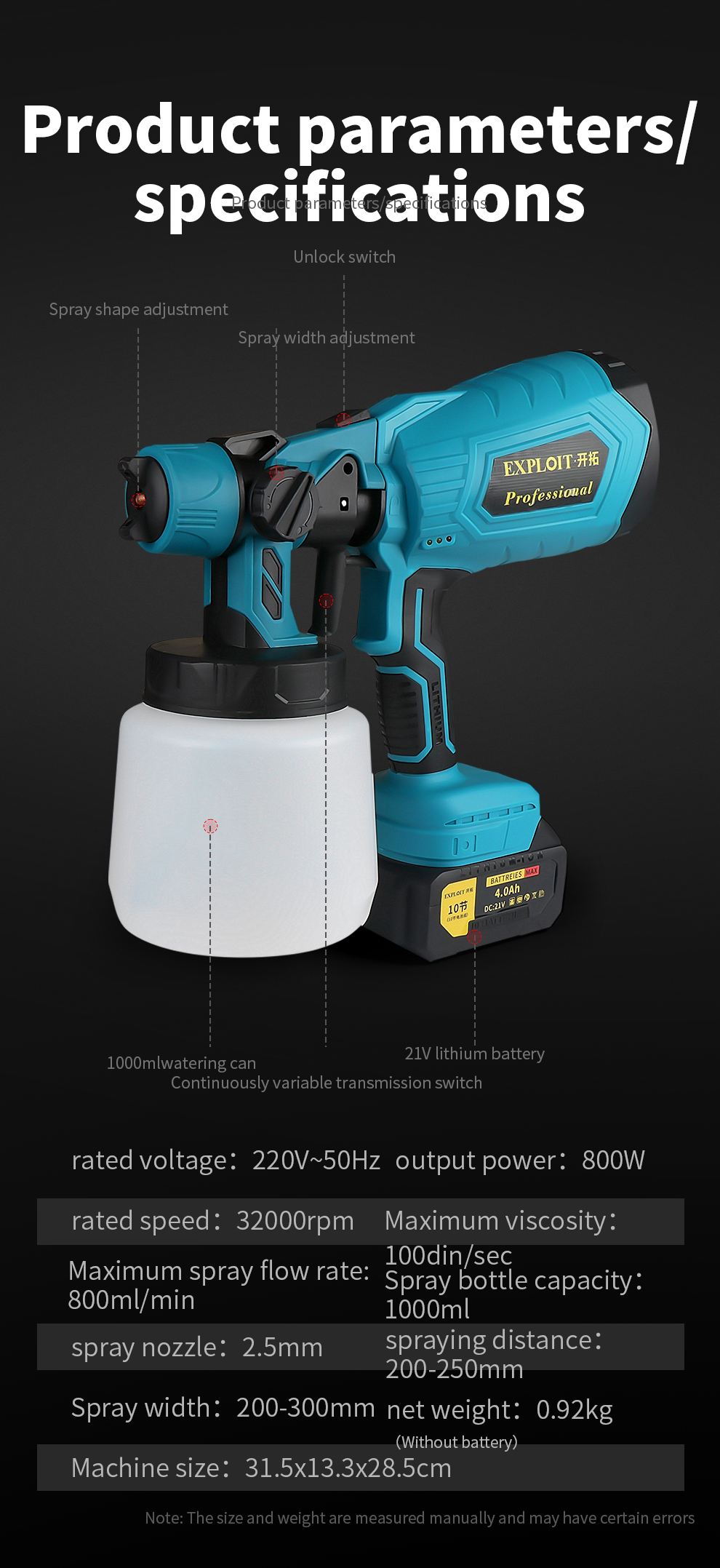 High power electric spray paint gun, latex paint spray gun, paint spraying integrated machine, lithi