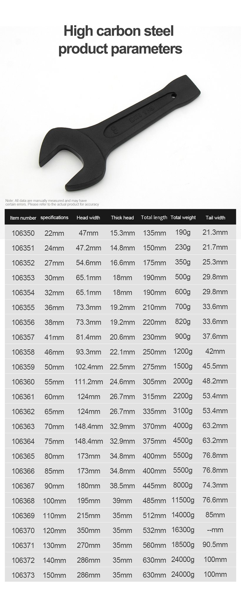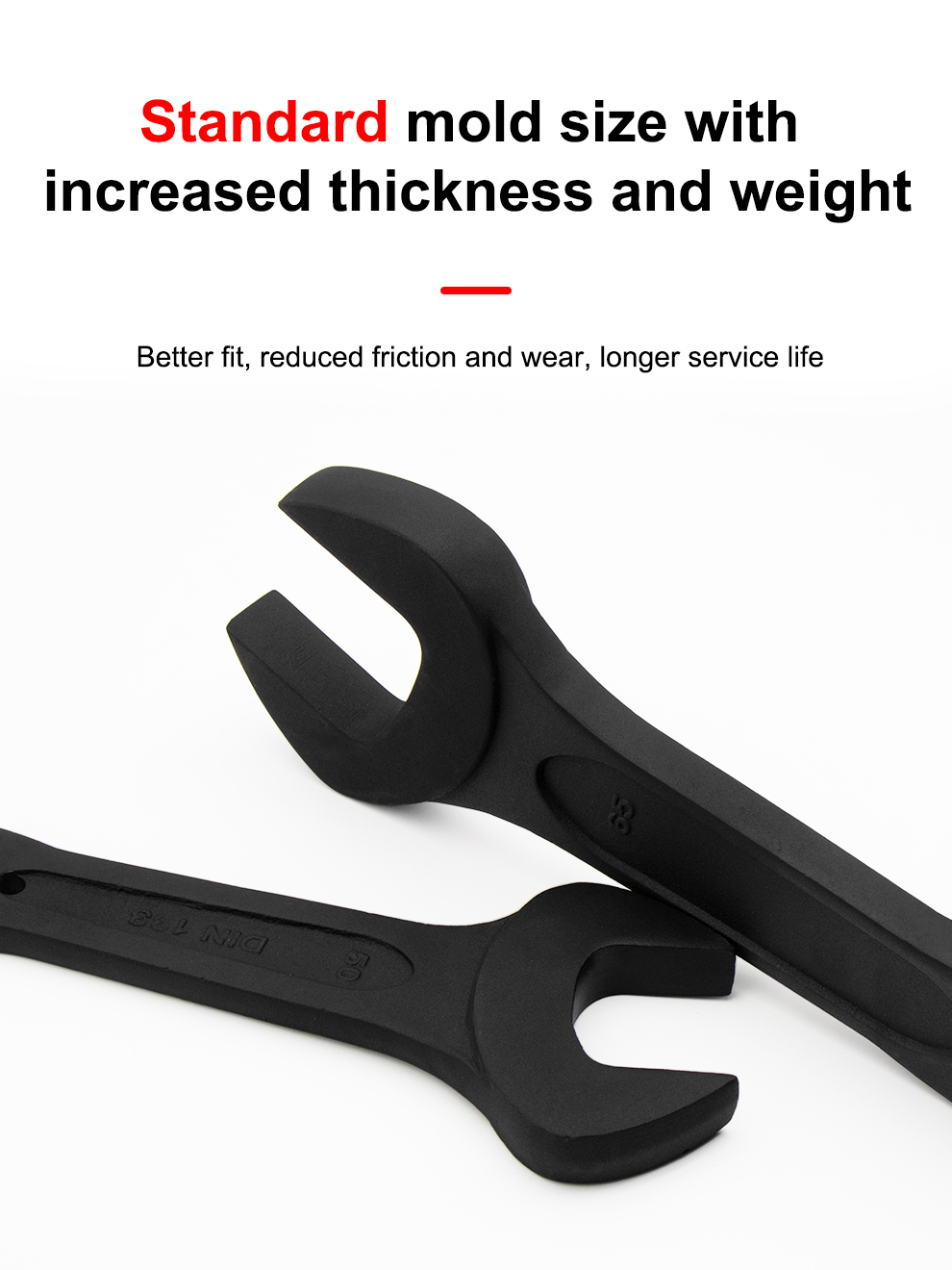 Develop heavy-duty single head open-end wrench with 36mm thick carbon steel and straight handle for