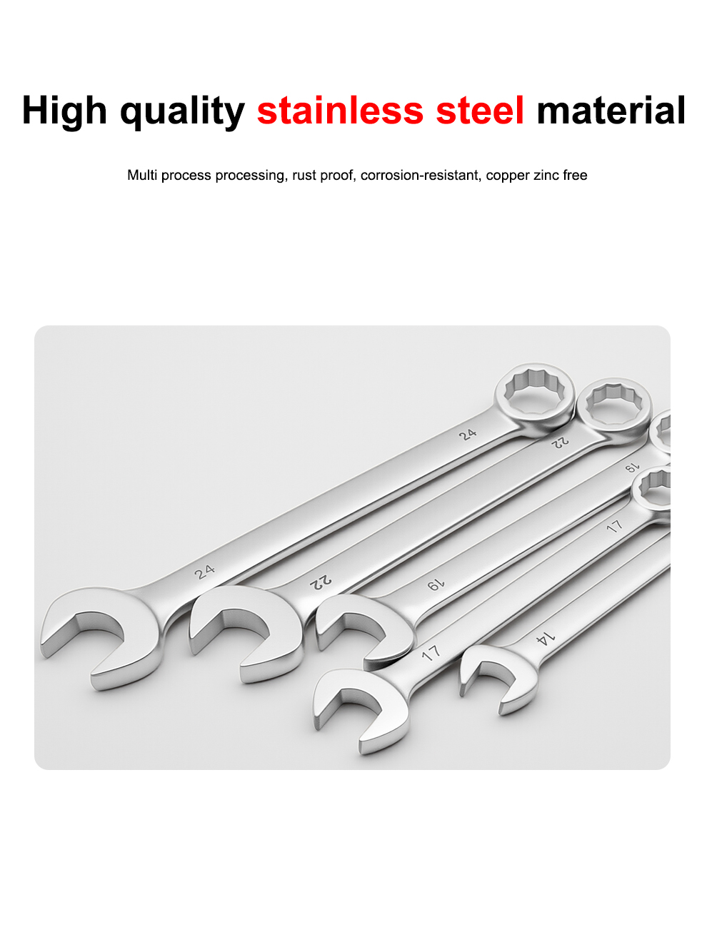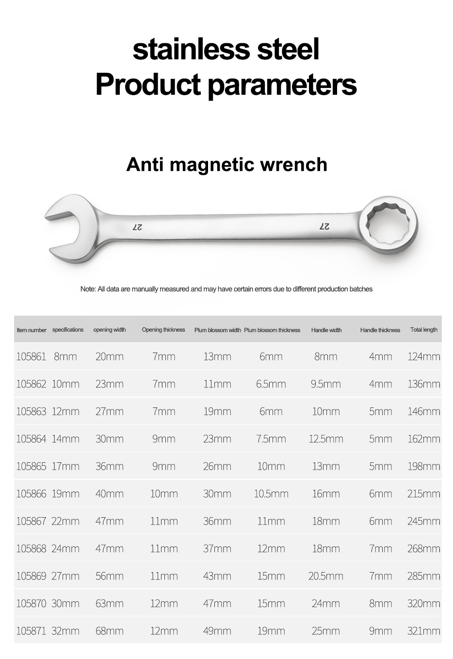 Develop anti magnetic 304 stainless steel double headed dual-purpose wrench 8-32mm corrosion-resista